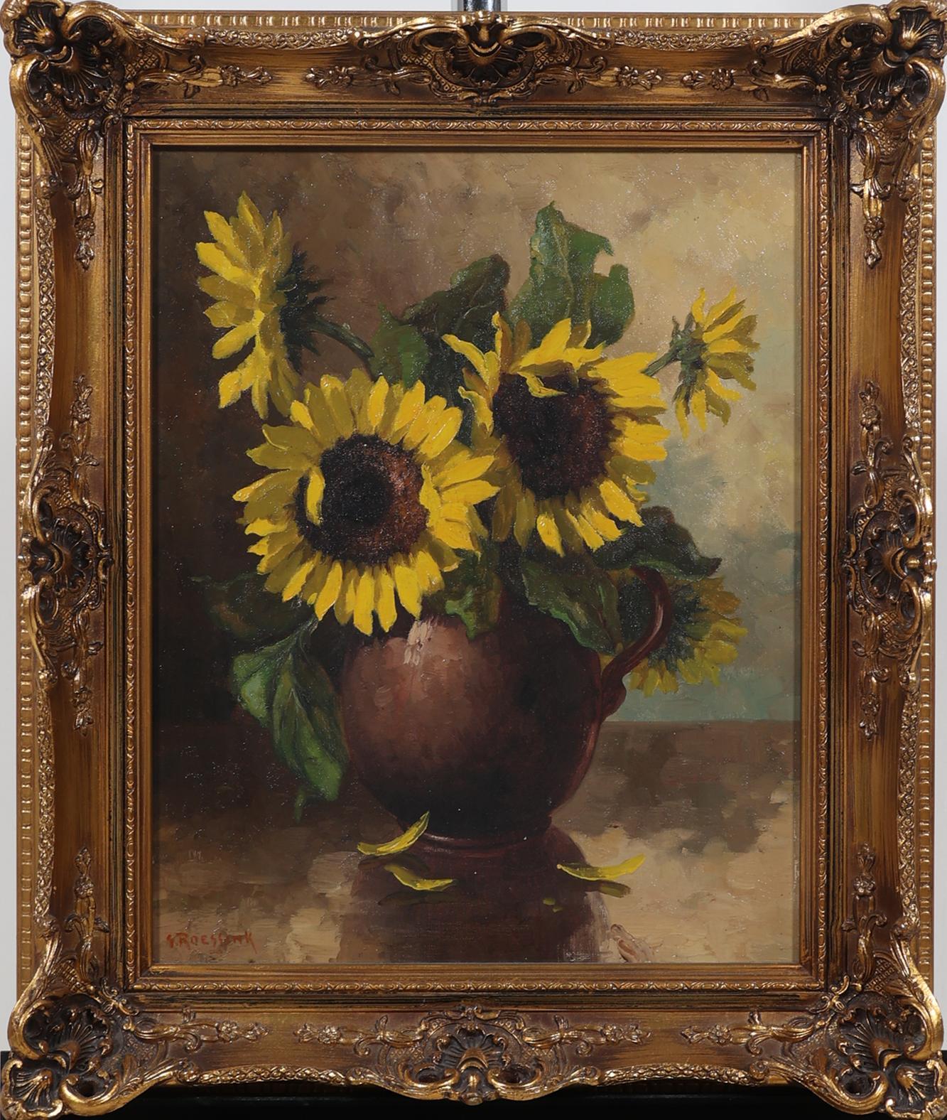 Roessink, Zonnebloemen, olieverf op doek, 50 x 39 cm.