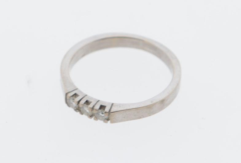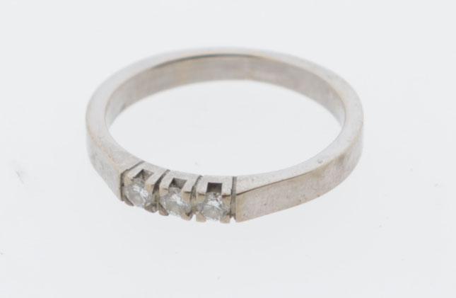 14 Kt. gouden damesring met briljant, diam.17 mm., 3,2 gram