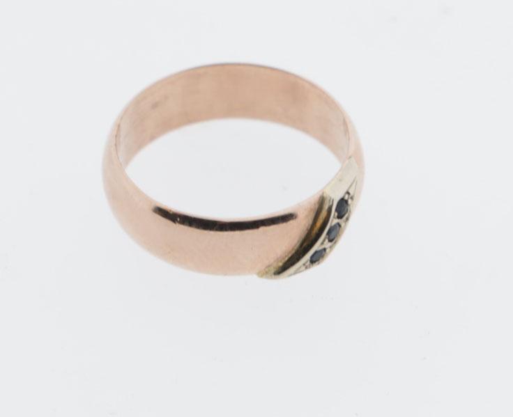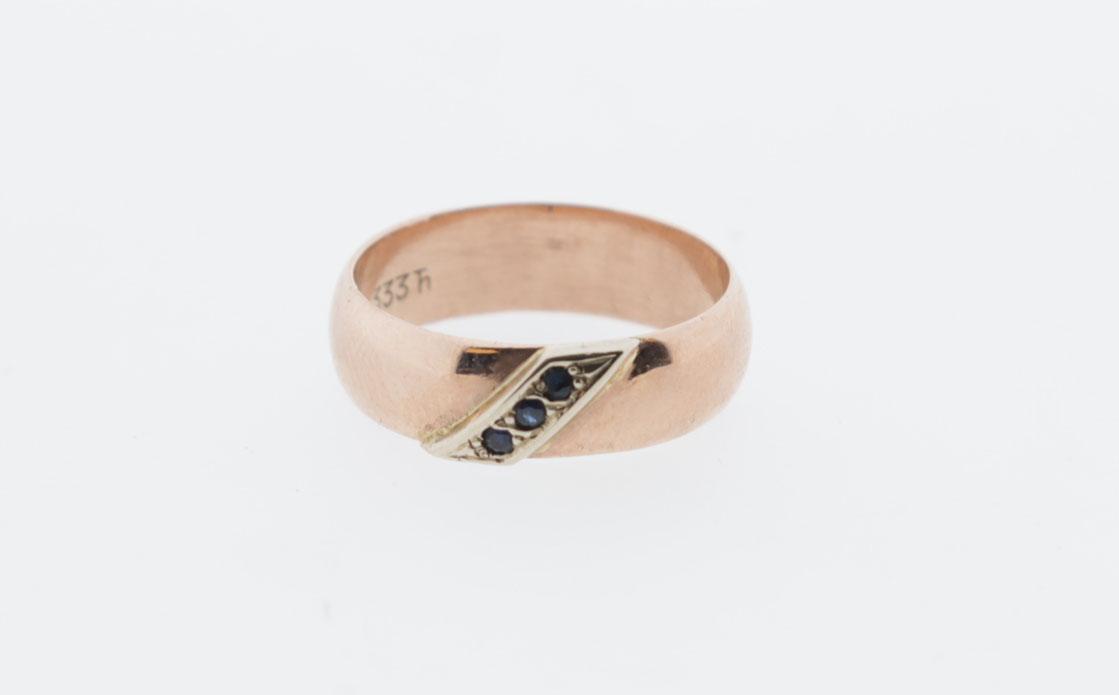 Gouden ring bezet met 3 saffieren, 17 mm., 3.8 gram