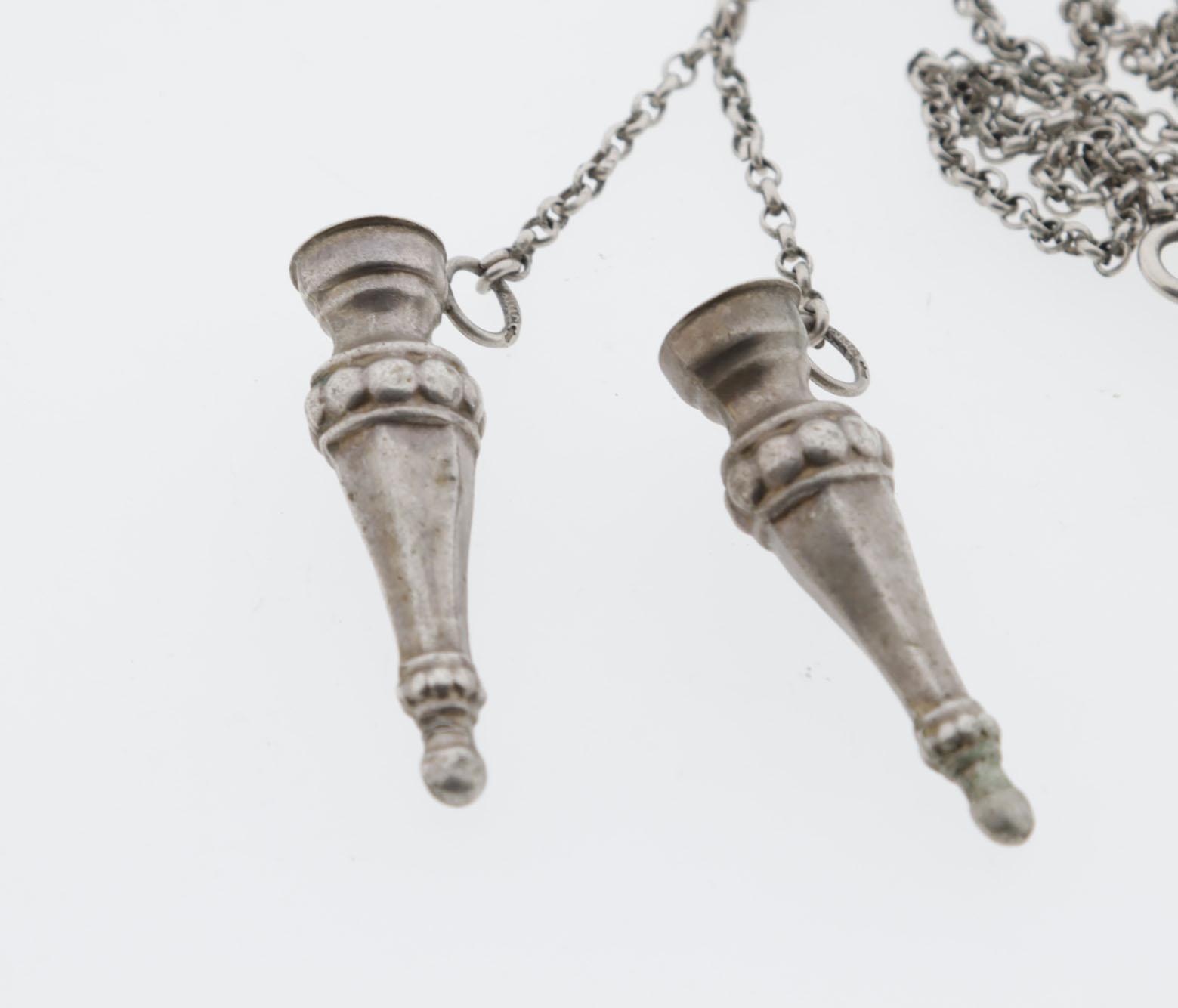 2 Zilveren breinaaldhouders aan lang zilveren jasseron collier