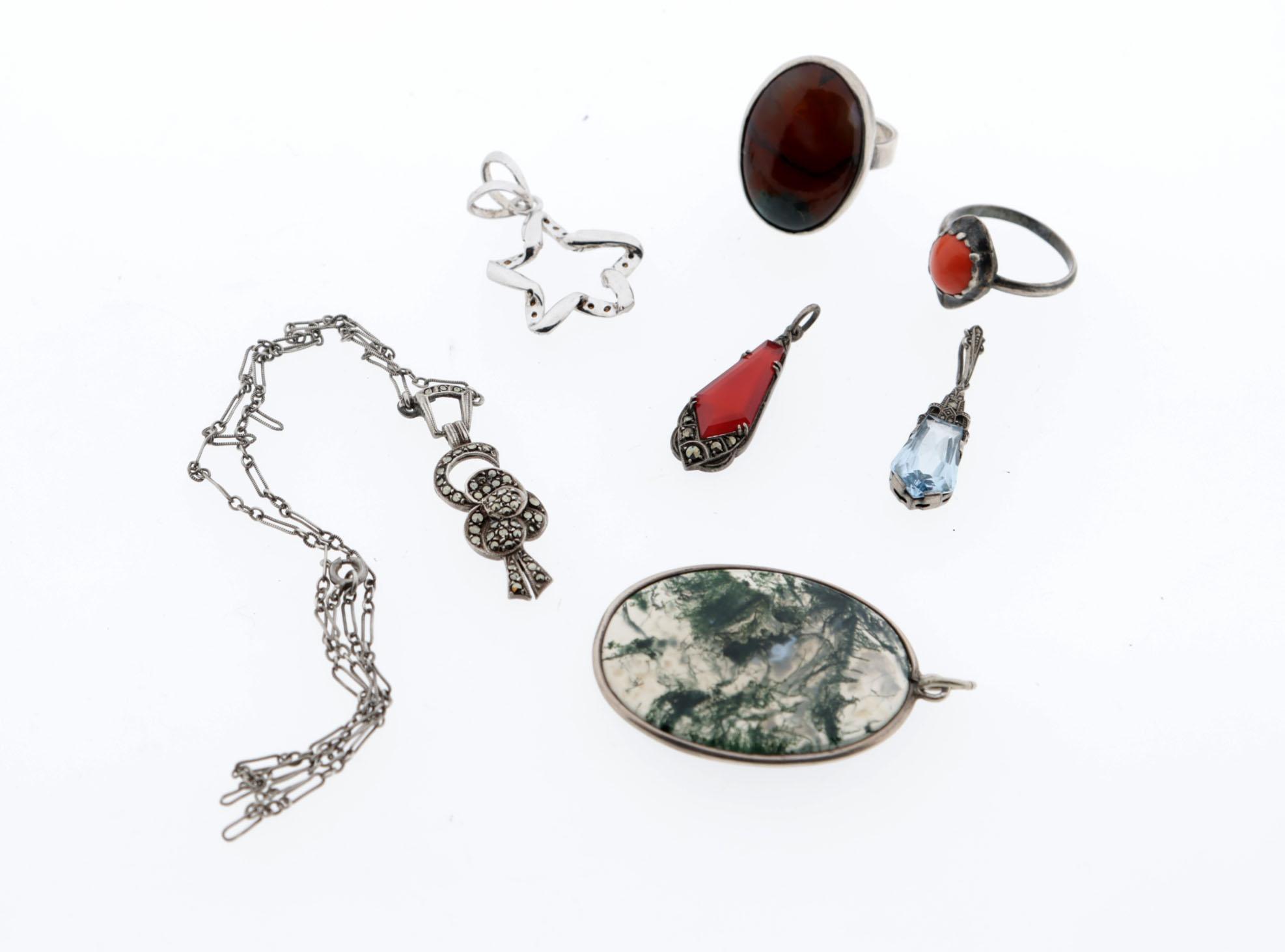 Koopje diverse ringen, collier en hangers w.o. zilver