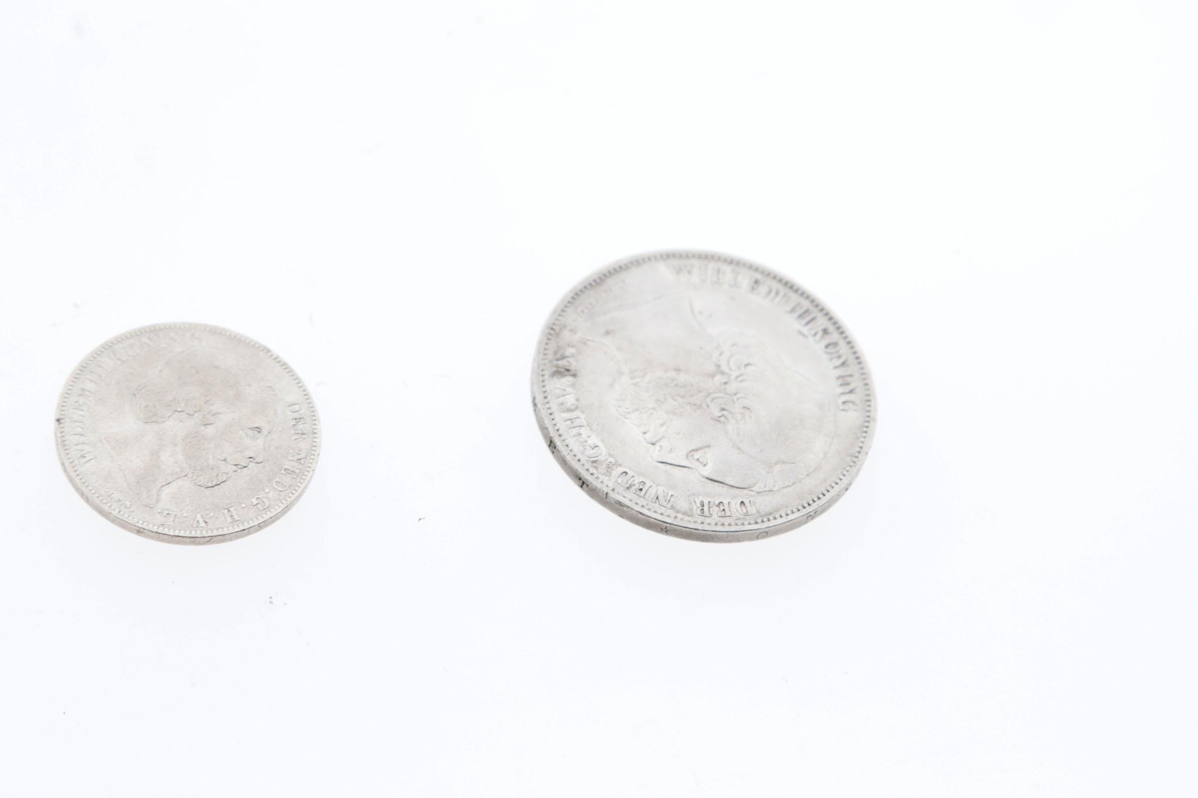 Zilveren rijksdaalder en gulden muntstuk, Koning Willem III, 1861 en 1865