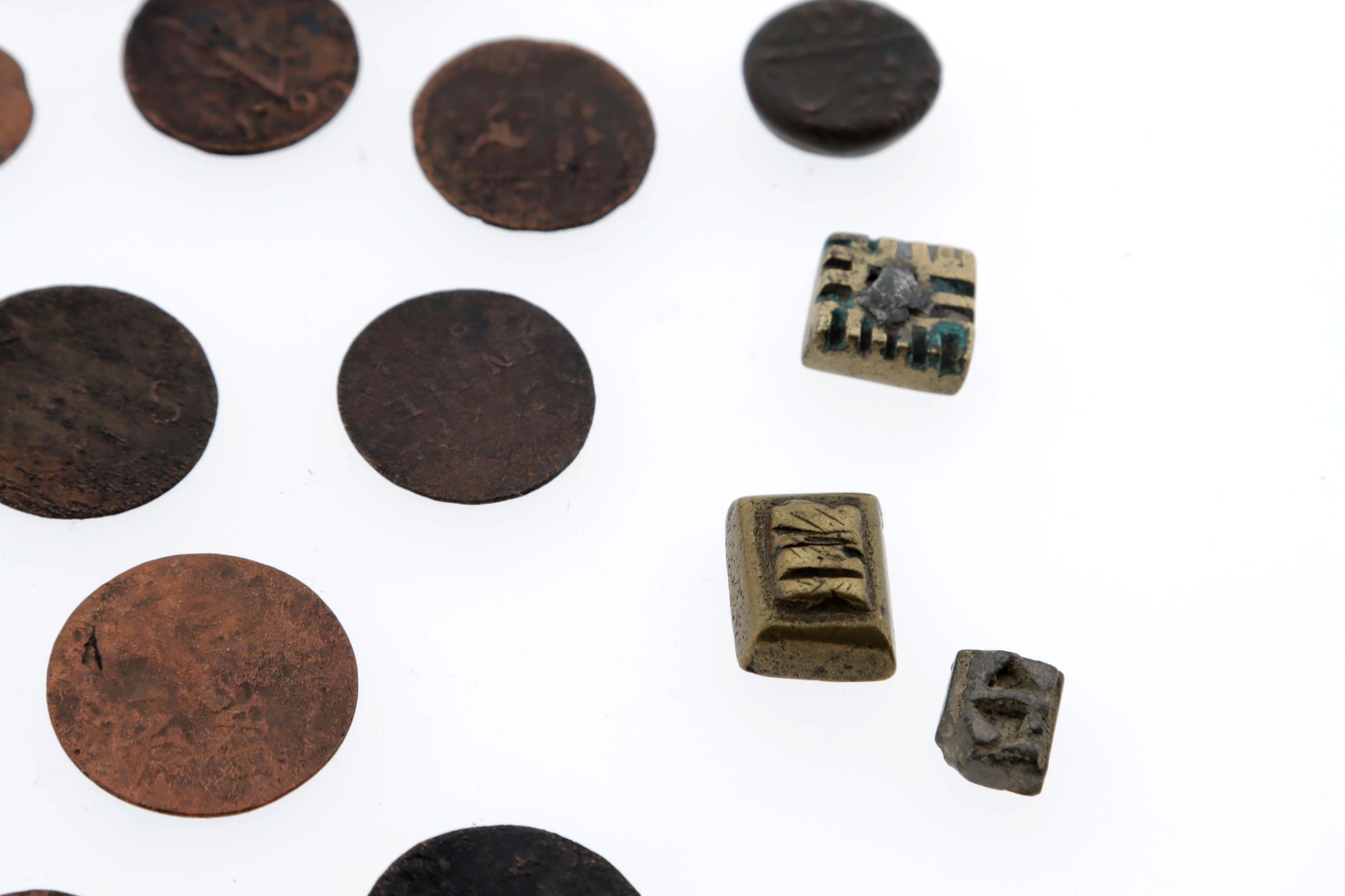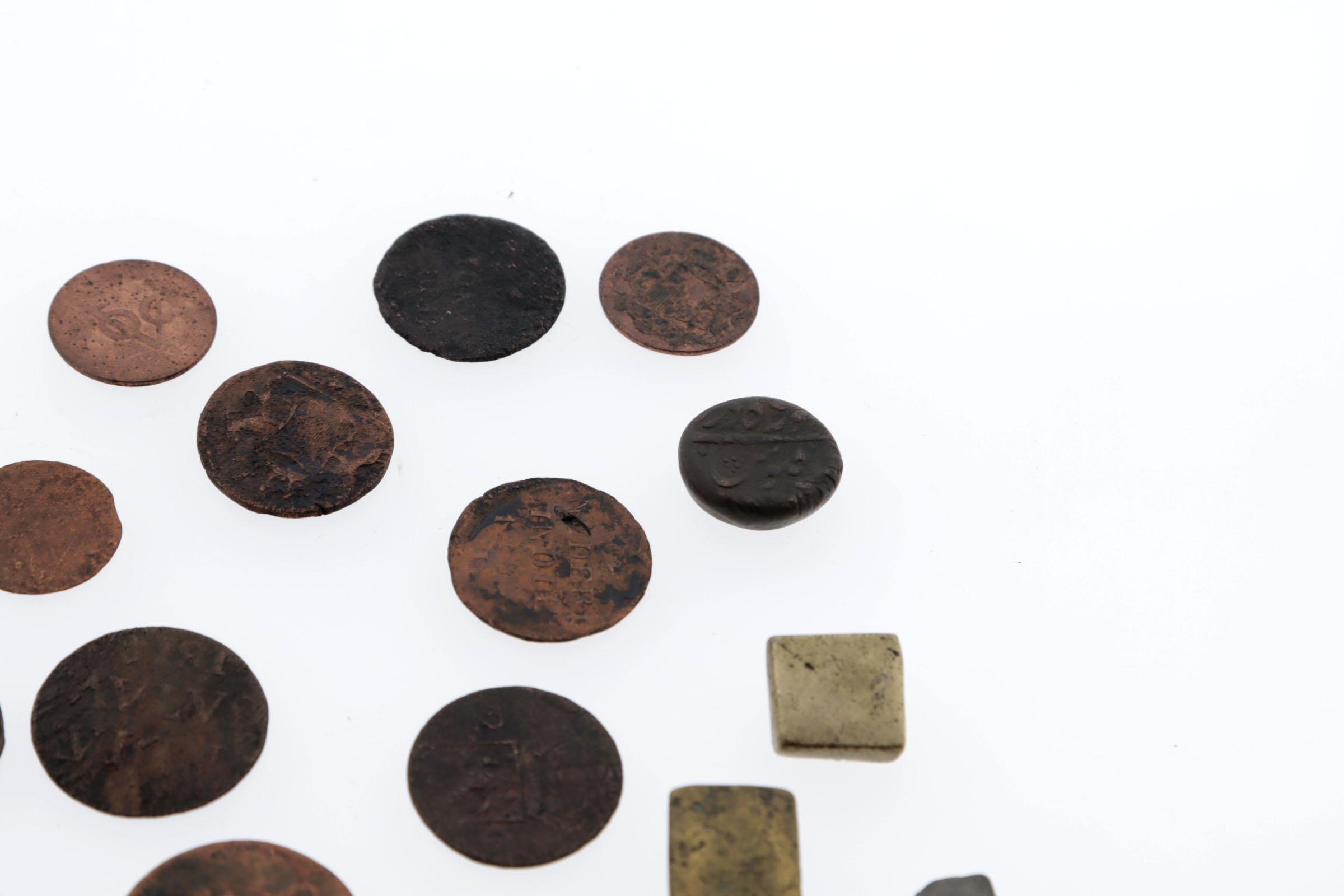 Koopje VOC munten en goudgewichten ca.1790 (17 stuks)