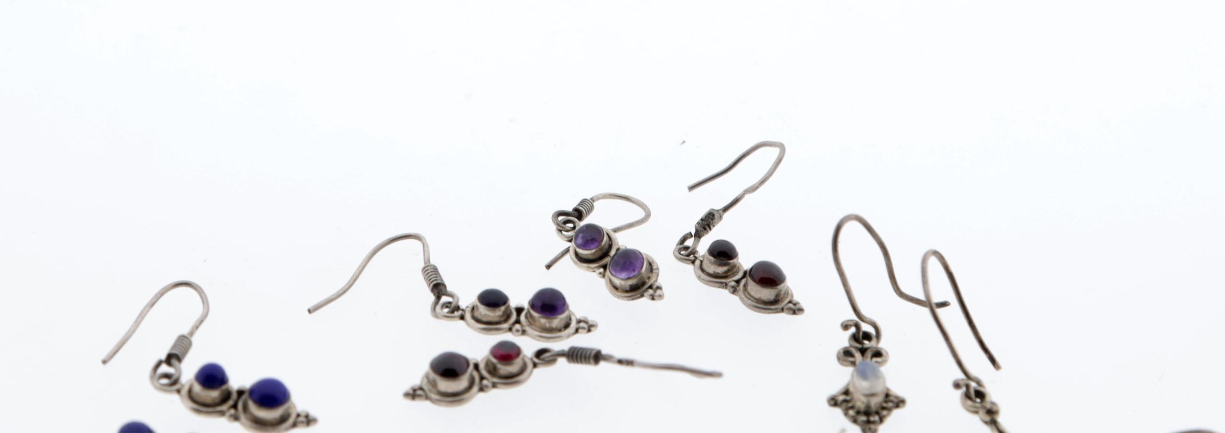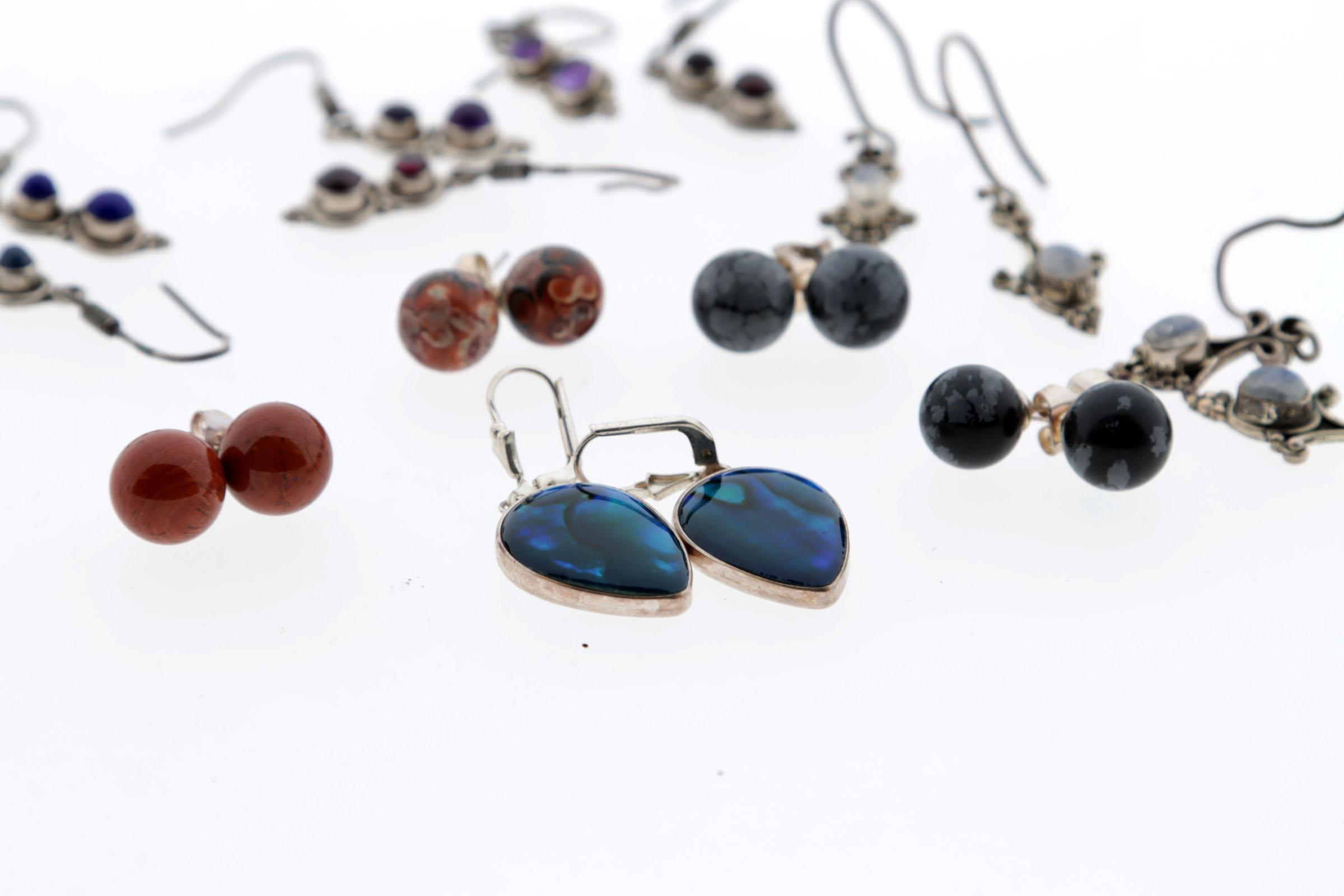 Koopje van 10 paar zilveren oorbellen stekers en hangers