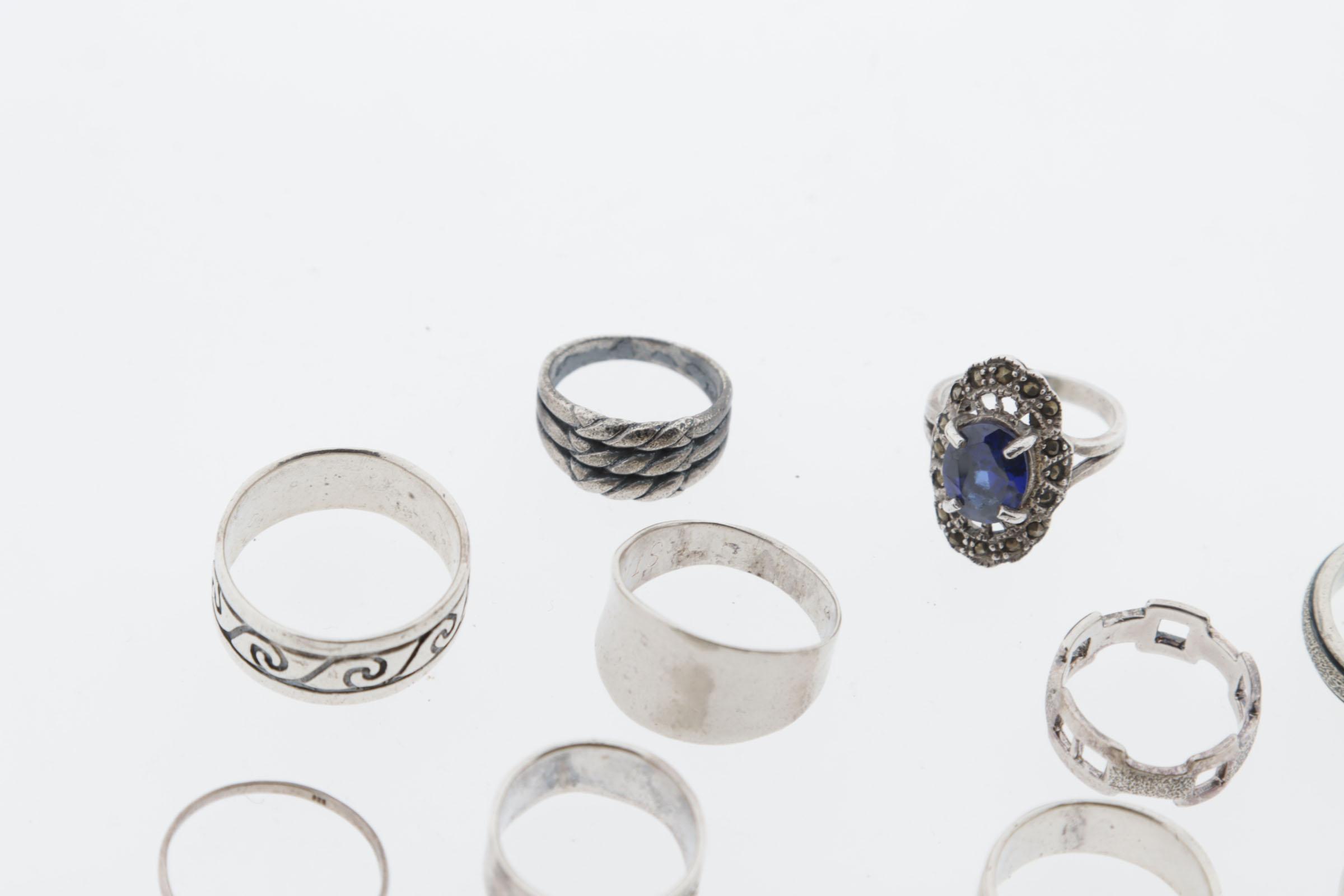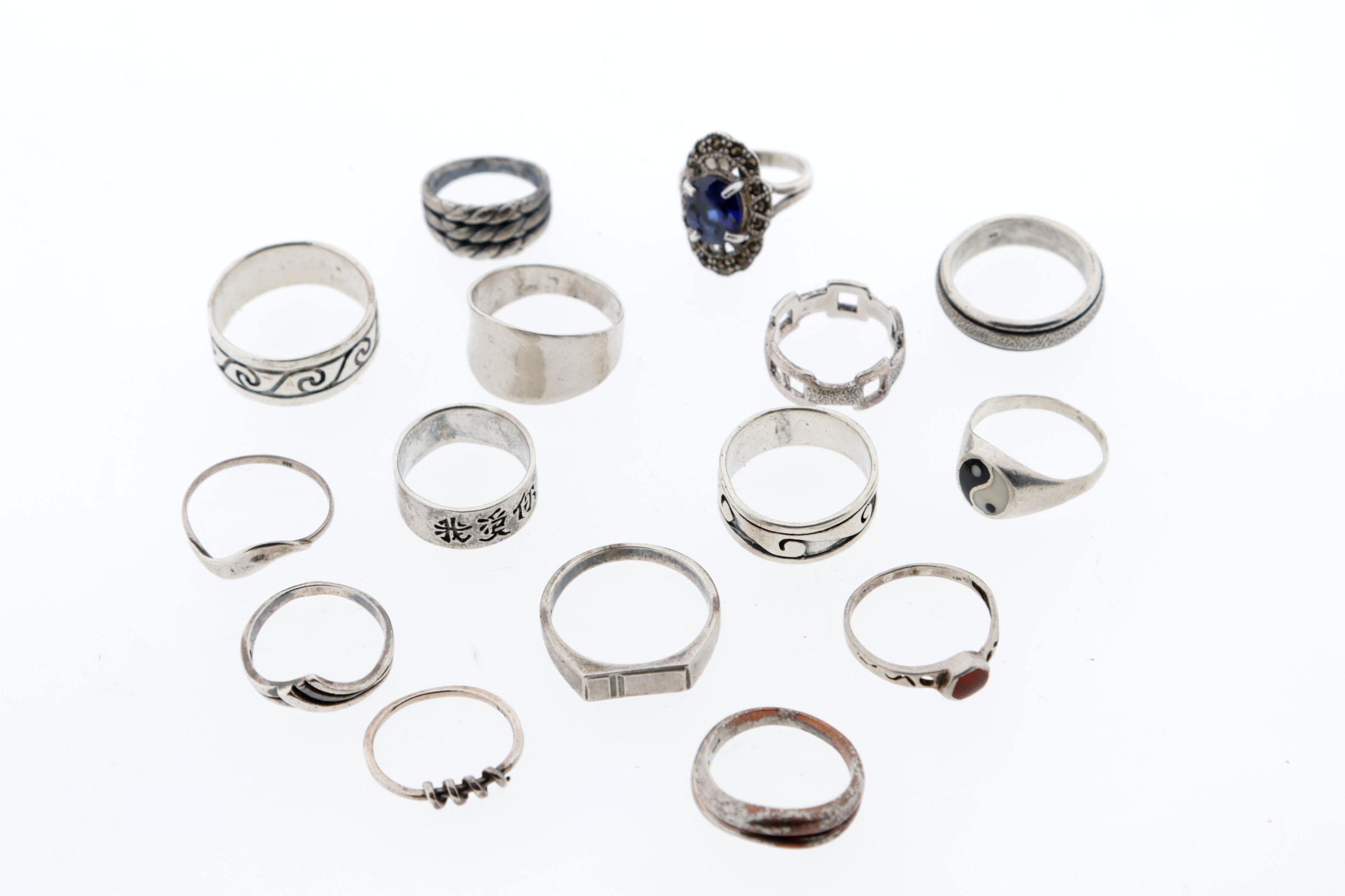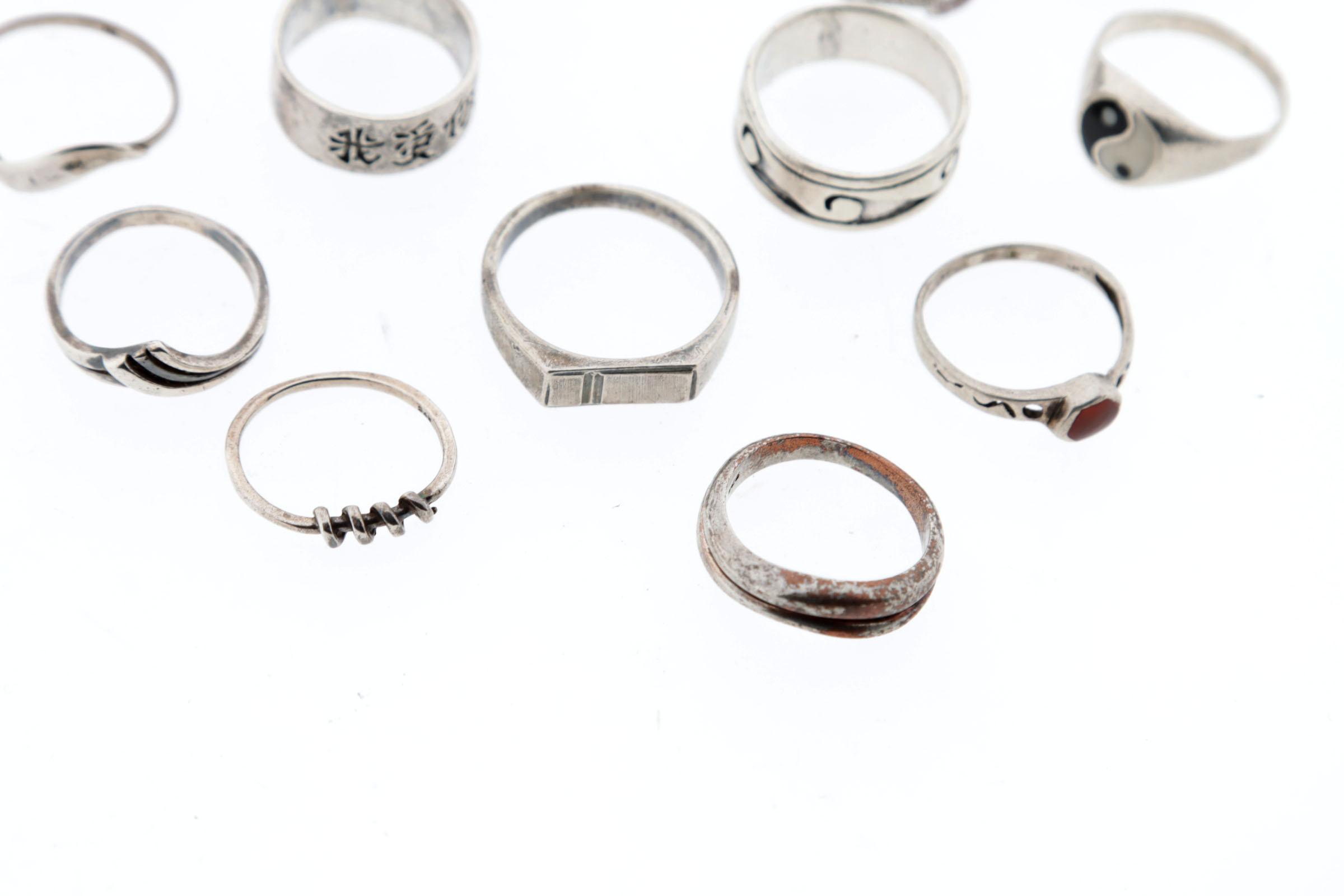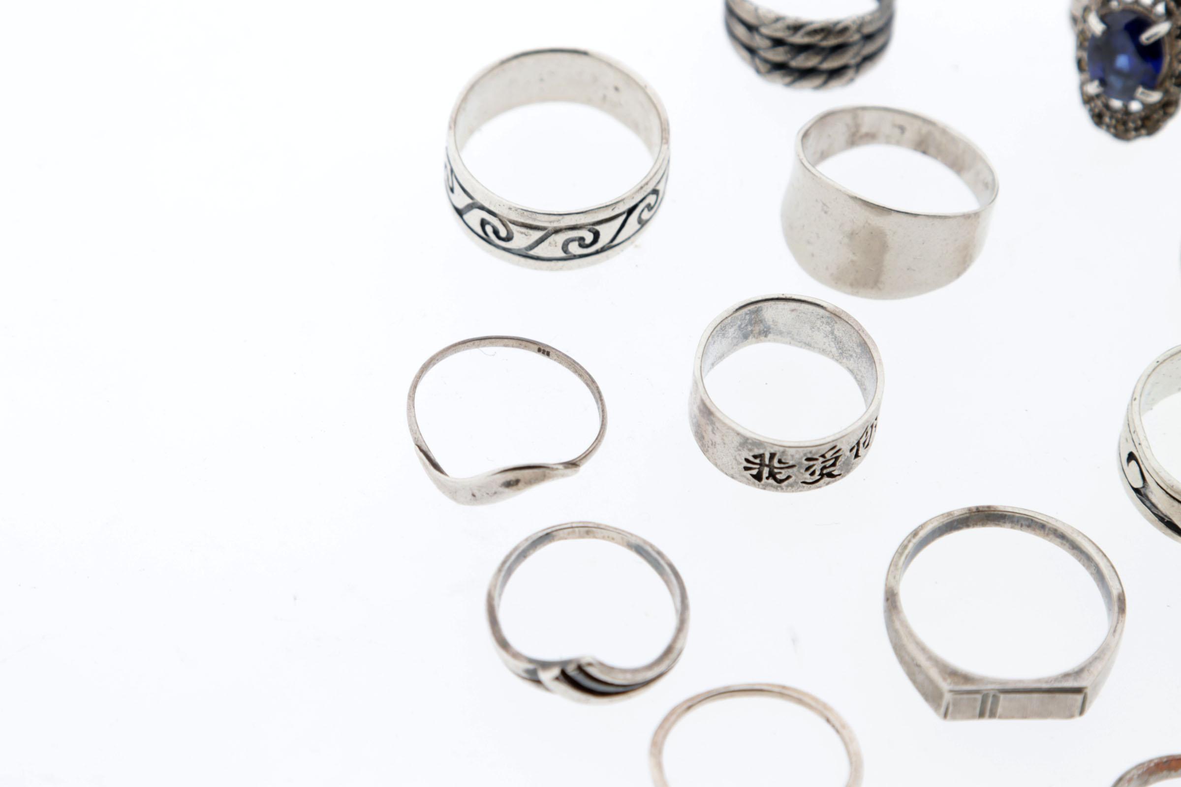 Koop diverse zilveren dames/herenringen, diverse maten, 55 gram