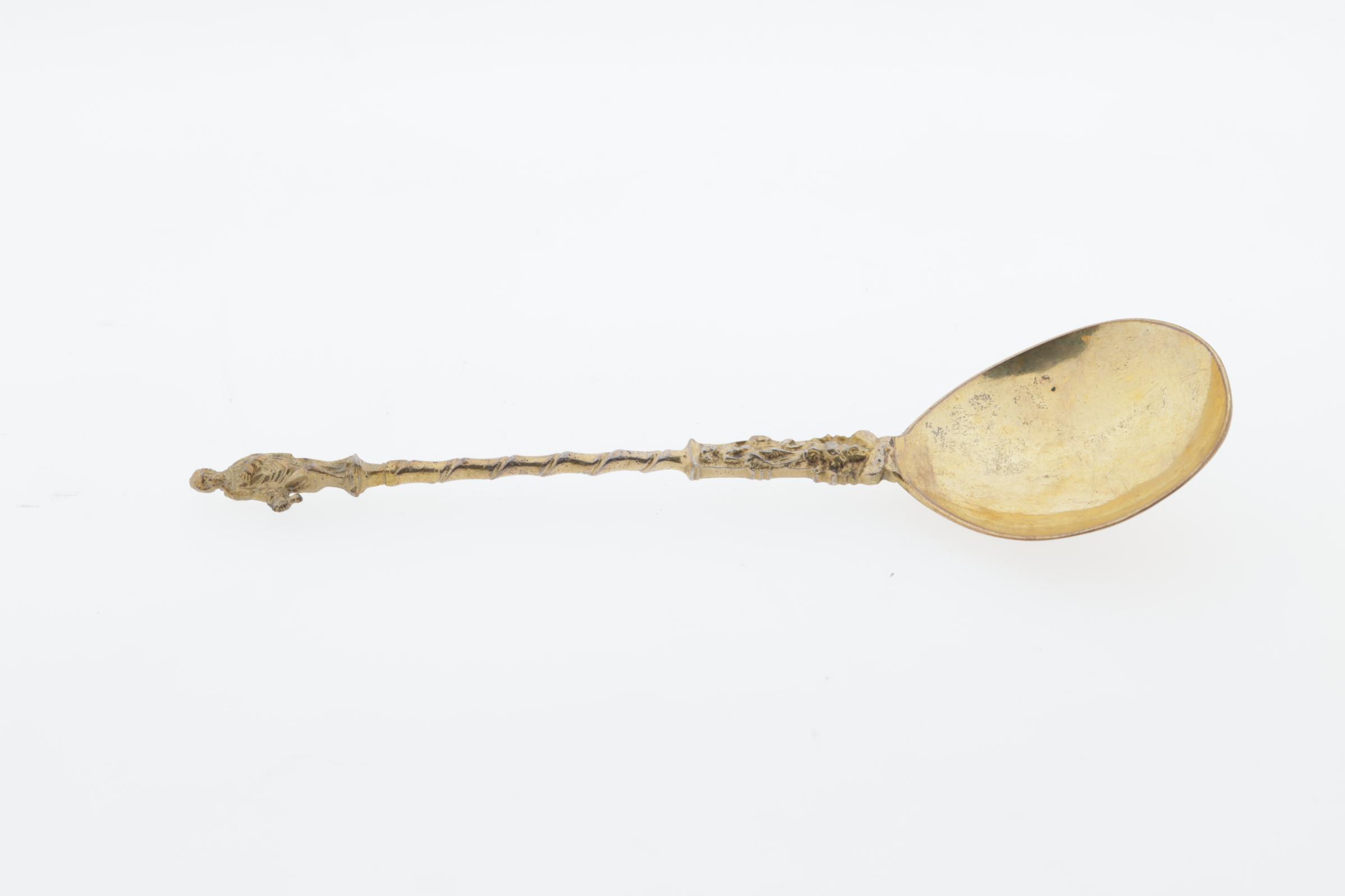 Verguld zilveren apostellepel met afbeelding van heilige, 18e eeuw, 19 cm.