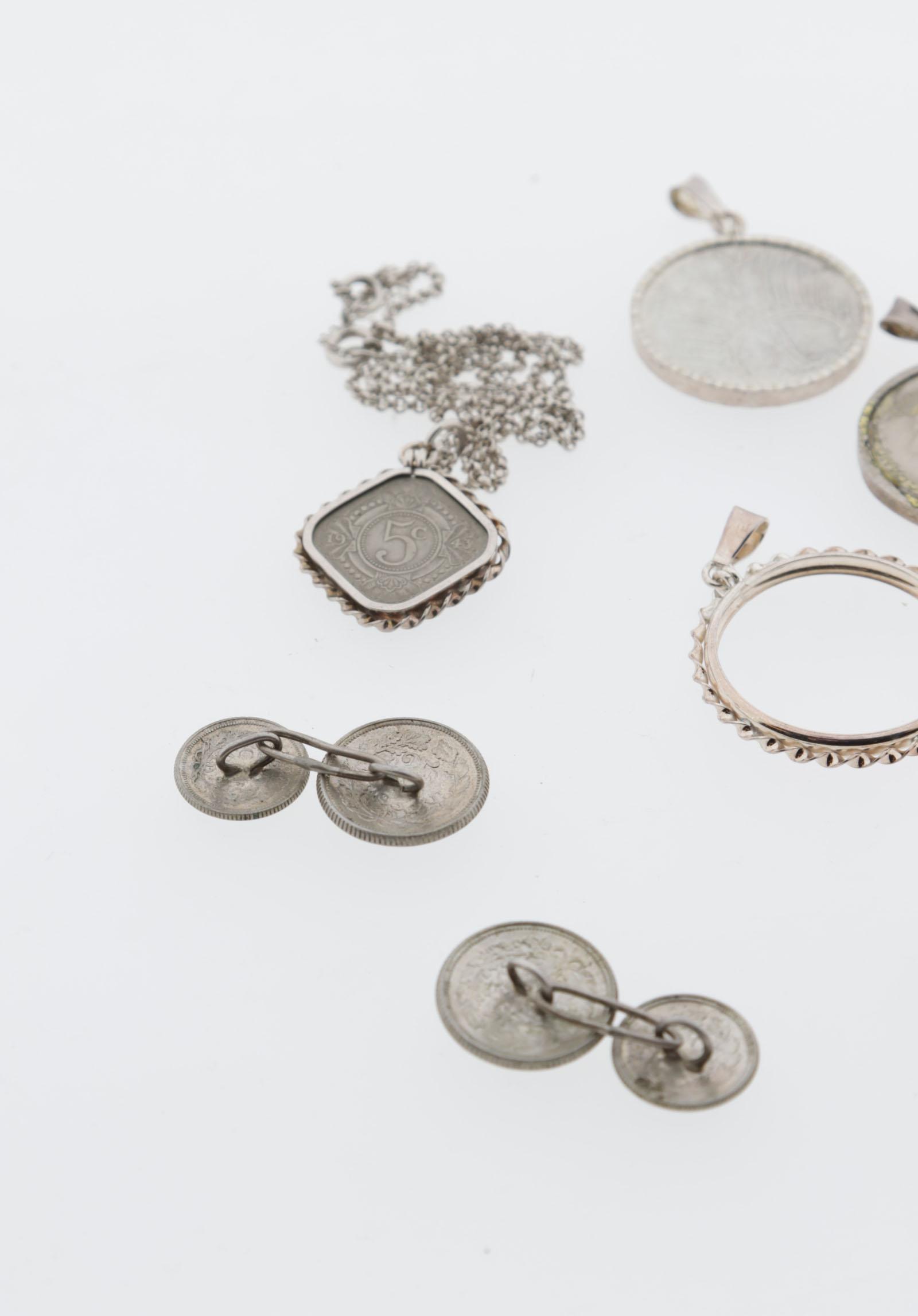 Koop divers w.o. zilveren muntranden, jasseron collier, etc., 75 gram