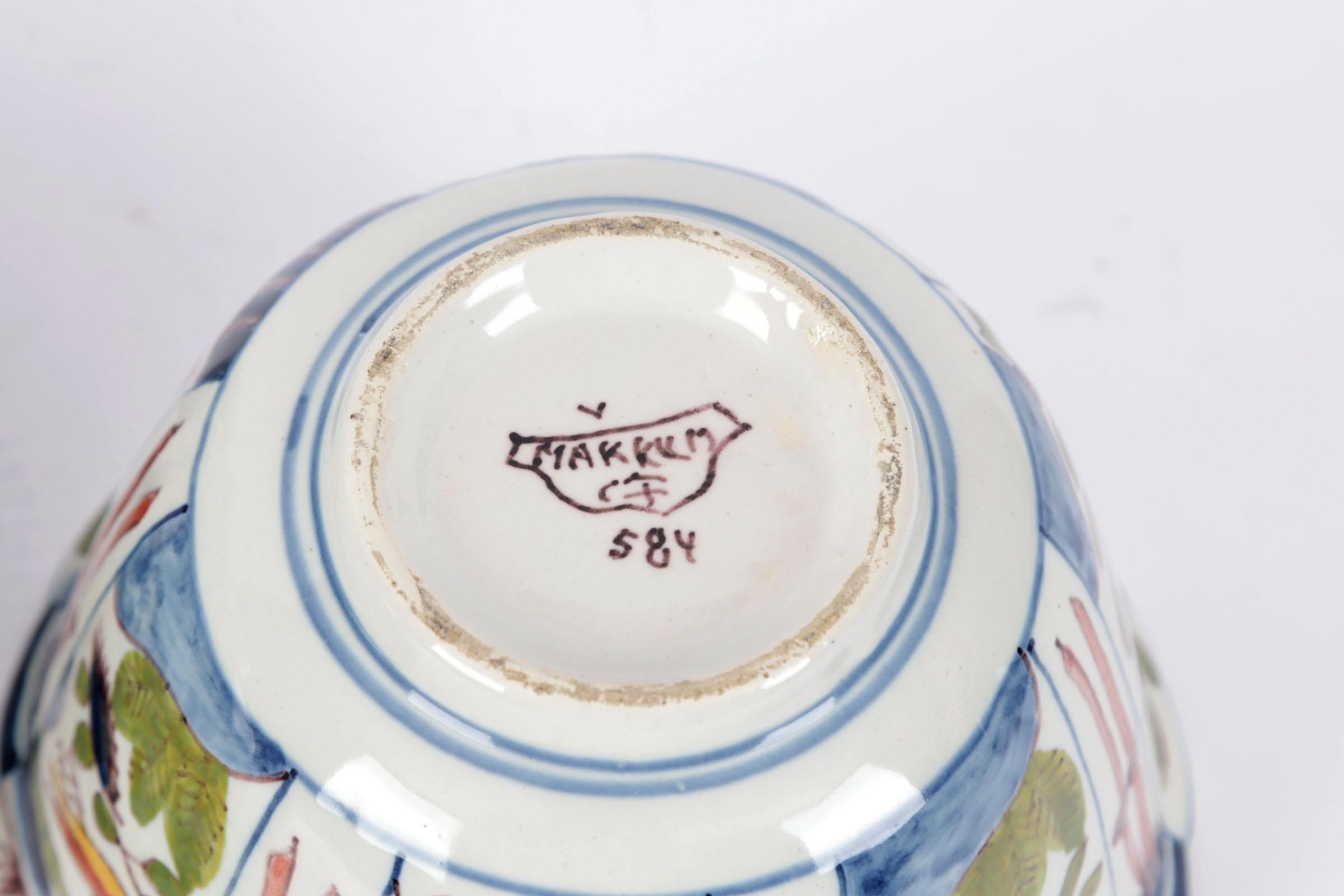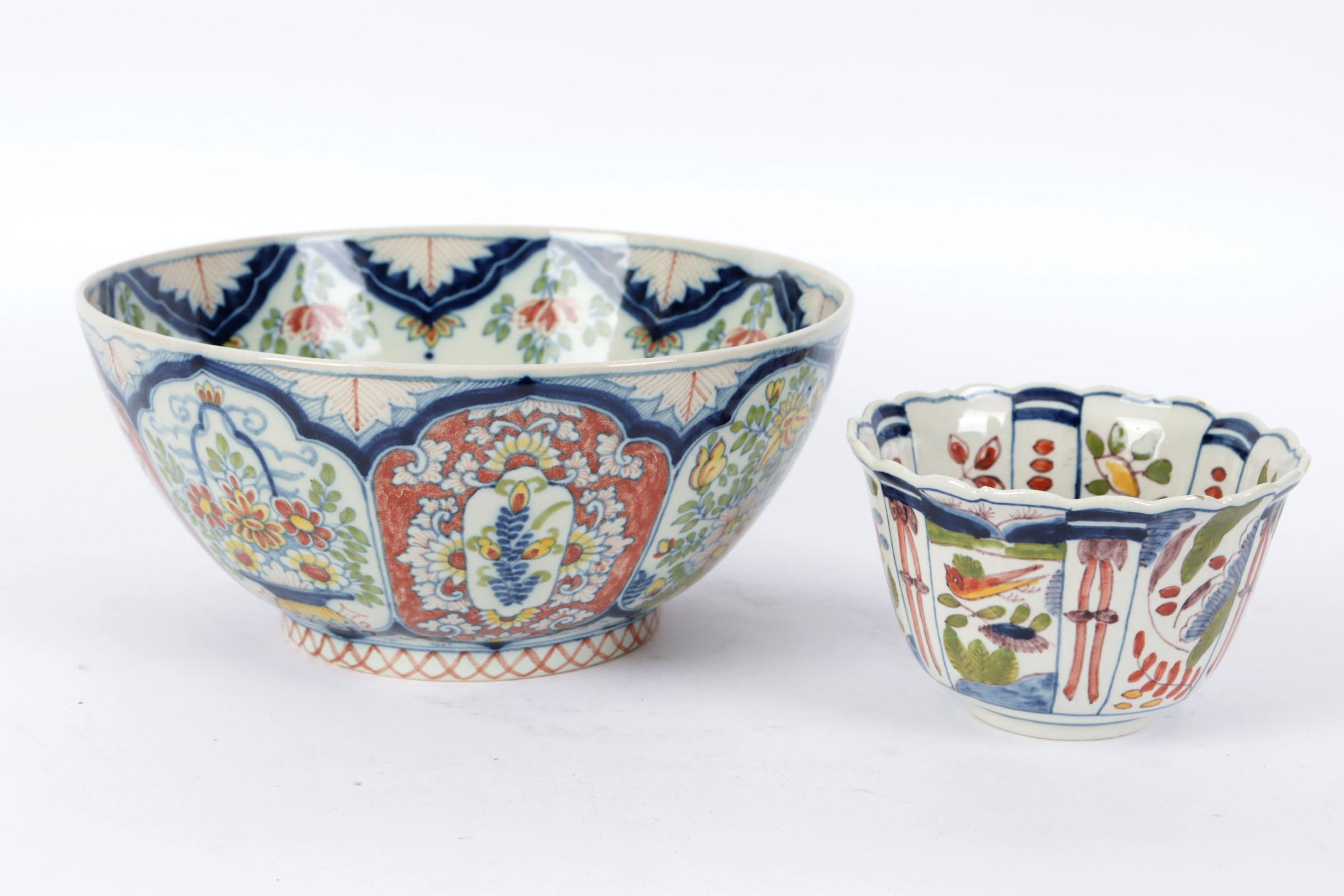 2 Makkum kommen, h.13 x diam.27 cm., h.10 x diam.14,5 cm.