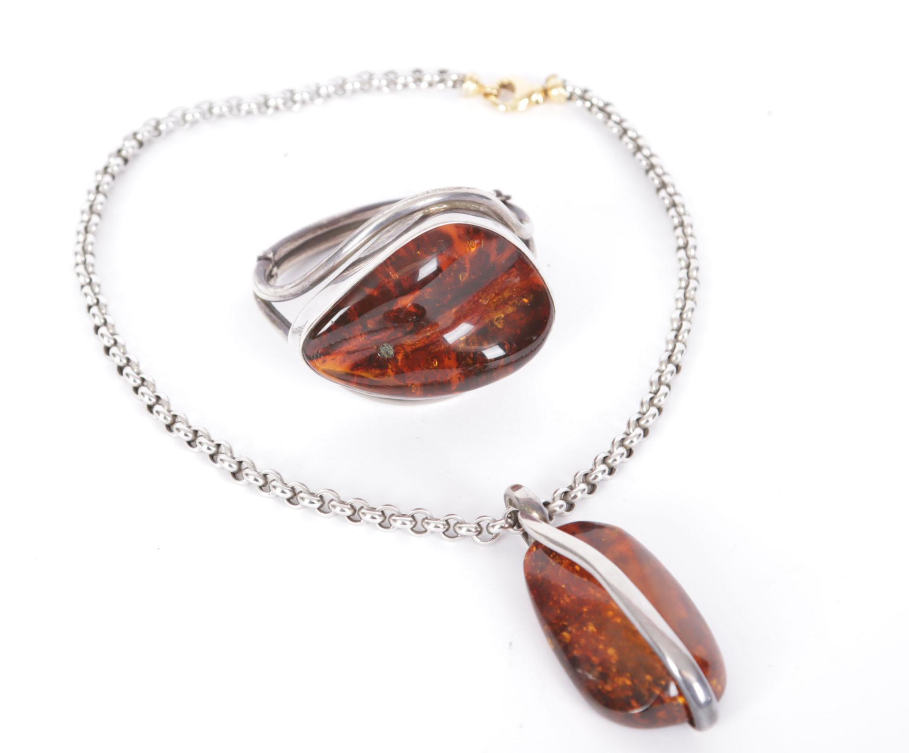 Zilveren collier met verguld slot met hanger en bijpassende armband