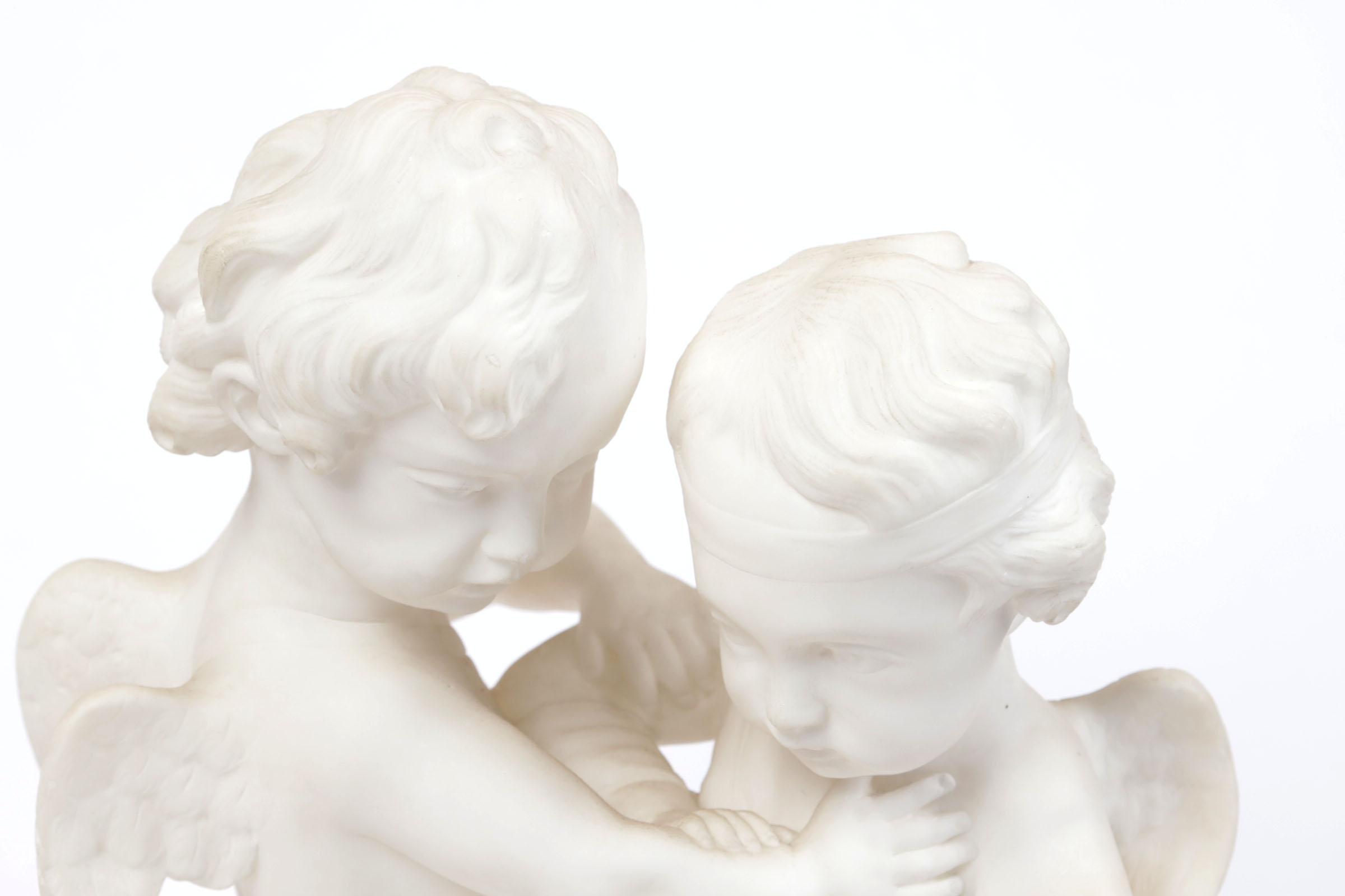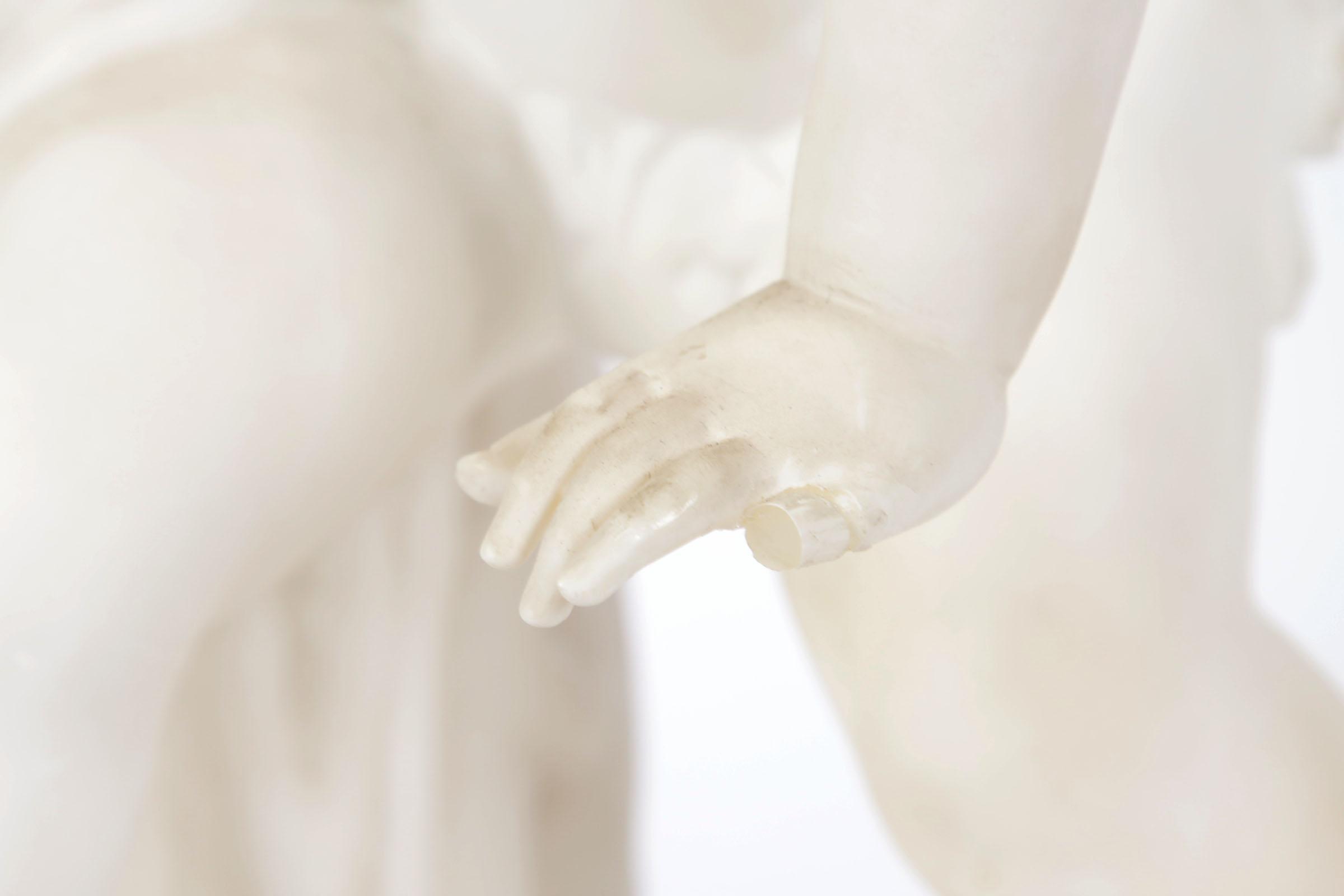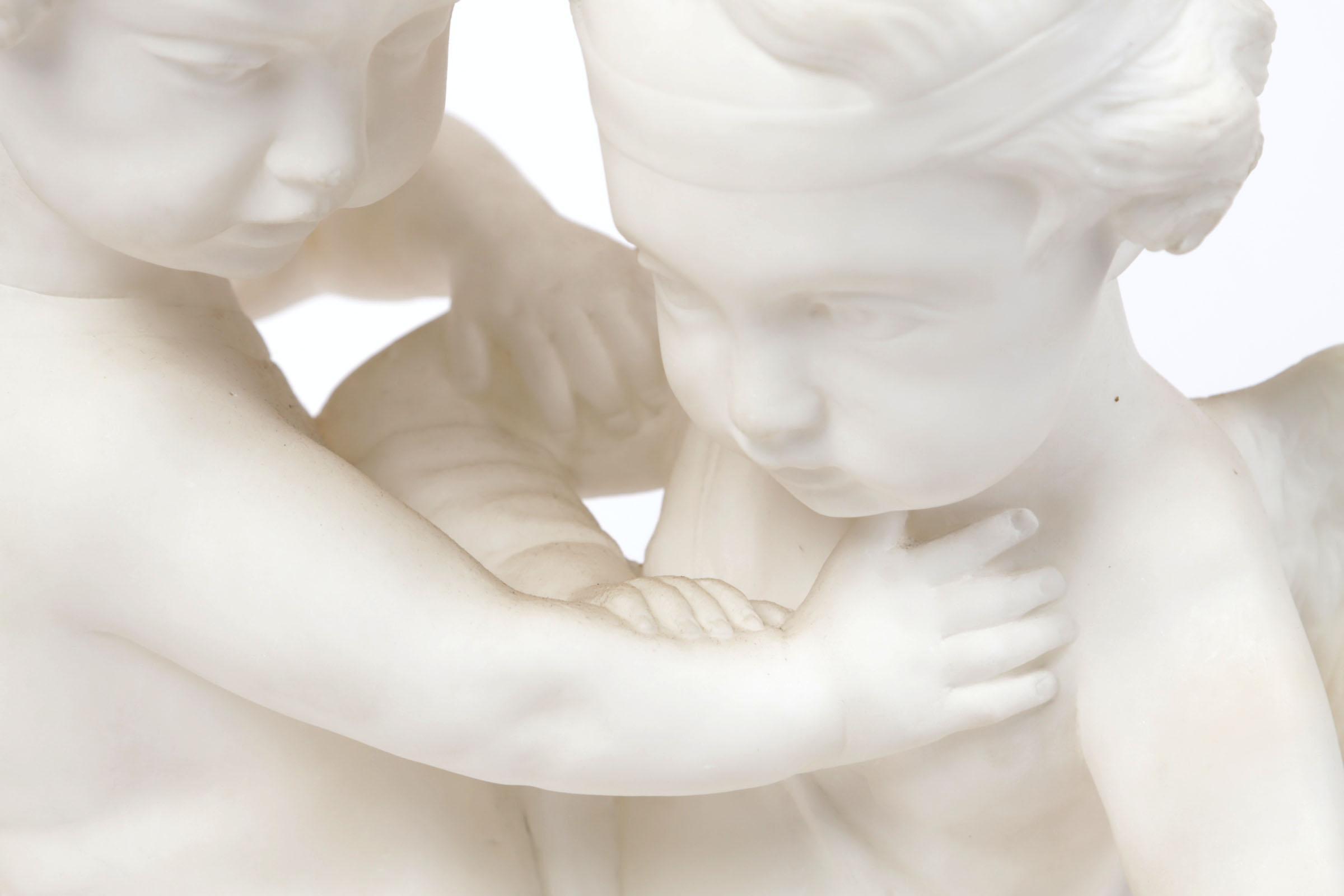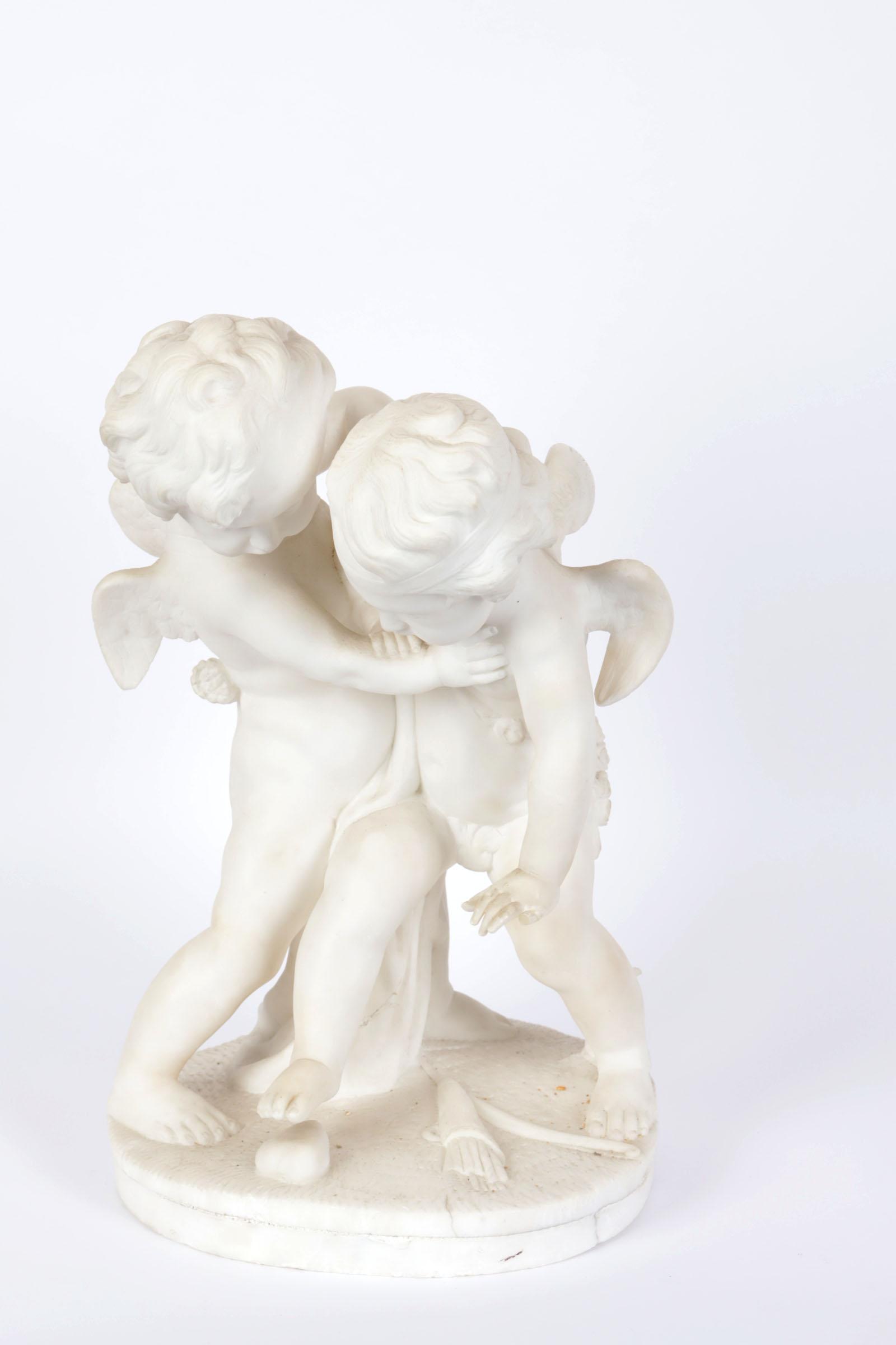 Onb.meester, Wit marmeren sculptuur van twee engelen, 19e eeuw, h.??? (vinger defect)