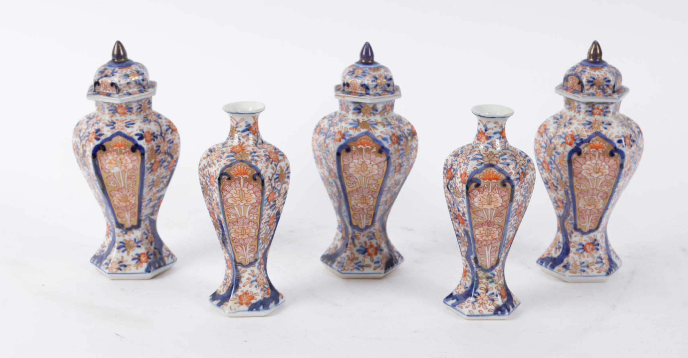 Antiek Imari porseleinen miniatuur 5-delig kaststel