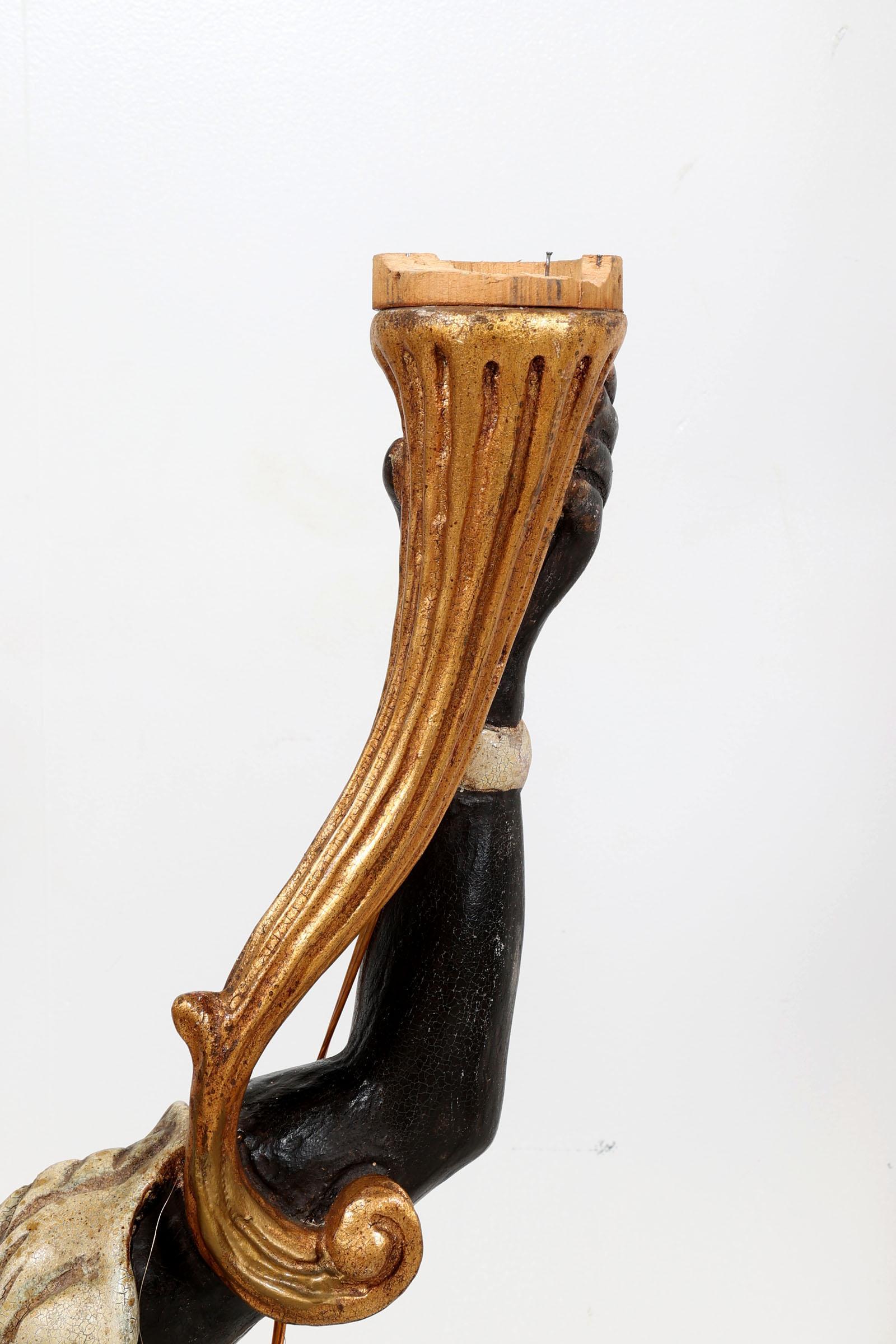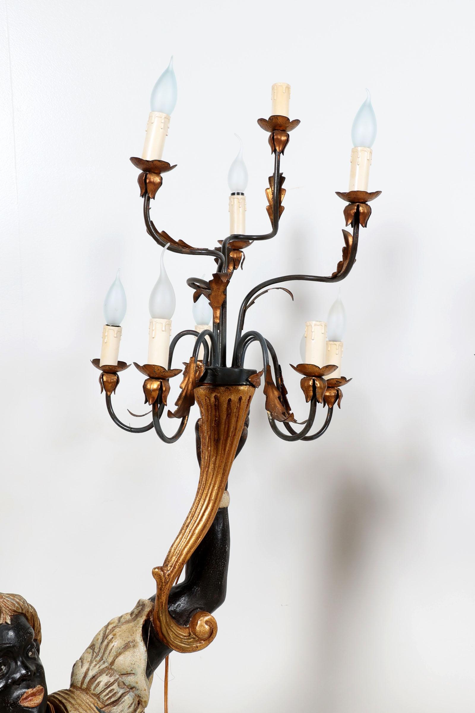 2 Gepolychromeerde Venetiaanse houten lampen gedragen door mannen, h.??? (bedrading niet aangesloten)