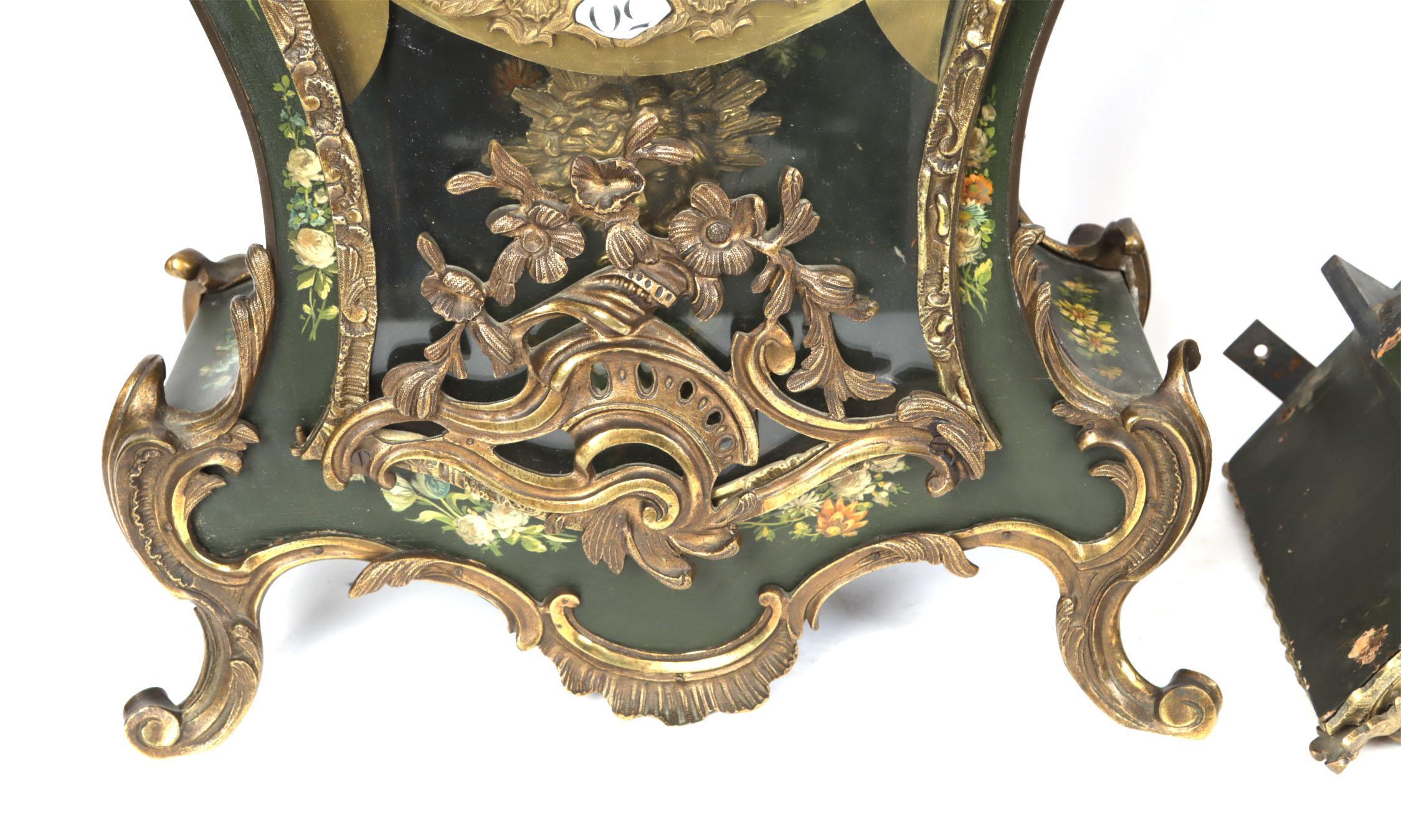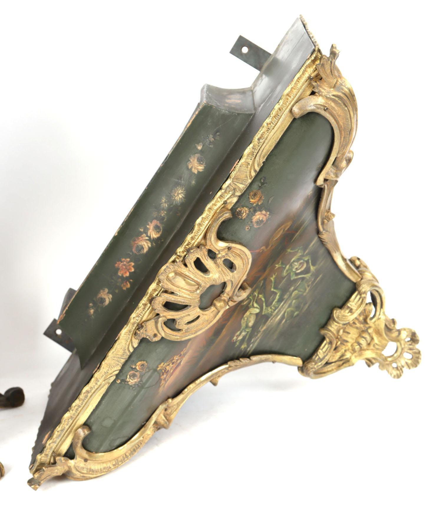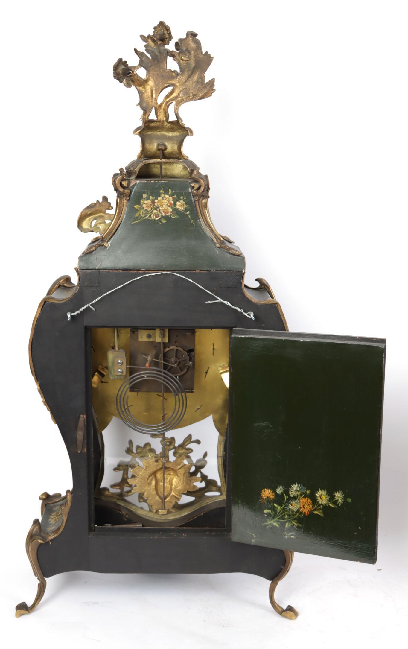 Met bloemen en dieren beschilderde consoleklok met bijpassende console