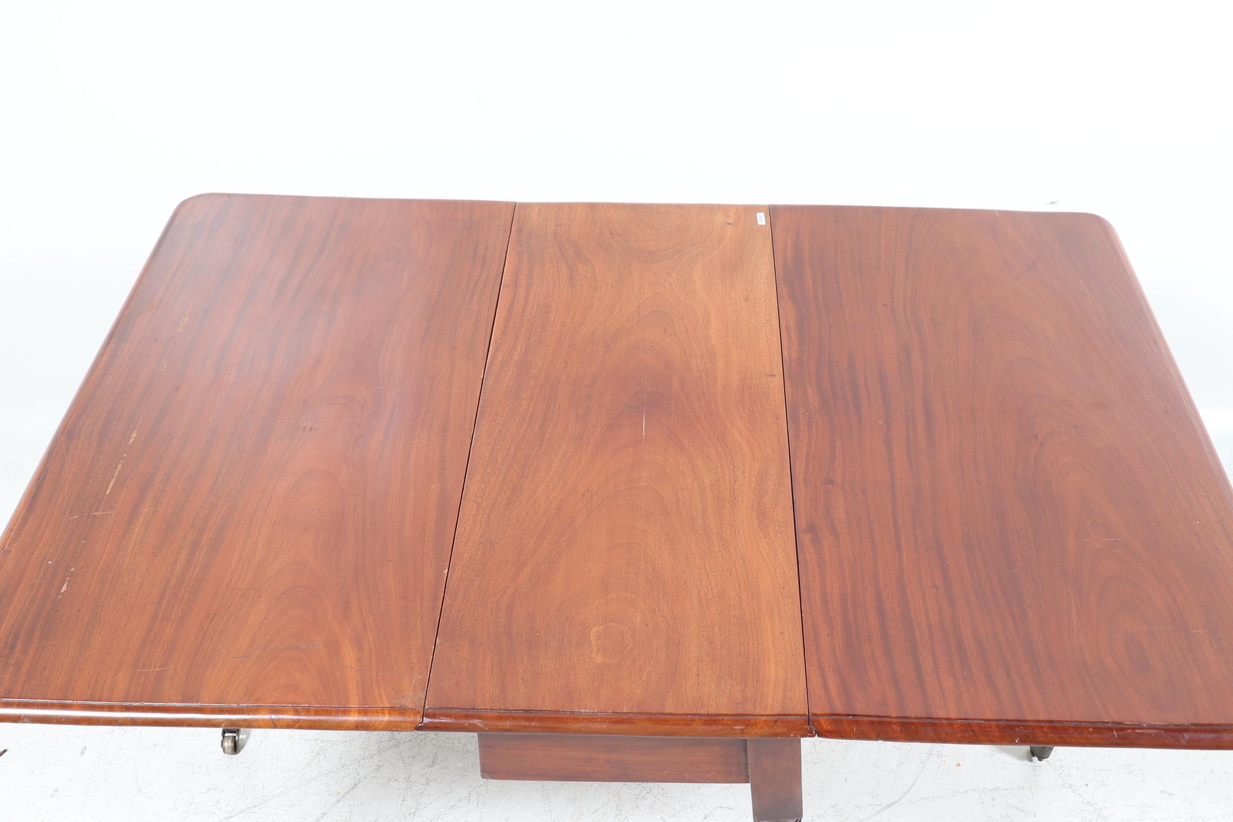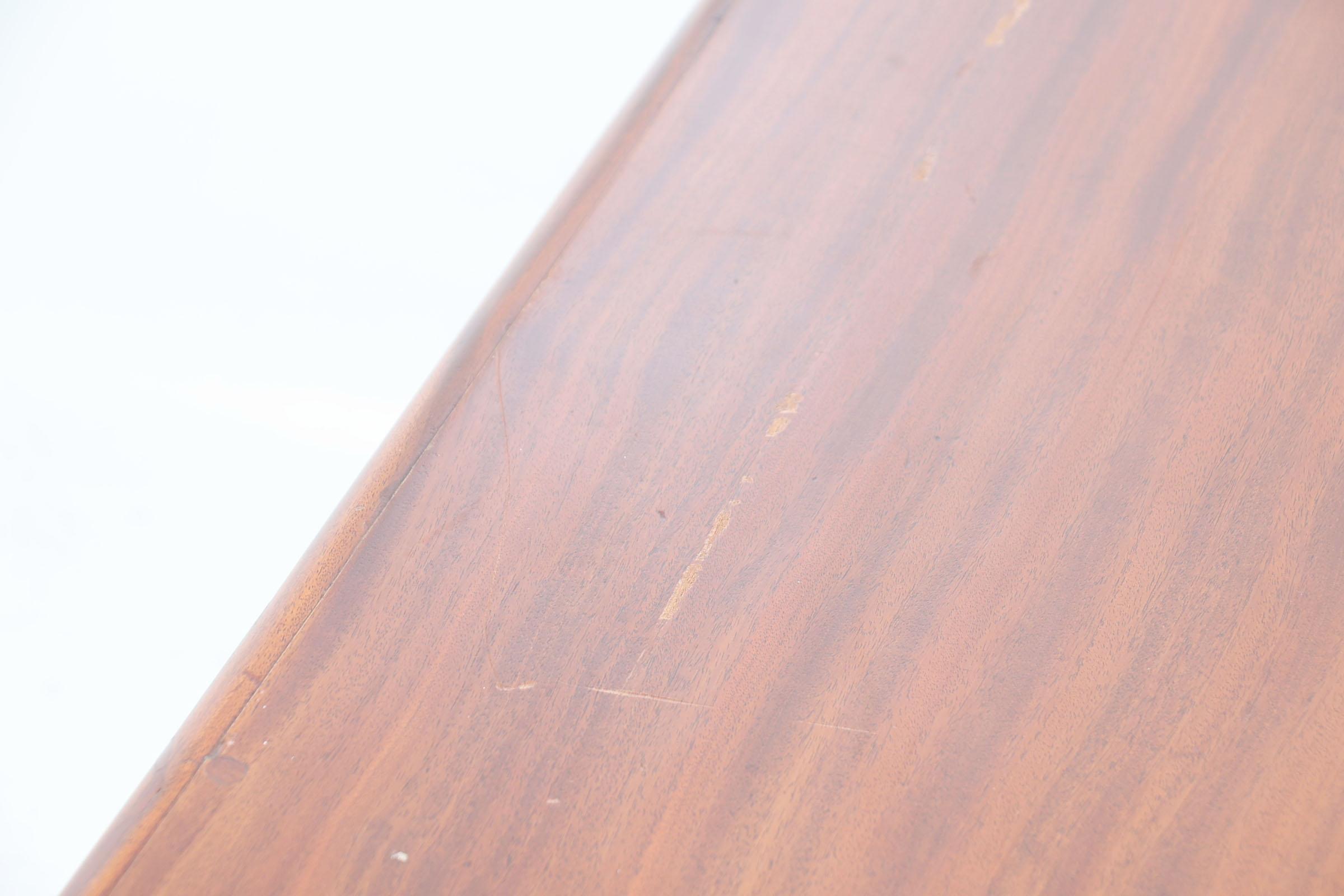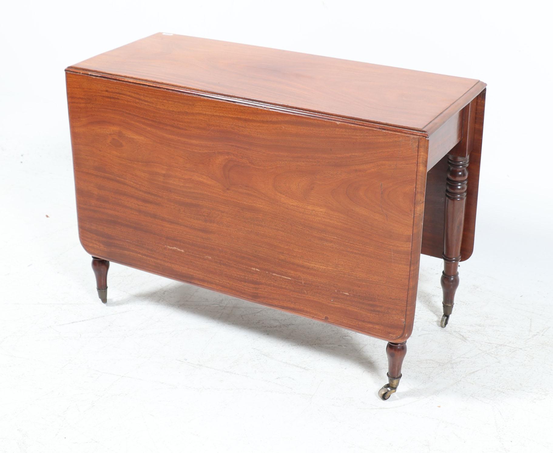 Antieke mahoniehouten hangoortafel rustend op messing wielen