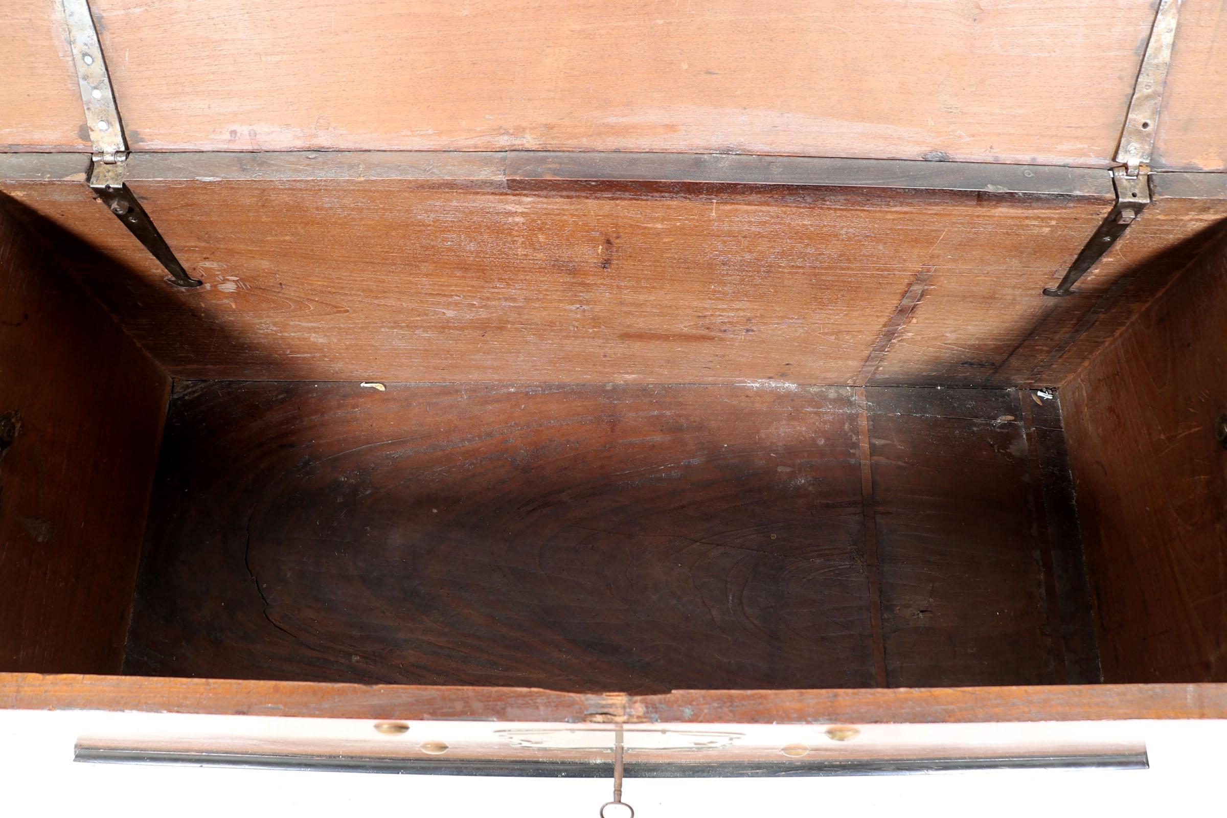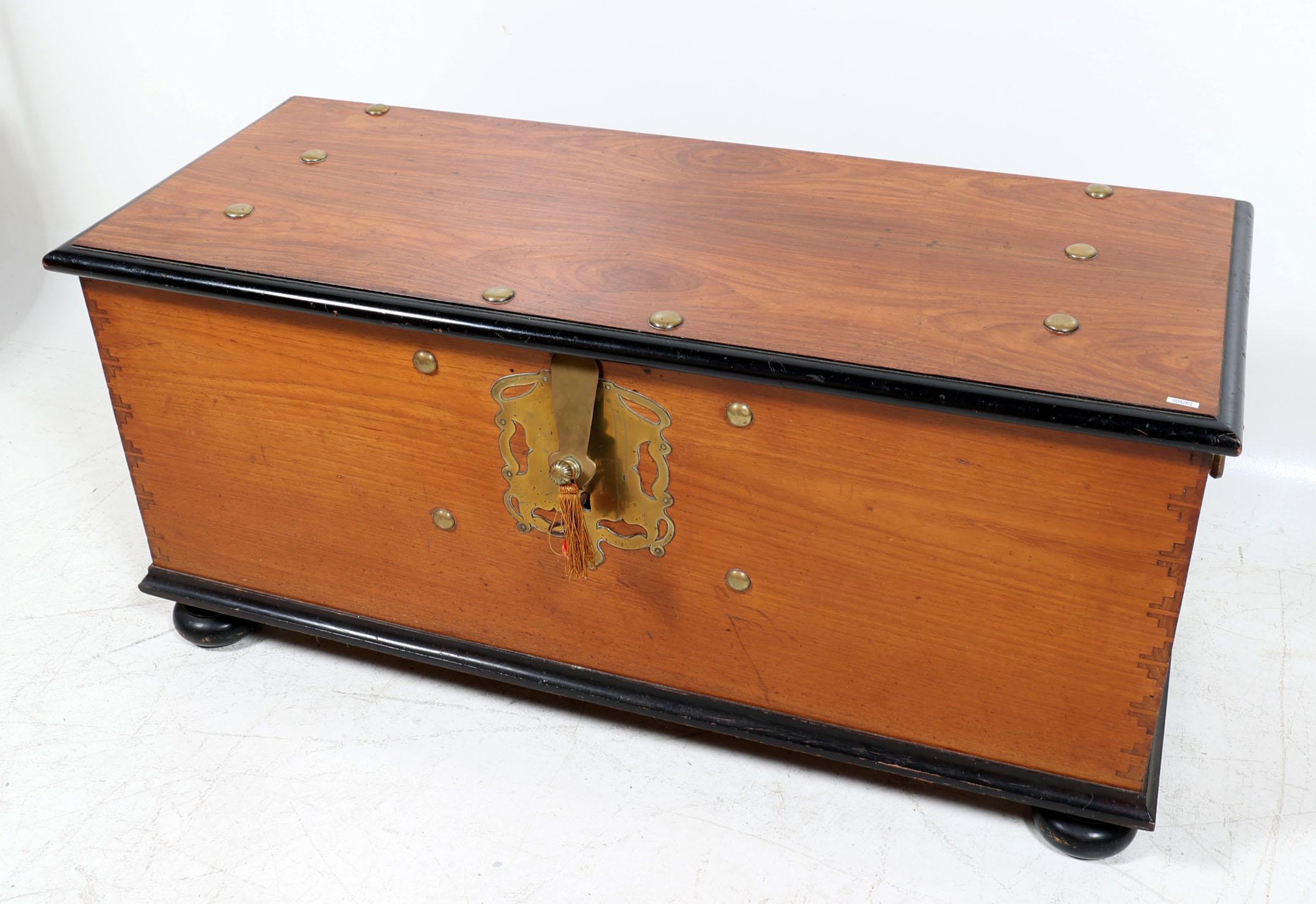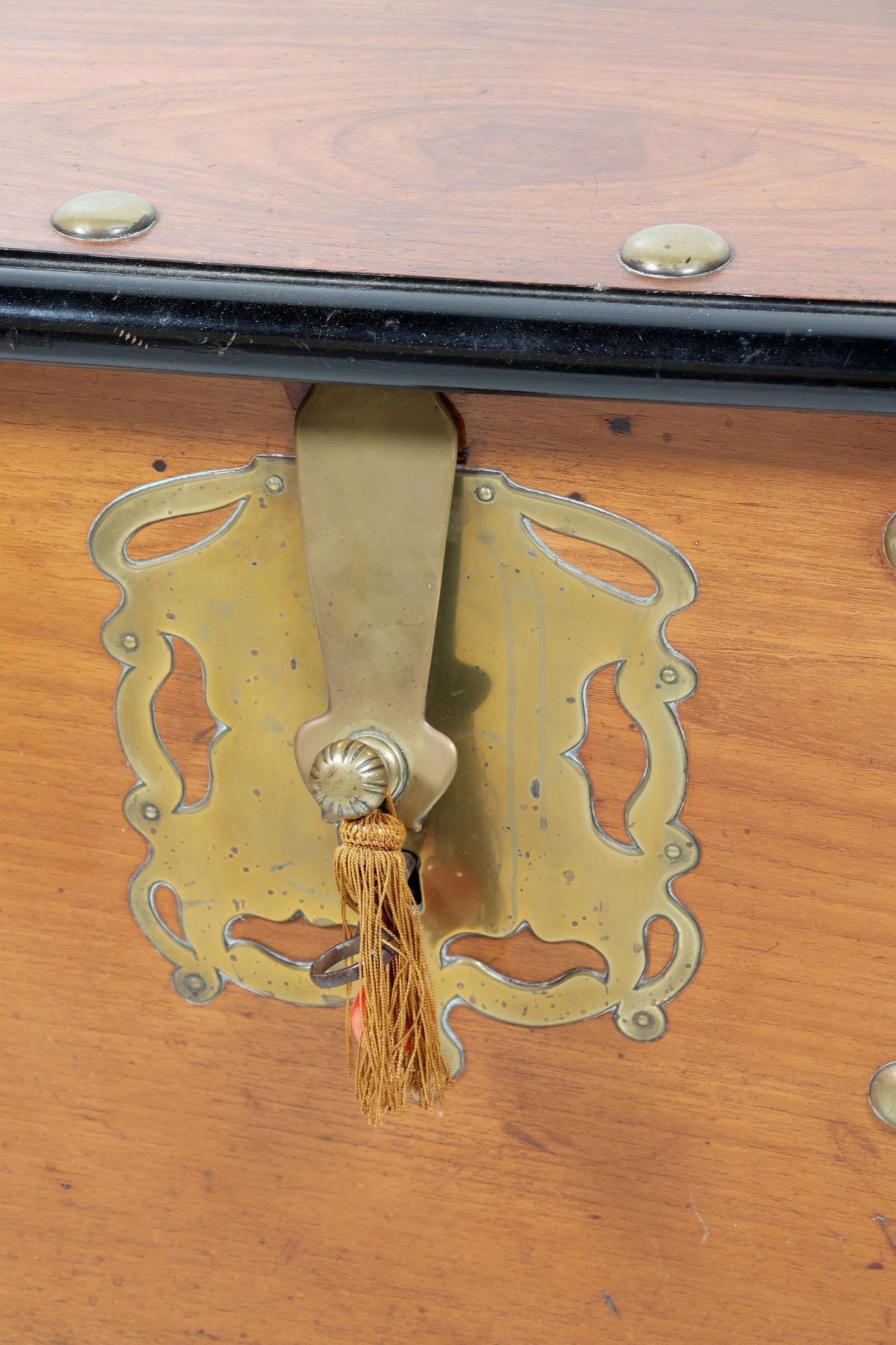 Antieke koloniale teakhouten kist met messing beslag