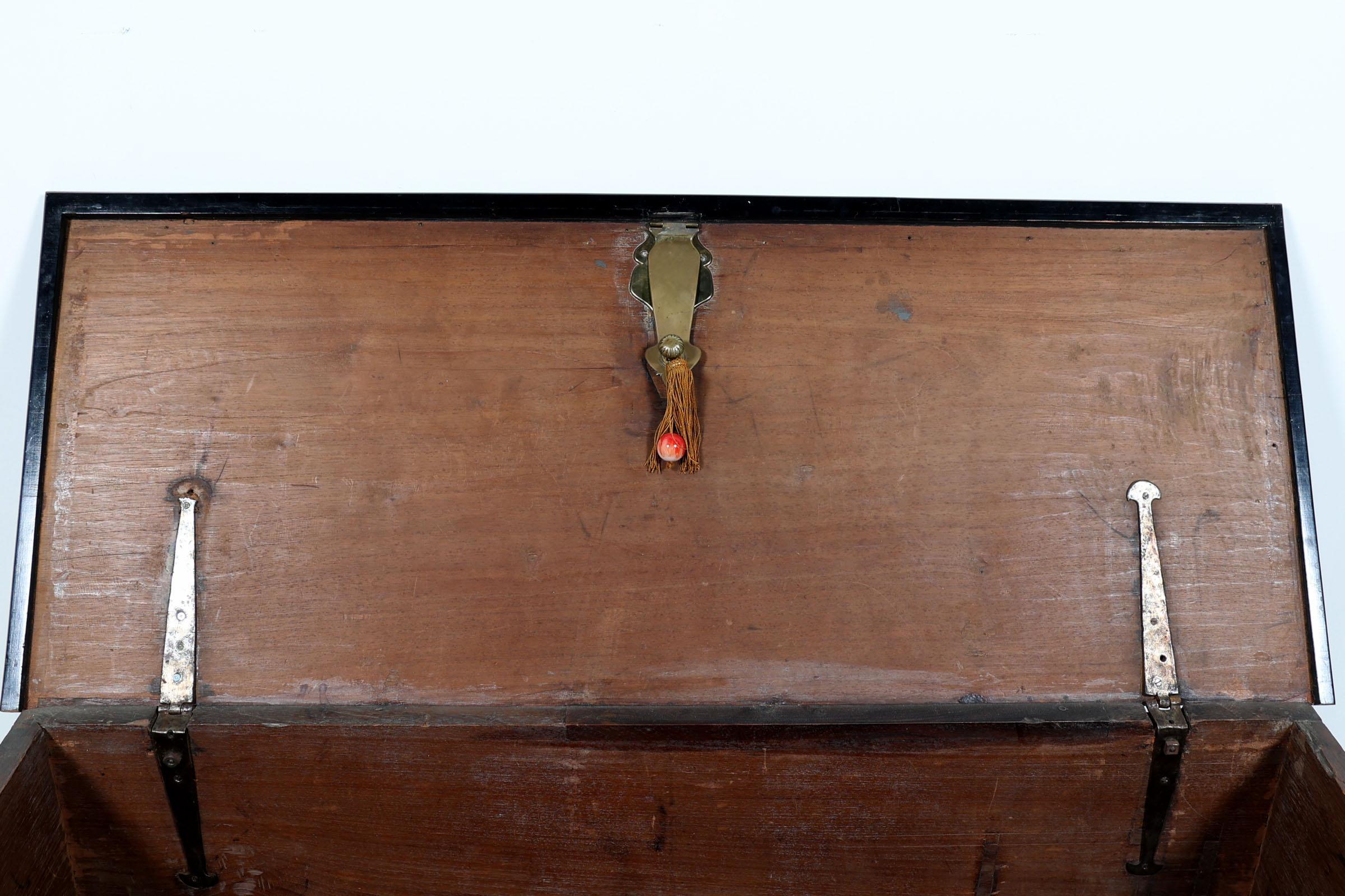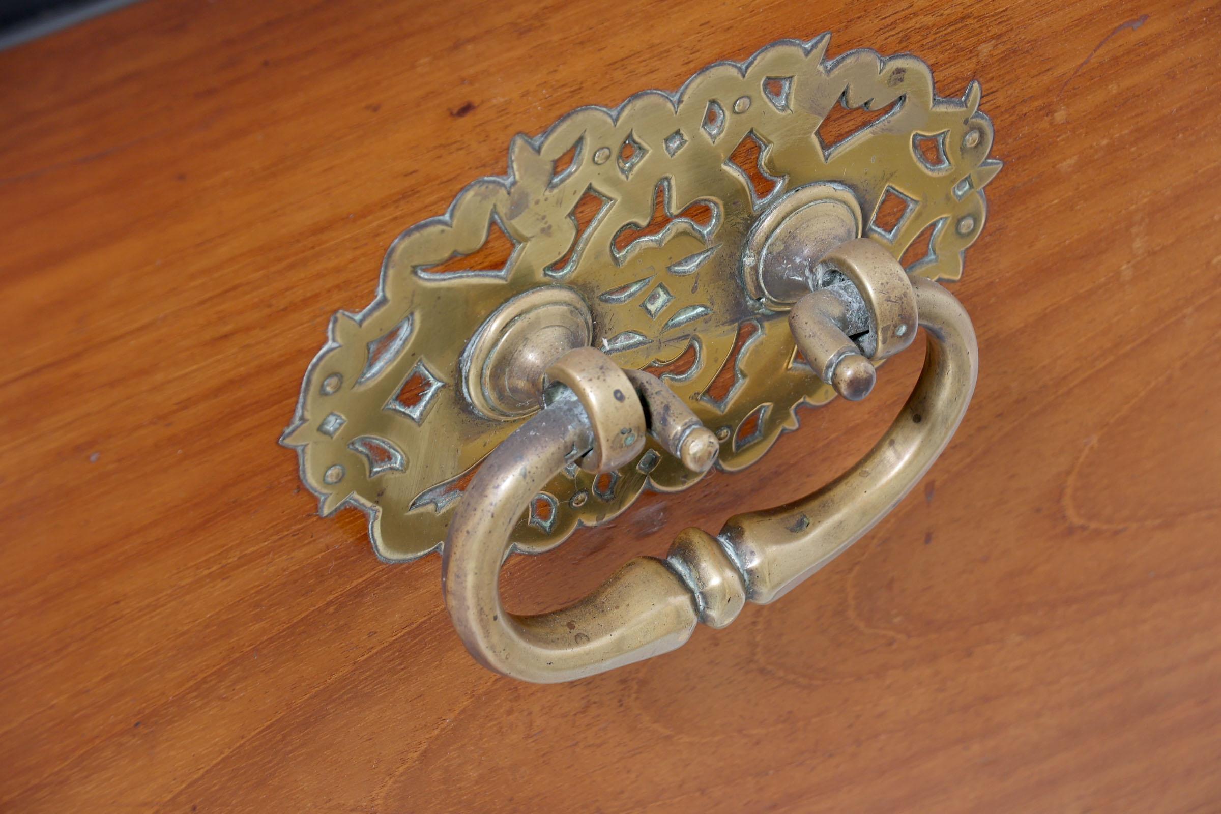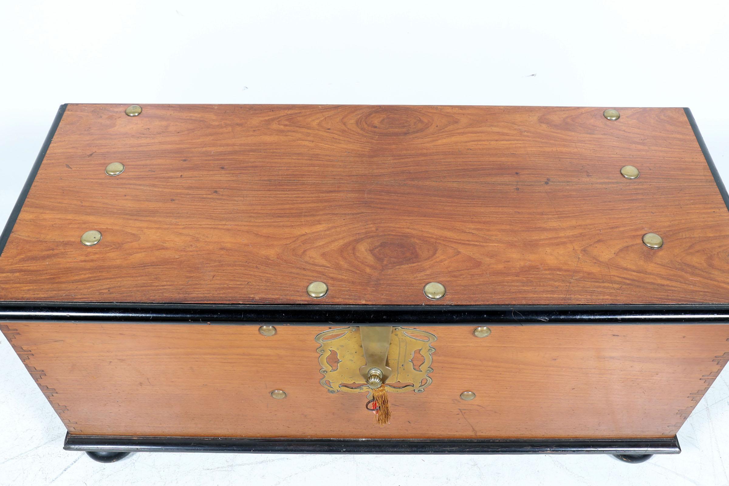 Antieke koloniale teakhouten kist met messing beslag