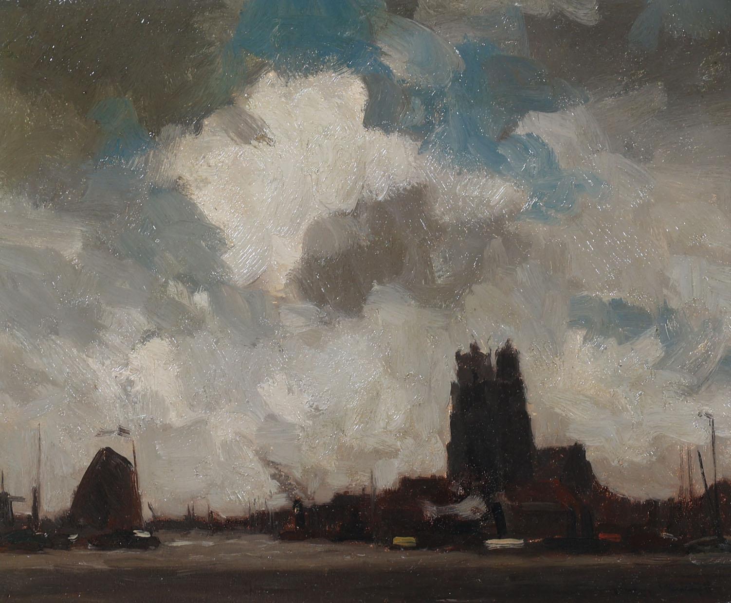 Joop Kropff (1892-1979), Gezicht op Dordrecht, olieverf op paneel, 31,5 x 37 cm.