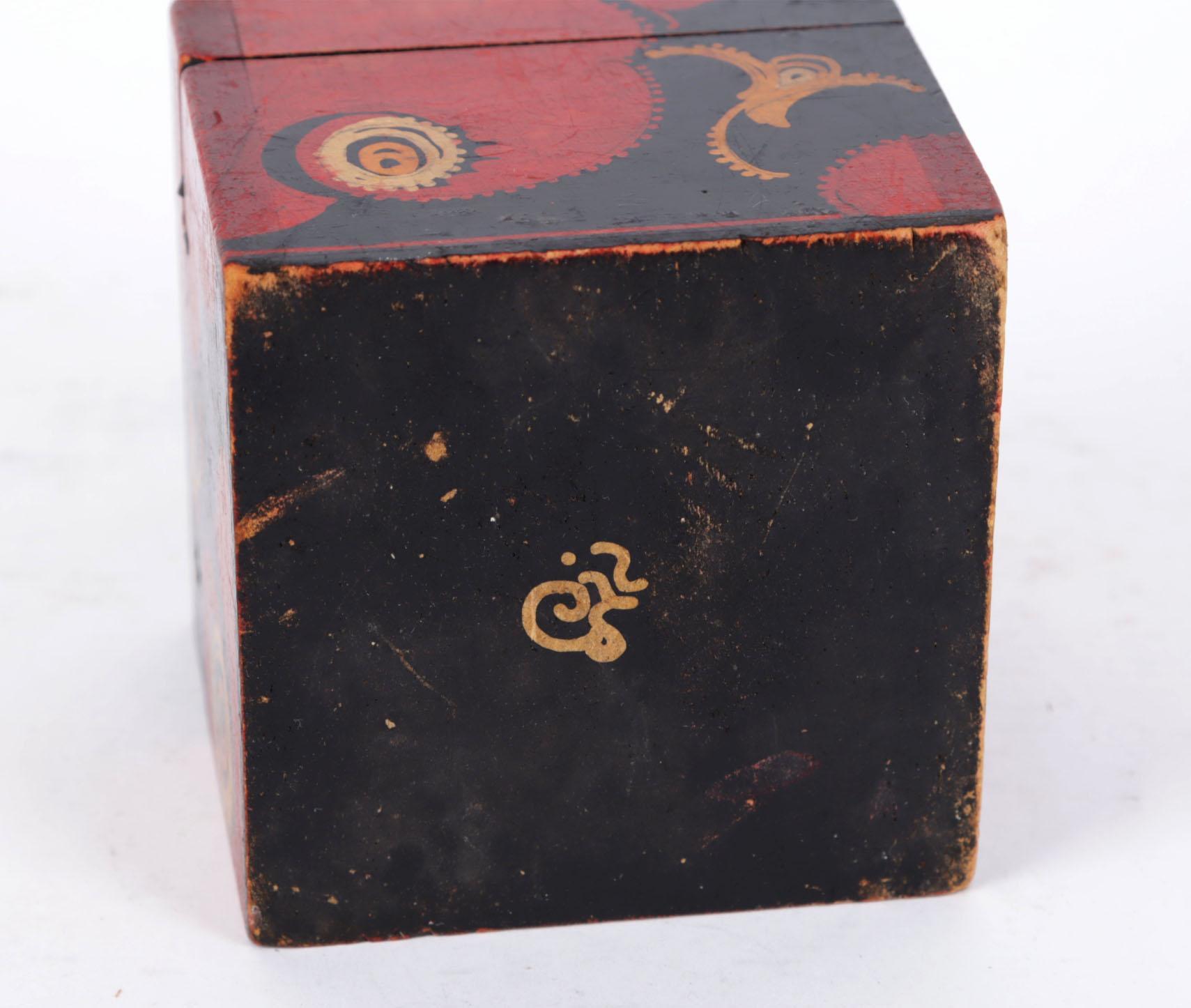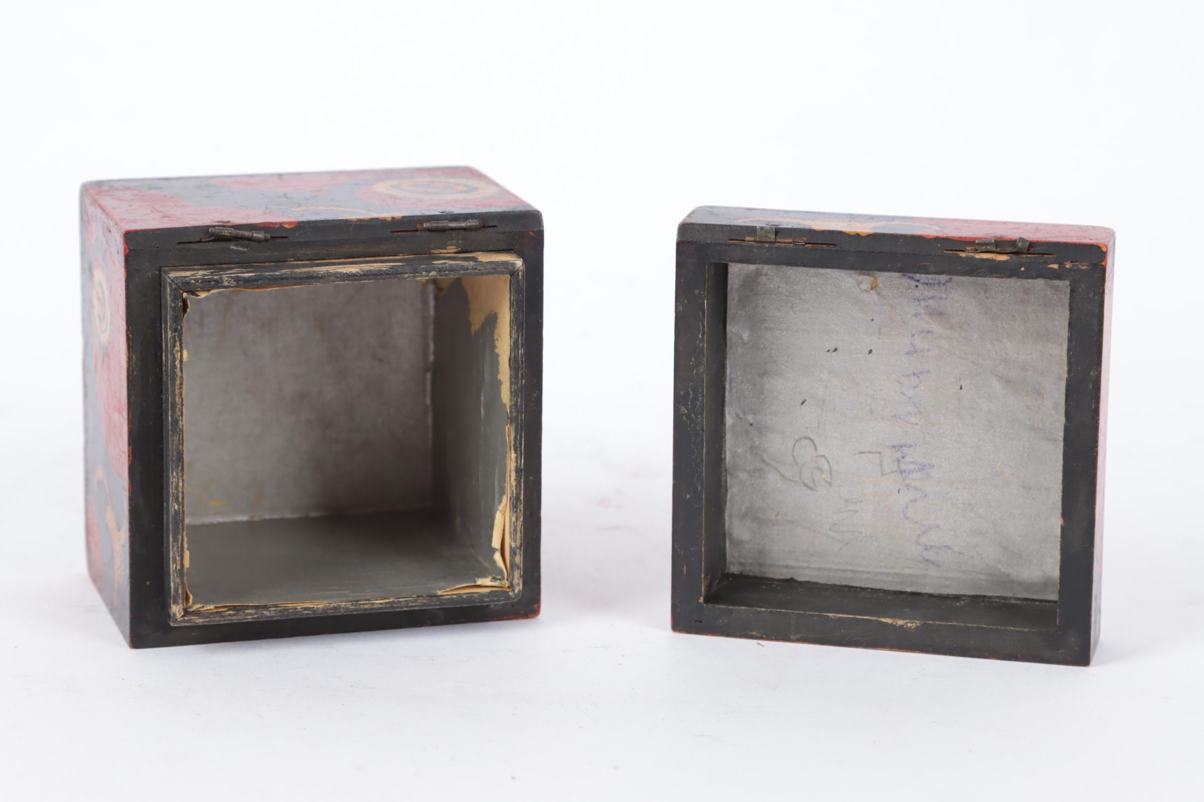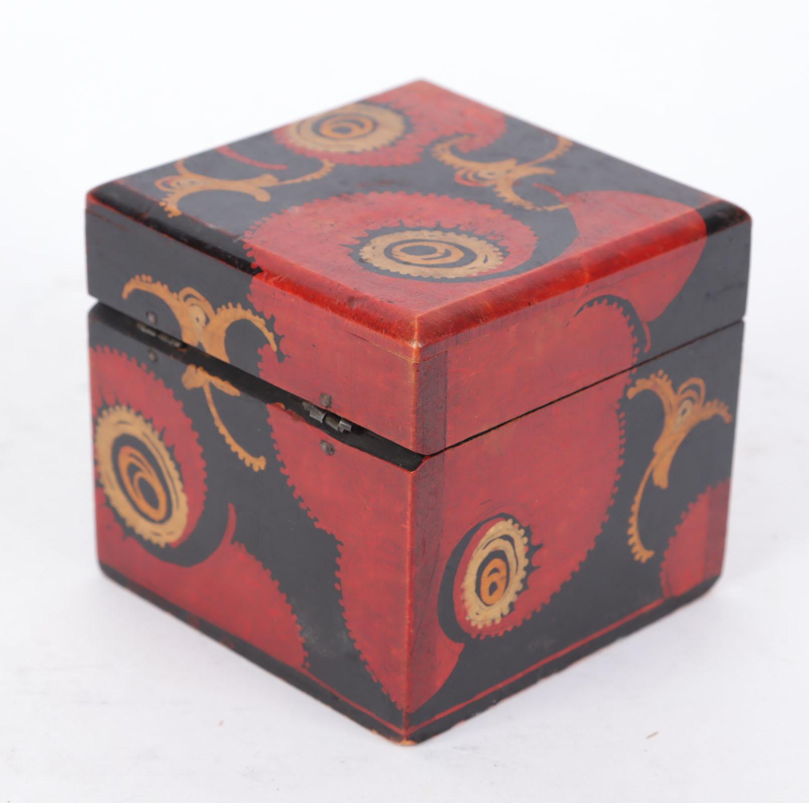 Louis Bogtman (1900-1969), Gebatikt houten doos met Amsterdamse School decoratie, ca.1925, 8 x 8,5 x 8,5 cm., gemerkt onderzijde doos