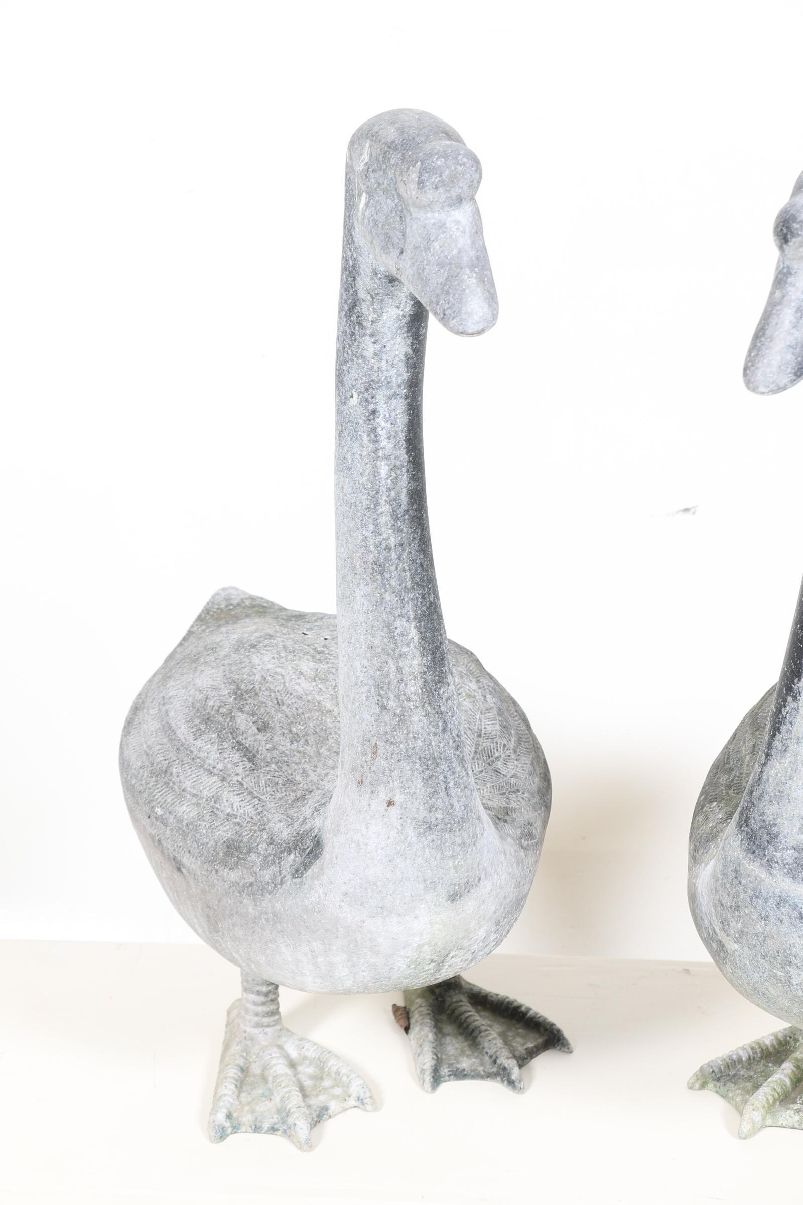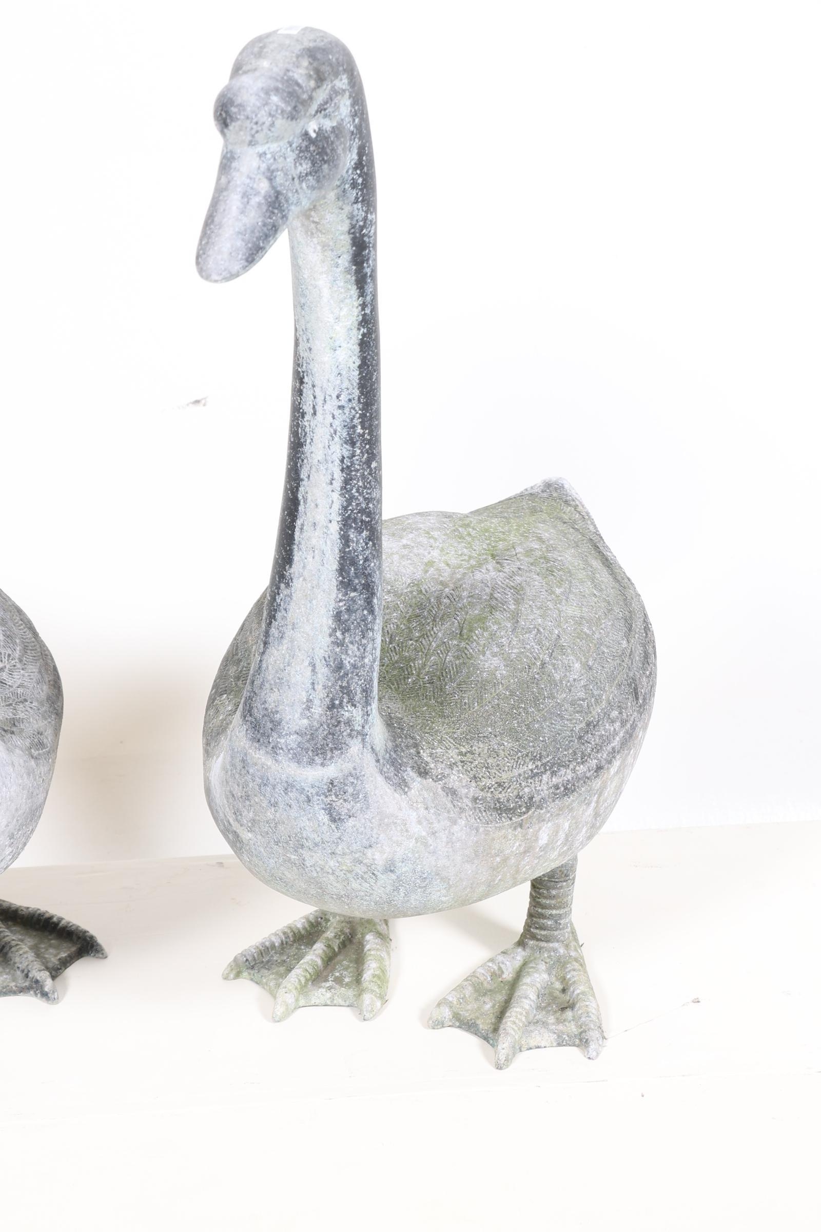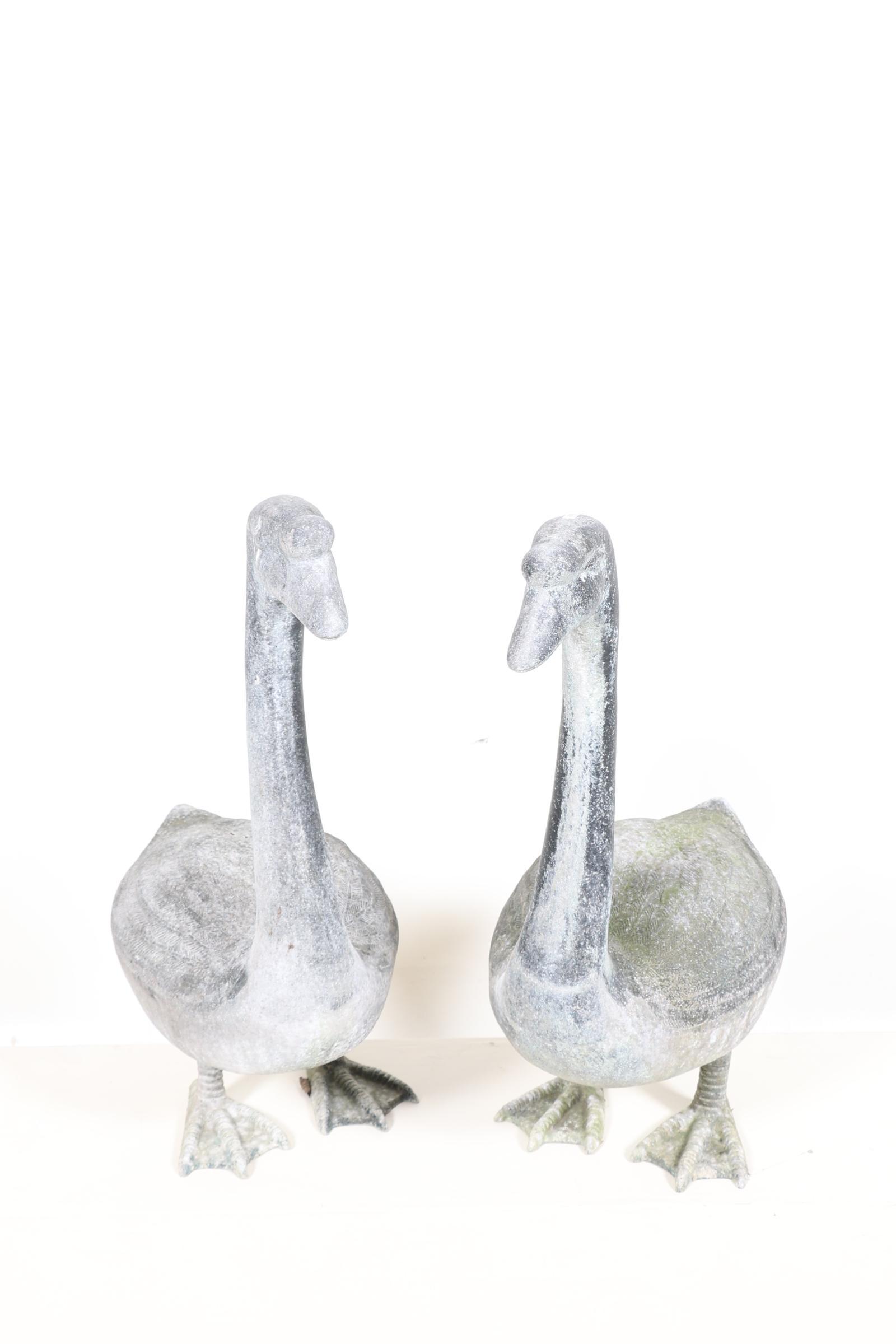 Stel metalen tuinbeelden van ganzen, h.72 cm.