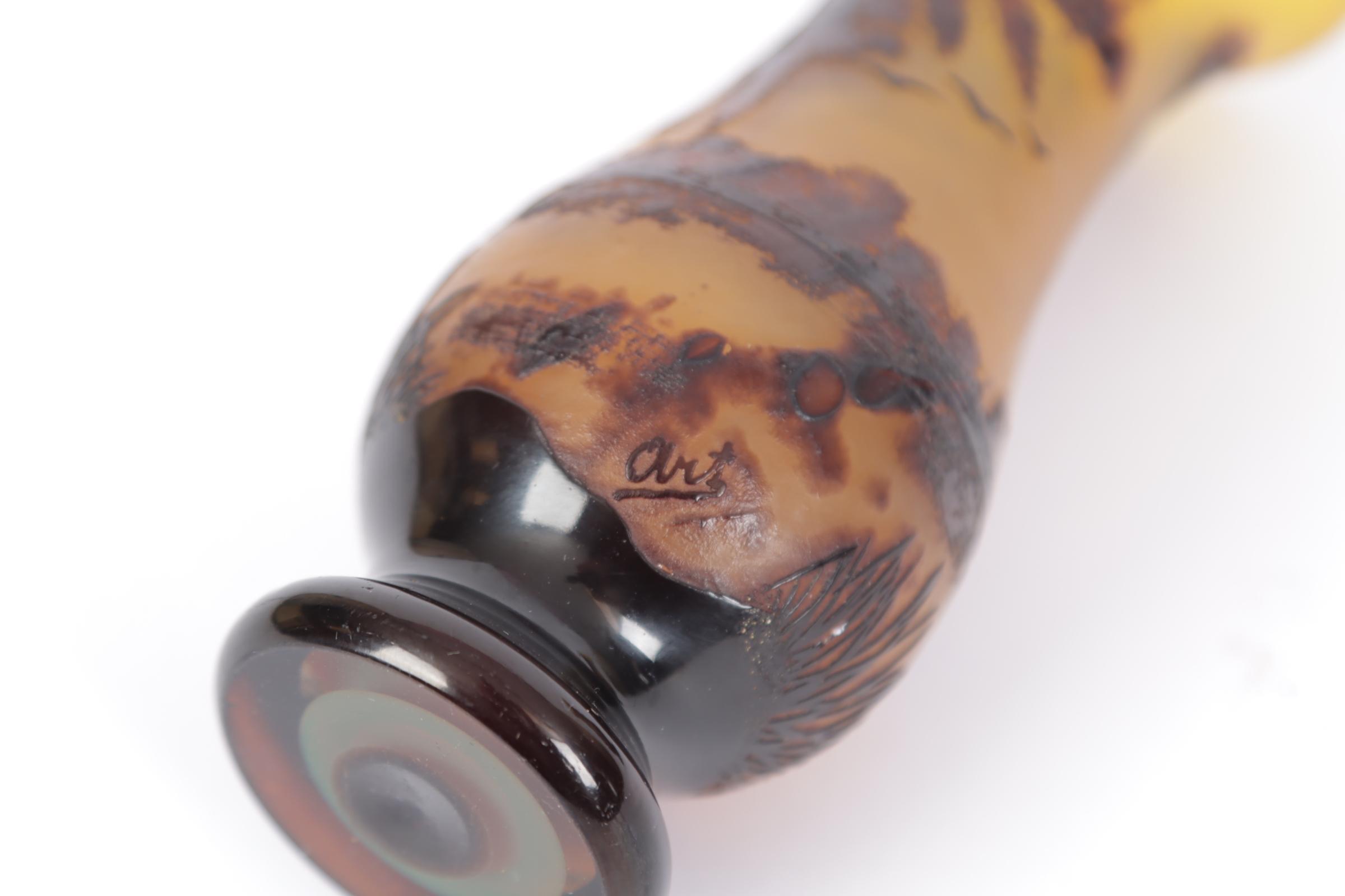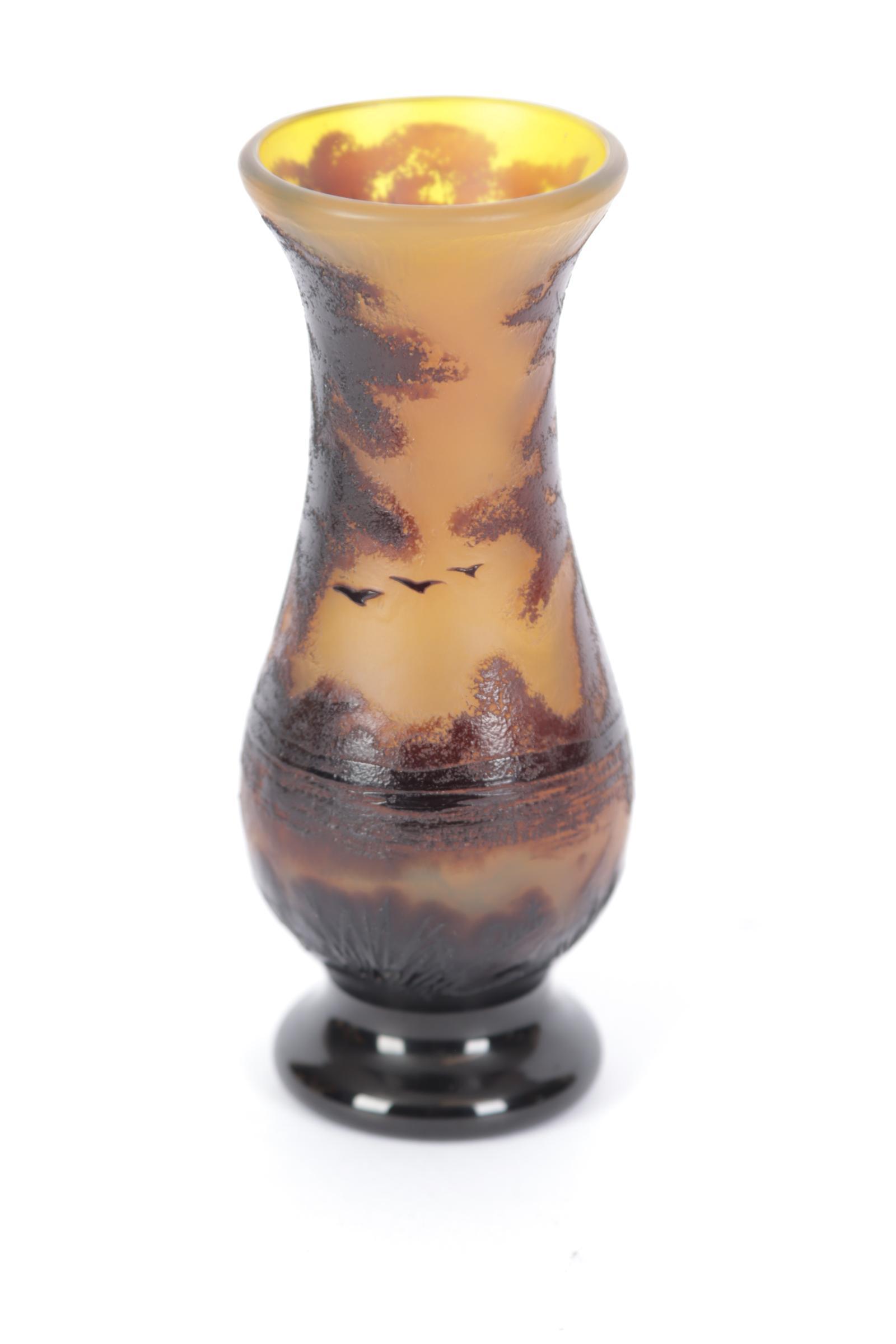Art, twee met landschap gedecoreerde glaspasta vaasjes, h.13 cm.