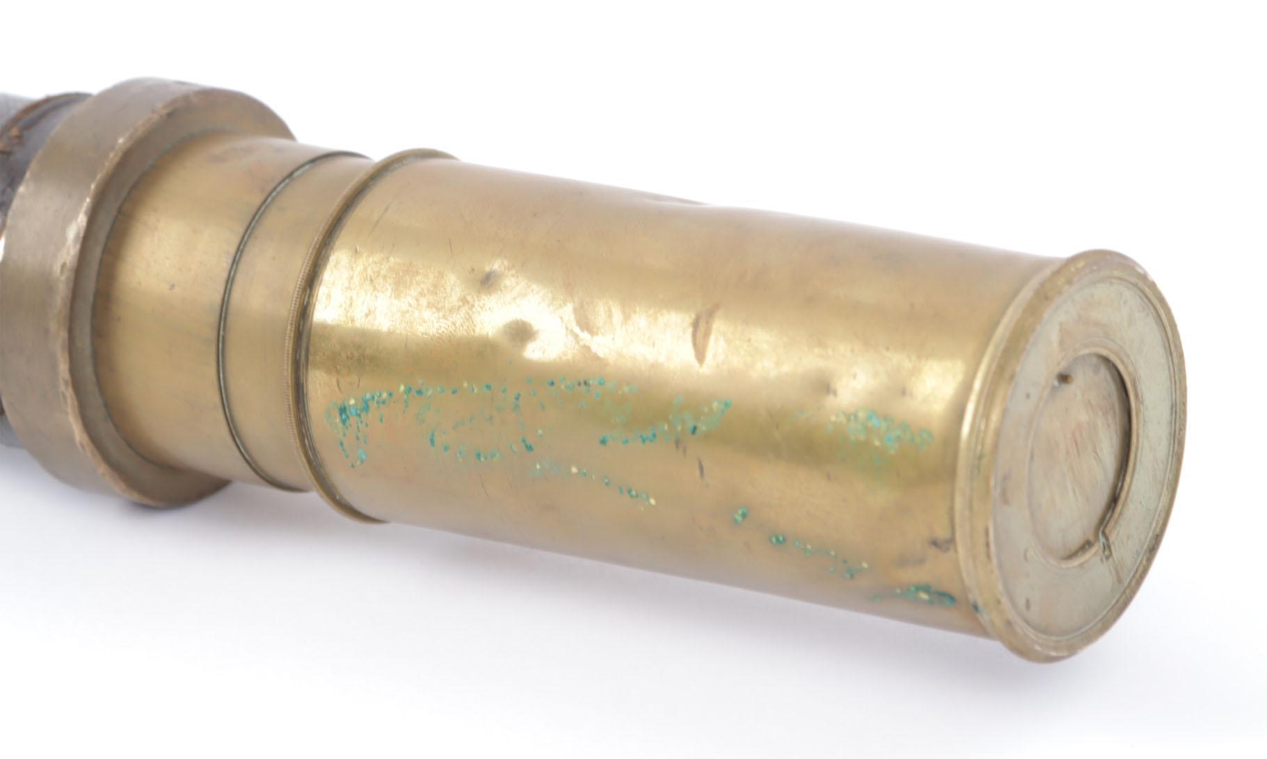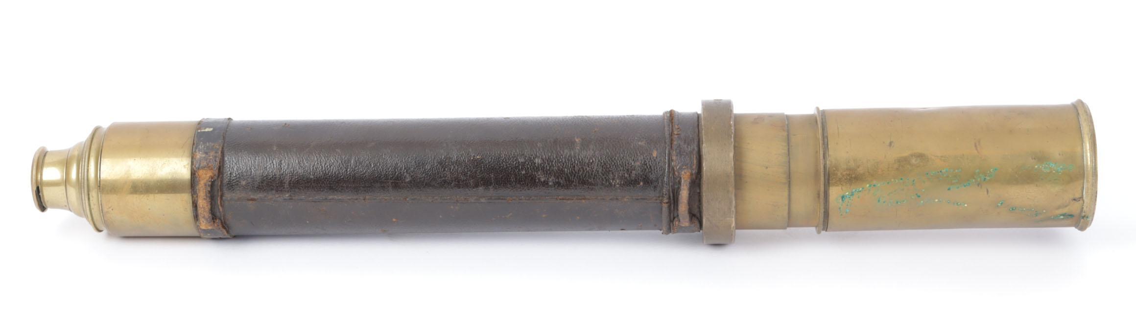 Antieke koperen met leder beklede zeekijker, L.90 cm.