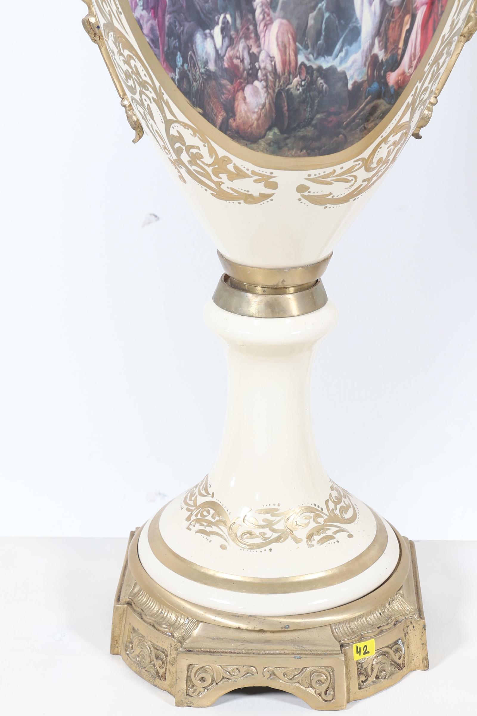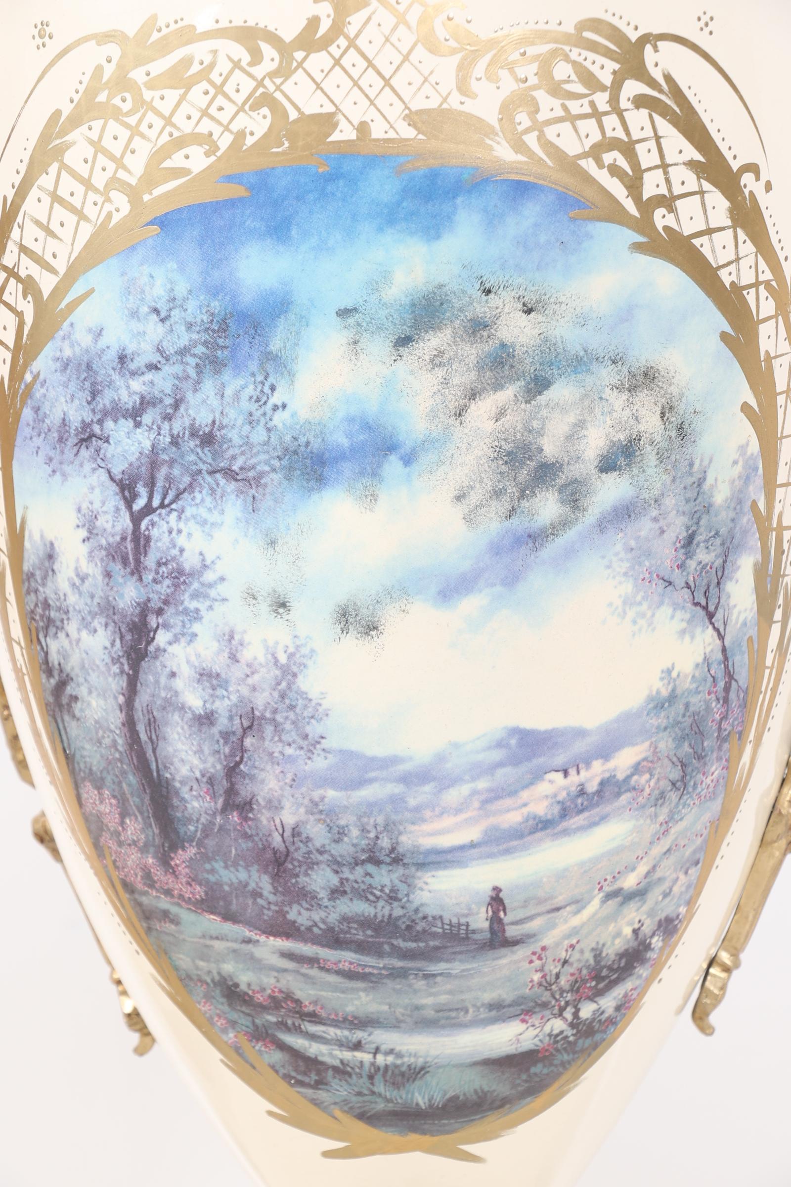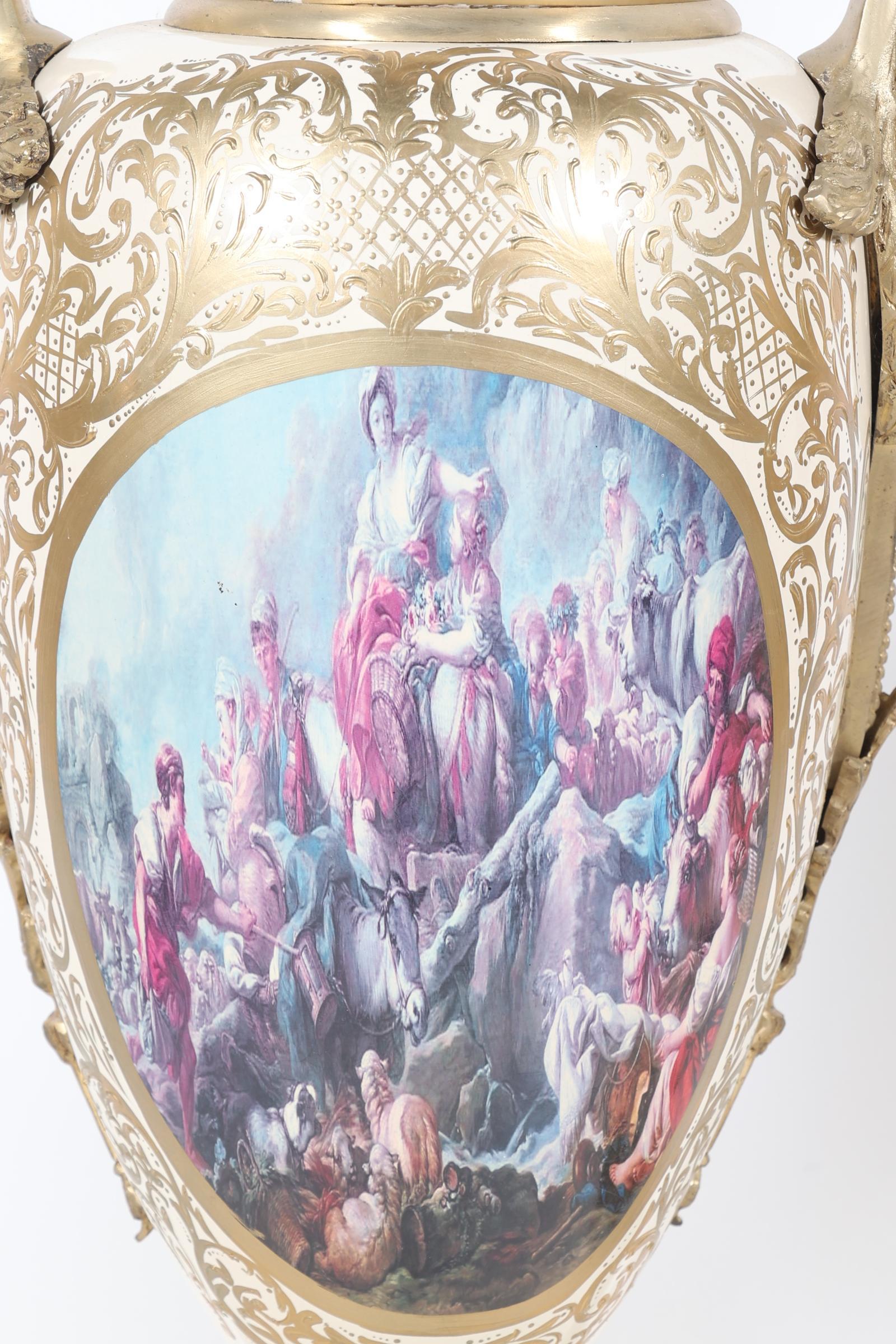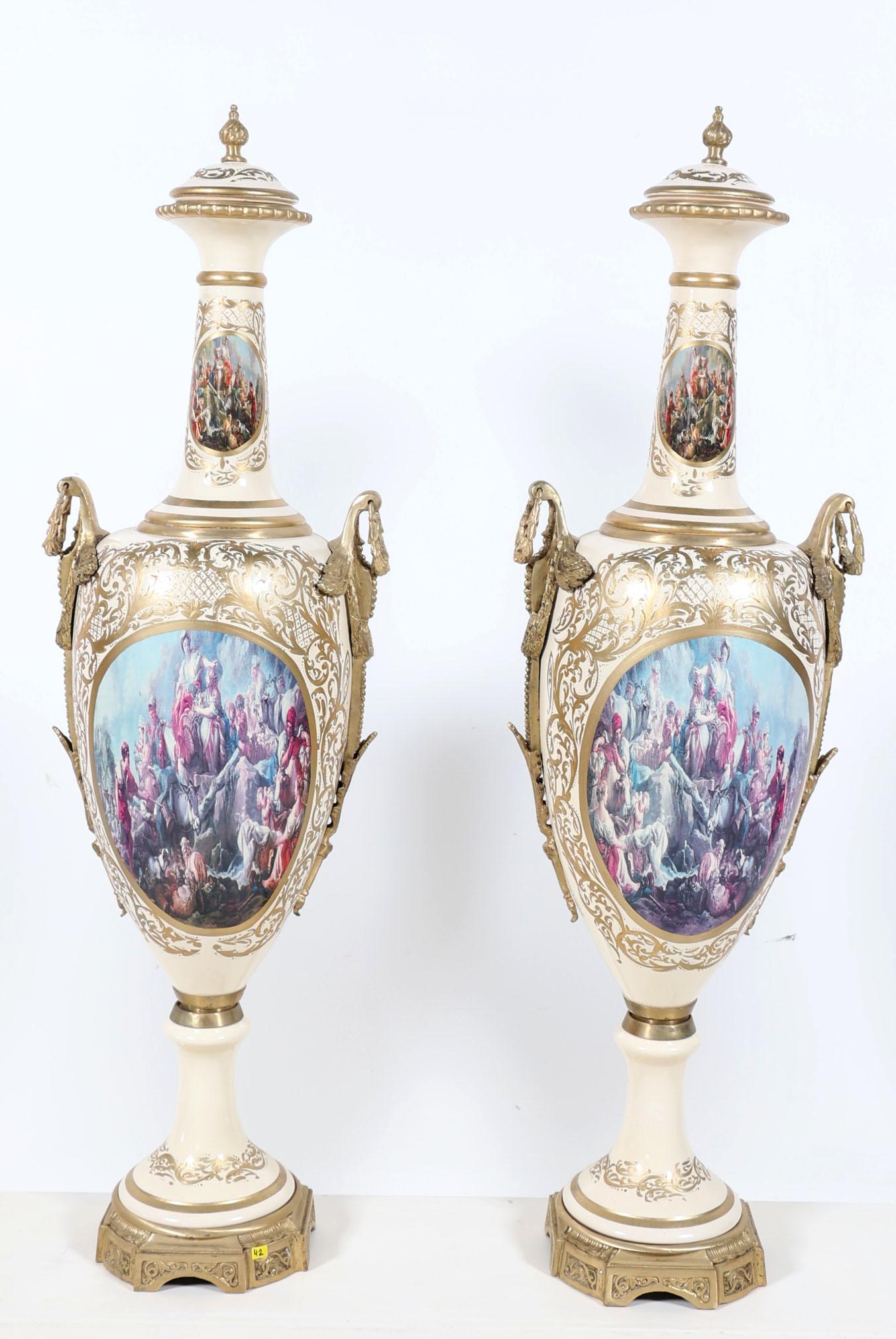 Stel kasteelvazen met bronzen beslag, h.123 cm.