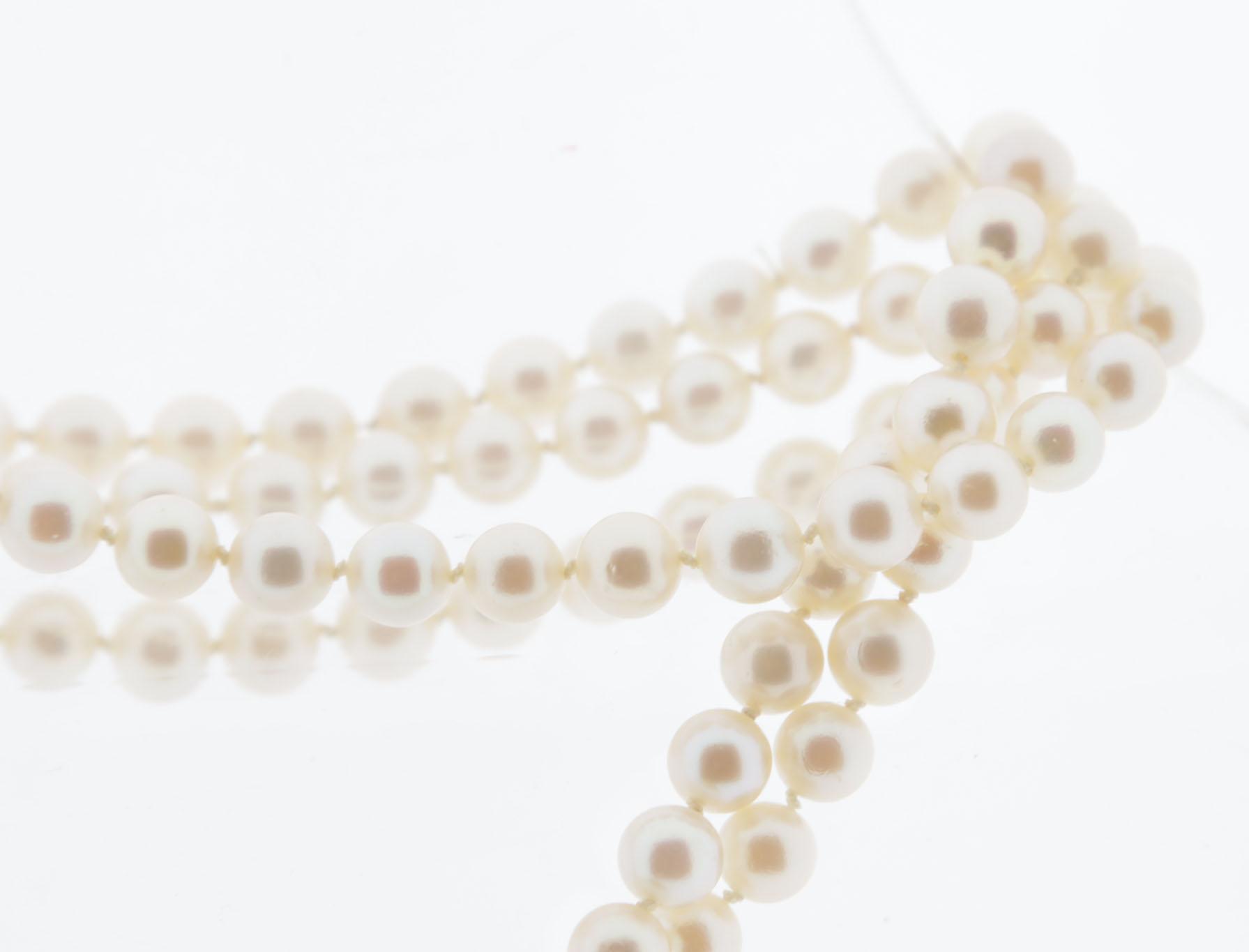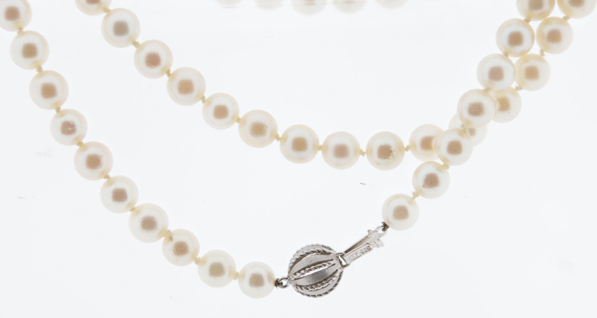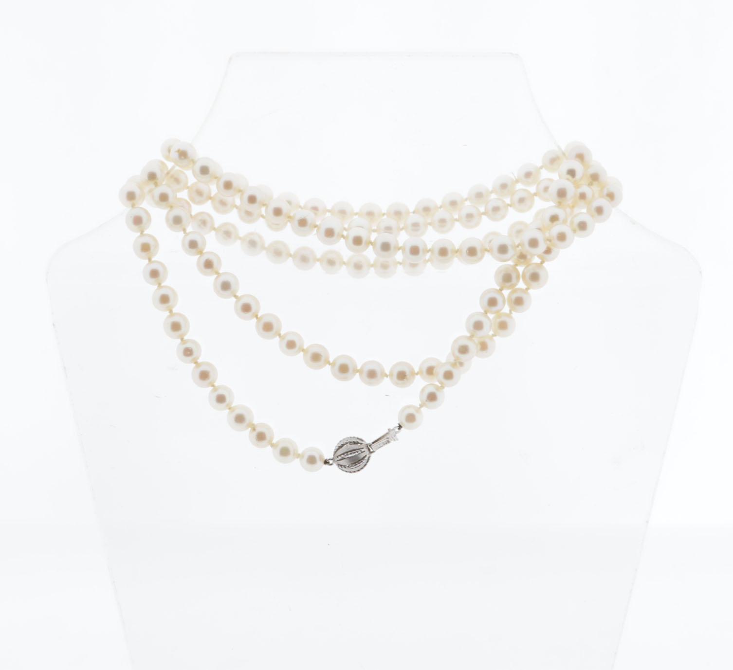 Natuurlijke parelcollier met zilveren slot, L.93 cm.