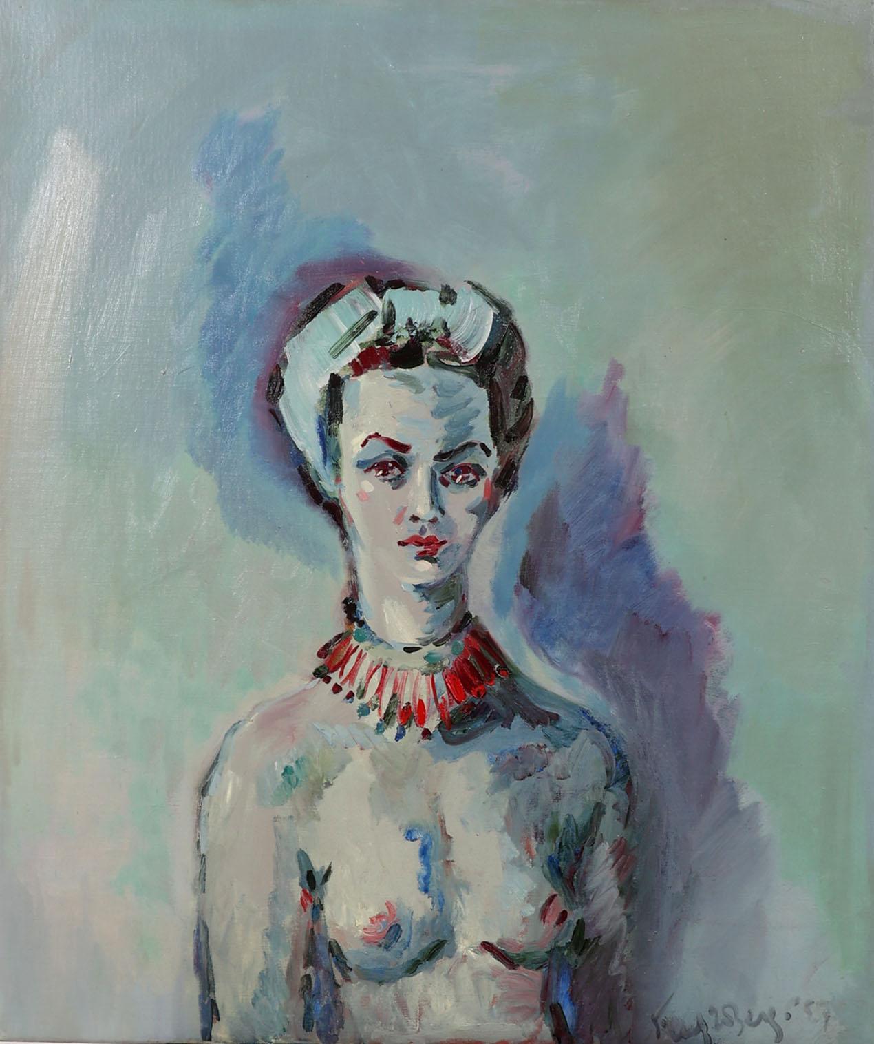 Freek van den Berg (1918-2000), Portret van een naakte dame, olieverf op doek, gedateerd 1957, 95,5 x 80 cm.