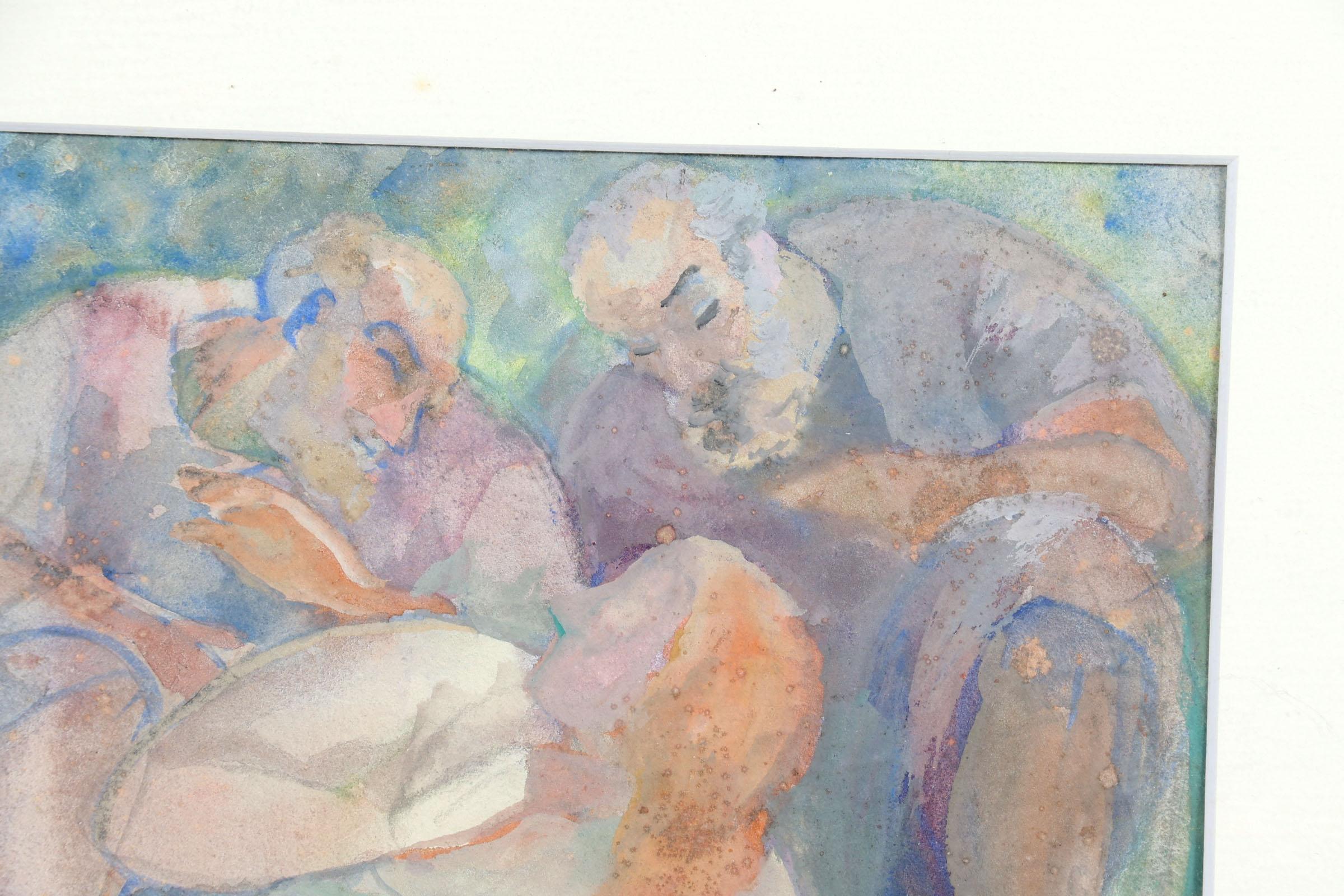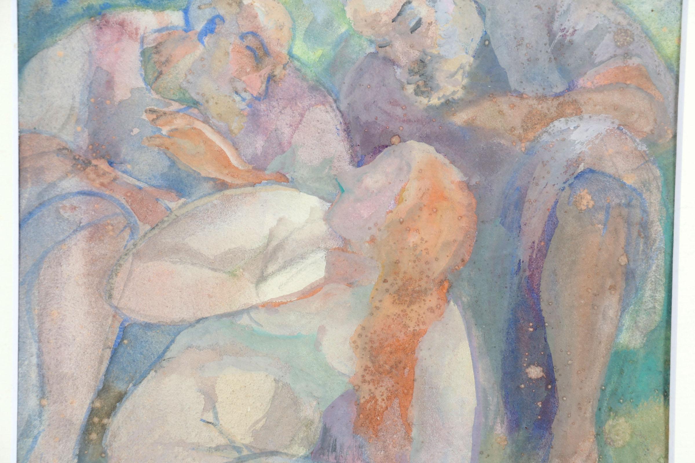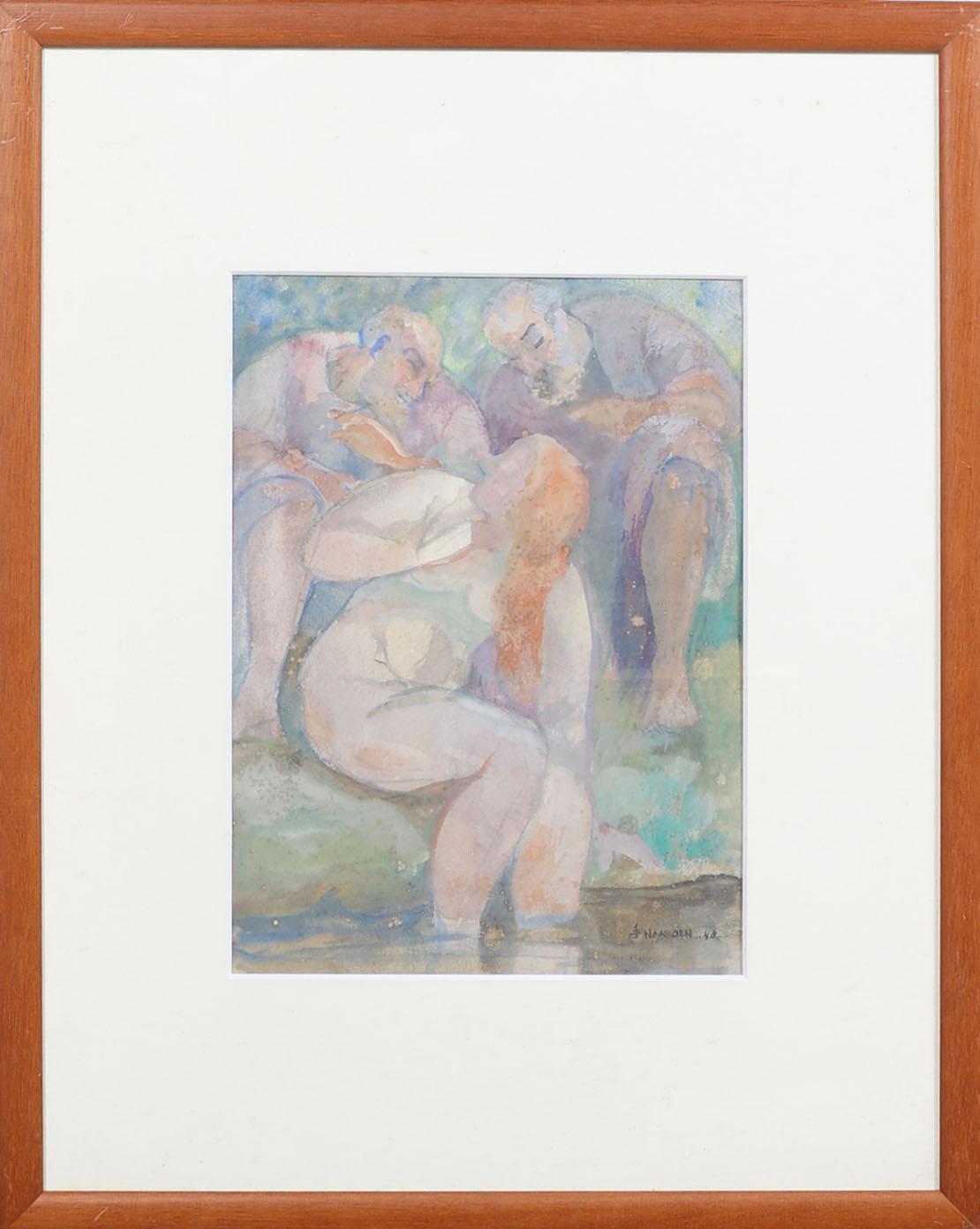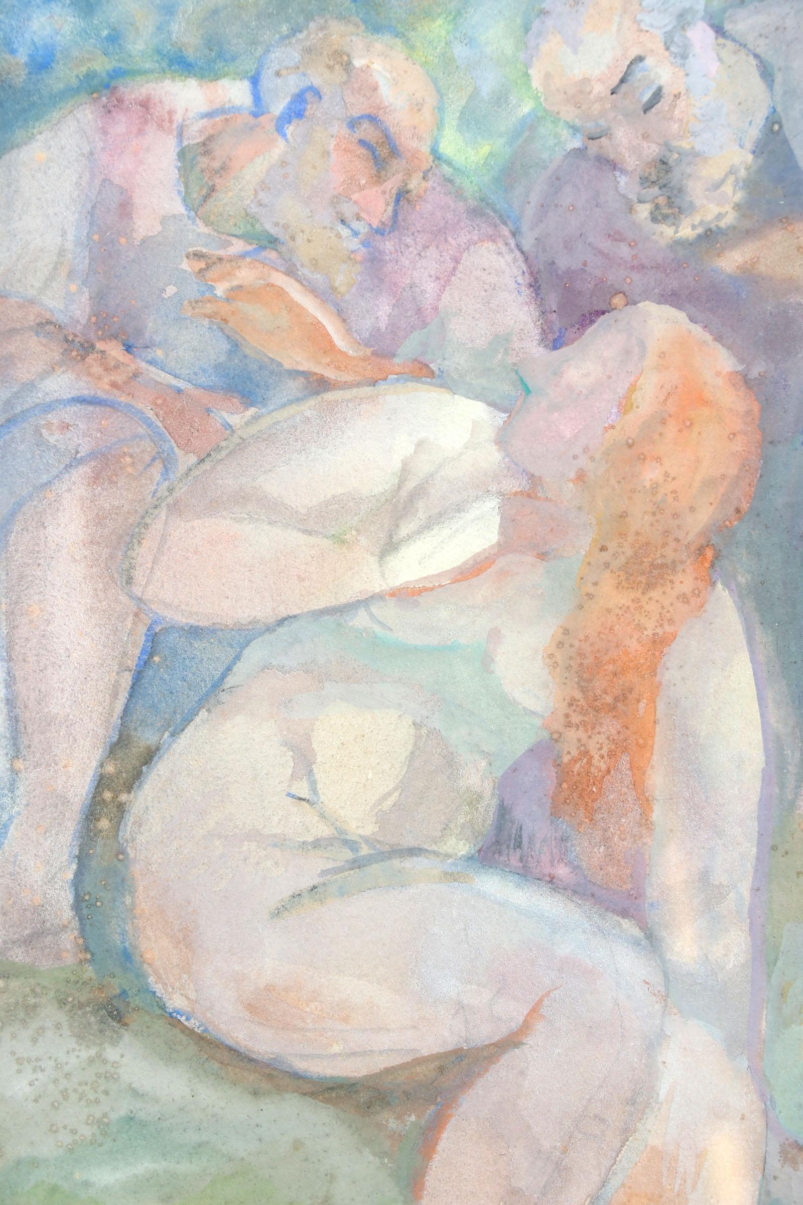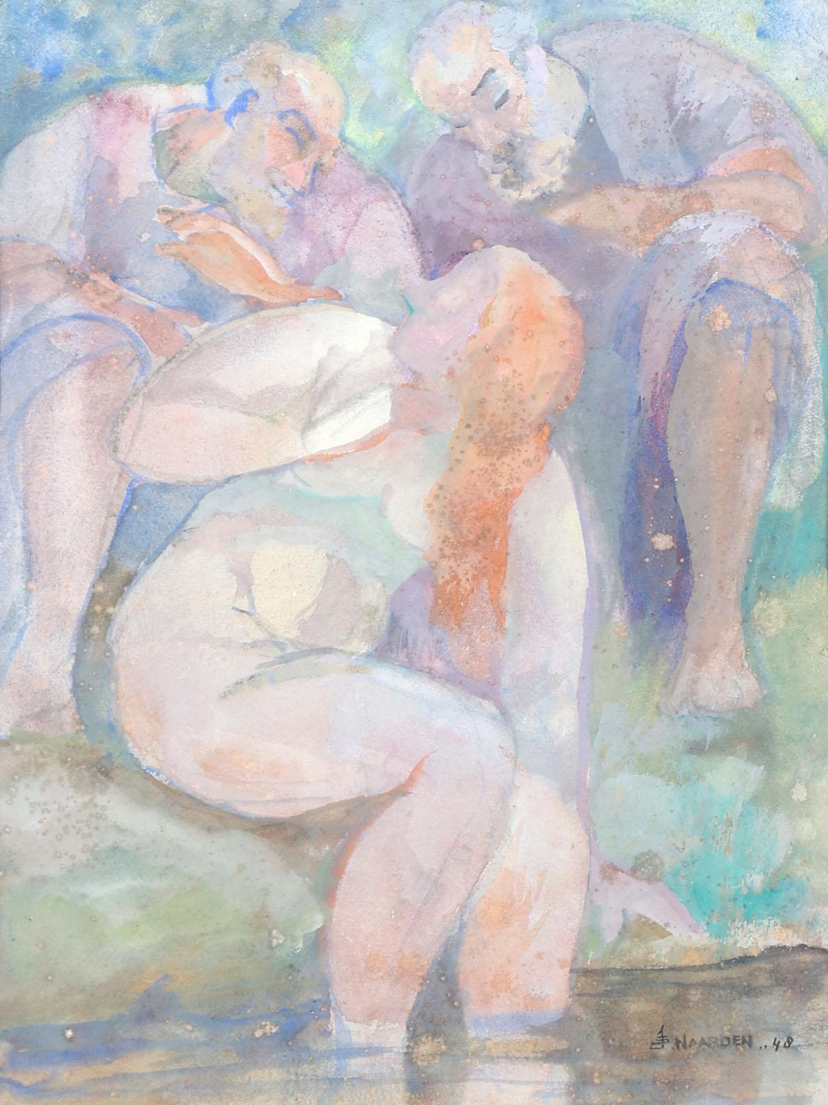 Isaac Naarden (1902-1982), Personen aan het water, gouache op papier, gedateerd 1948, 30 x 22 cm.