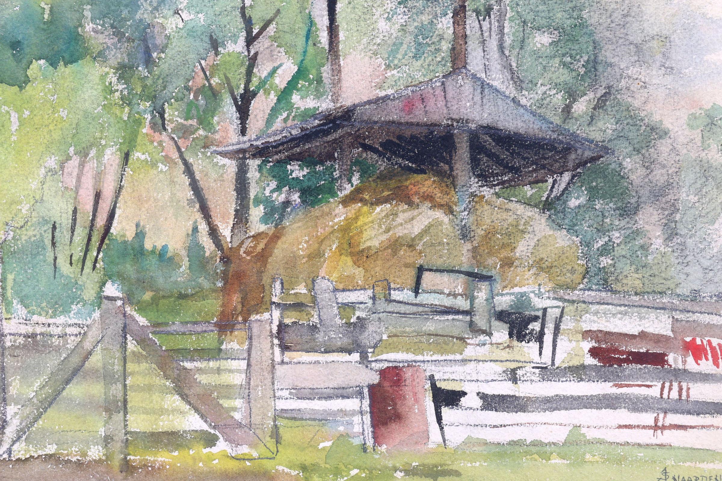 Isaac Naarden (1902-1982), Hooiberg onder afdak, aquarel op papier, 26,5 x 37,5 cm.