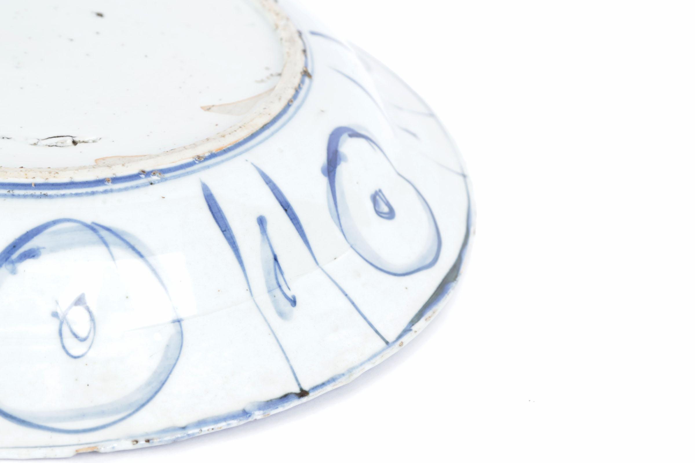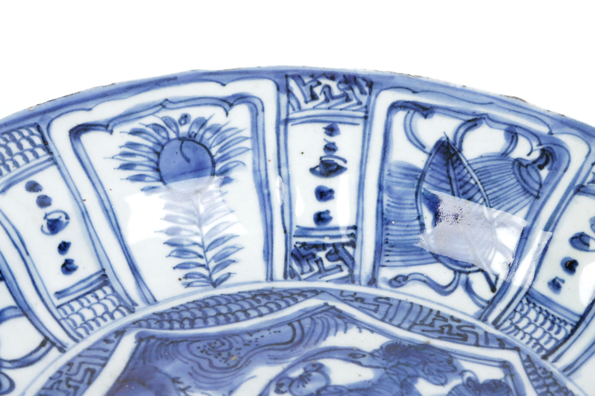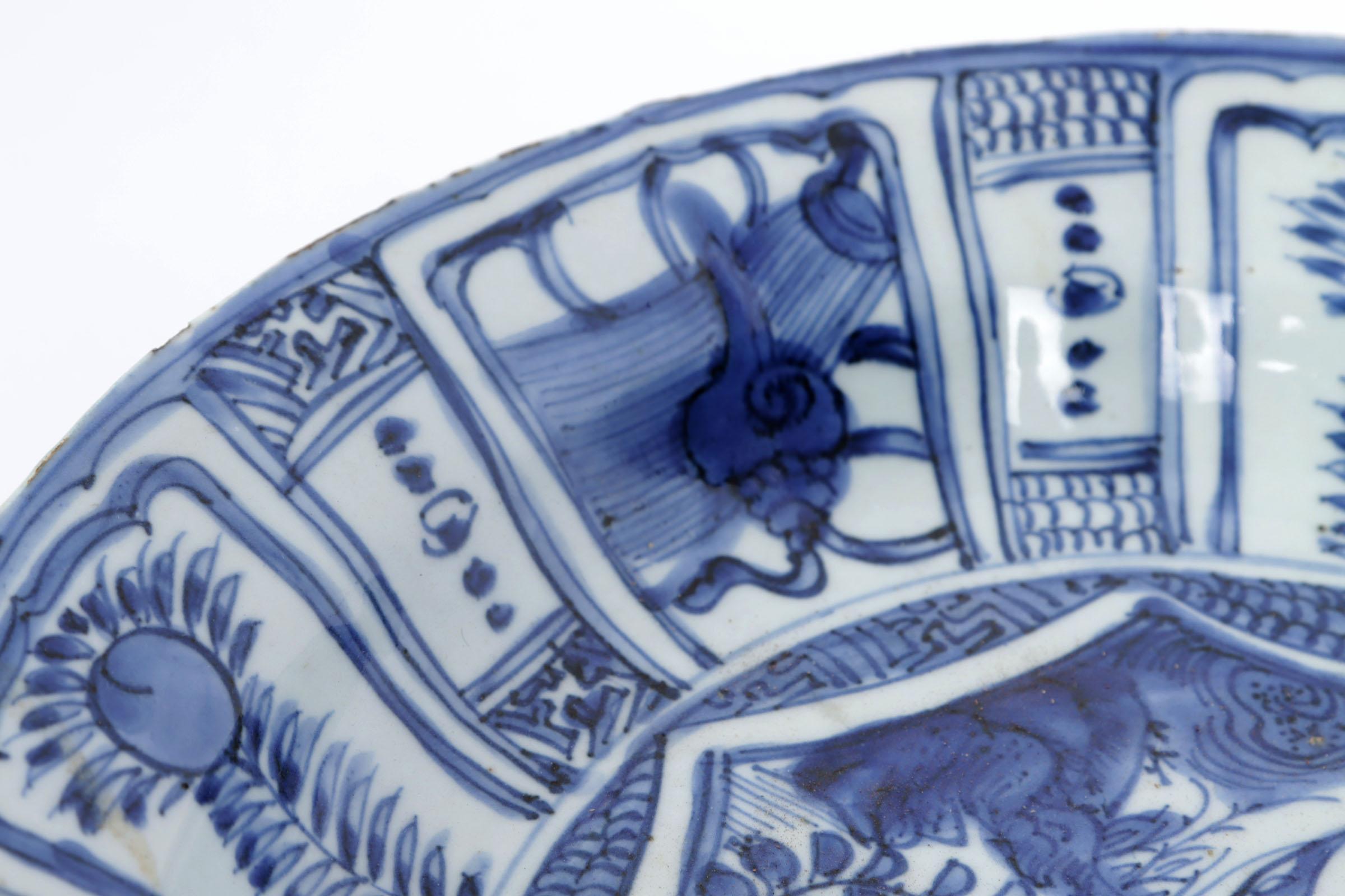 Antieke blauw/wit Chinees porseleinen Wanli (1573-1619) schotel met decoratie van vogels en florale motieven, diam. 32 cm.