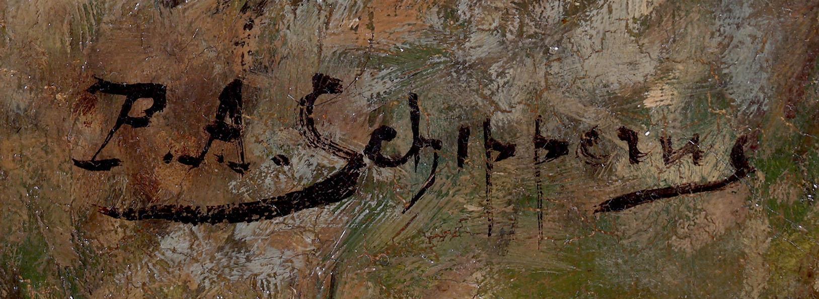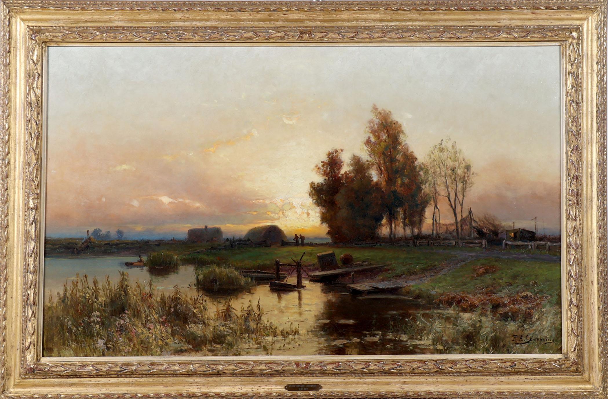 Pieter Adriaan C. Schipperus (1840-1929), Landschap langs het water, olieverf op doek, 70 x 120 cm.