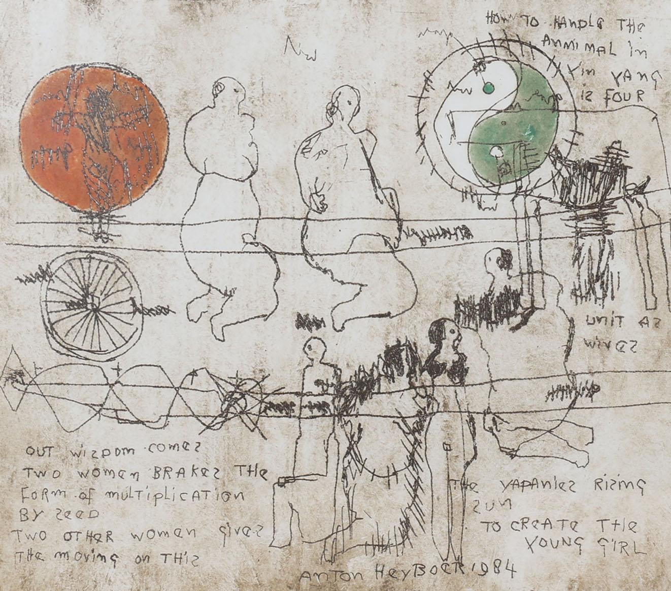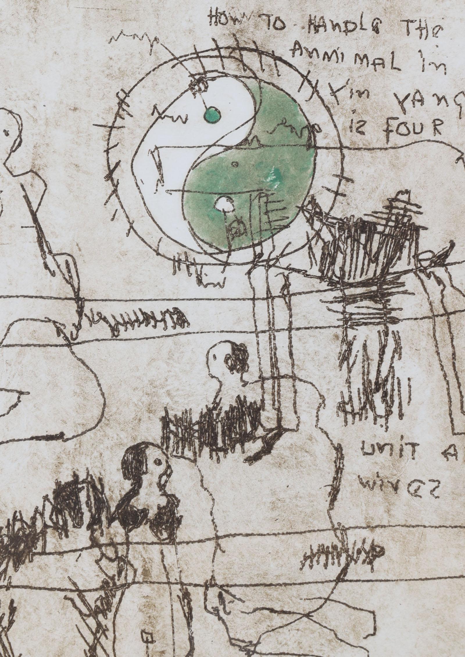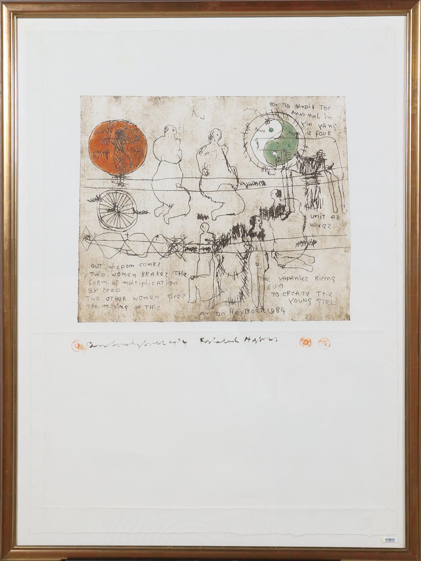 Anton Heijboer (1924-2005), "How to handle the animal in Yinjang is four", kleurenets, 108 x 78 cm., gedrukt door Anton Heijboer in 1984, provenance particuliere collectie : aangekocht in 2000 voor fl.7000, Anton Heijboer winkel op de Prinsengracht 578 te Amsterdam