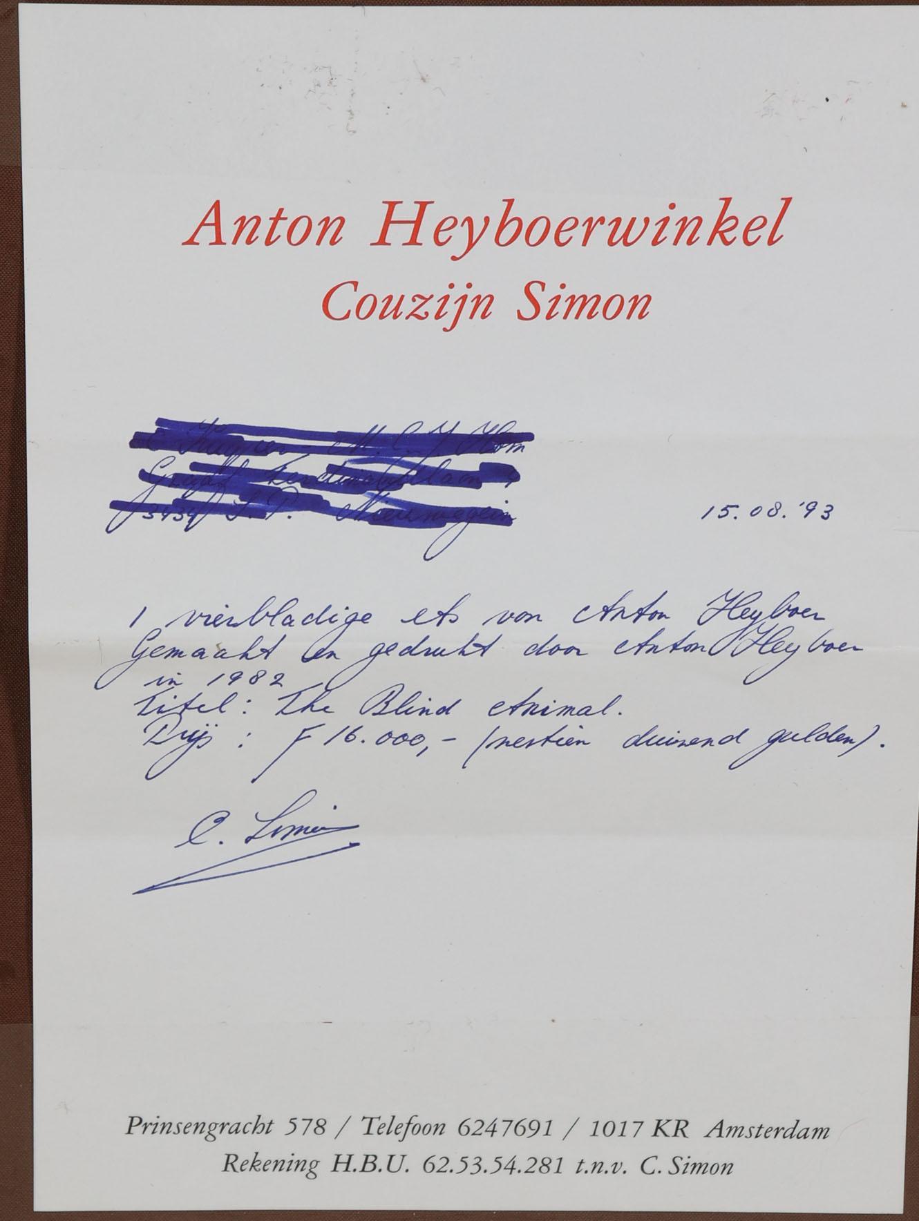 Anton Heijboer (1924-2005), The Blind Animal, 1,2 en 3, 3 etsen, 109 x 78 cm., gedrukt door Anton Heijboer in 1982, provenance particuliere collectie aangekocht in 1993 voor fl.16.000, Anton Heijboer winkel op de Prinsengracht 578 te Amsterdam