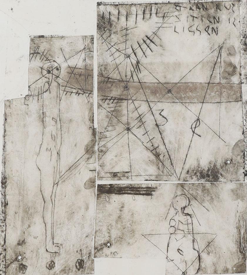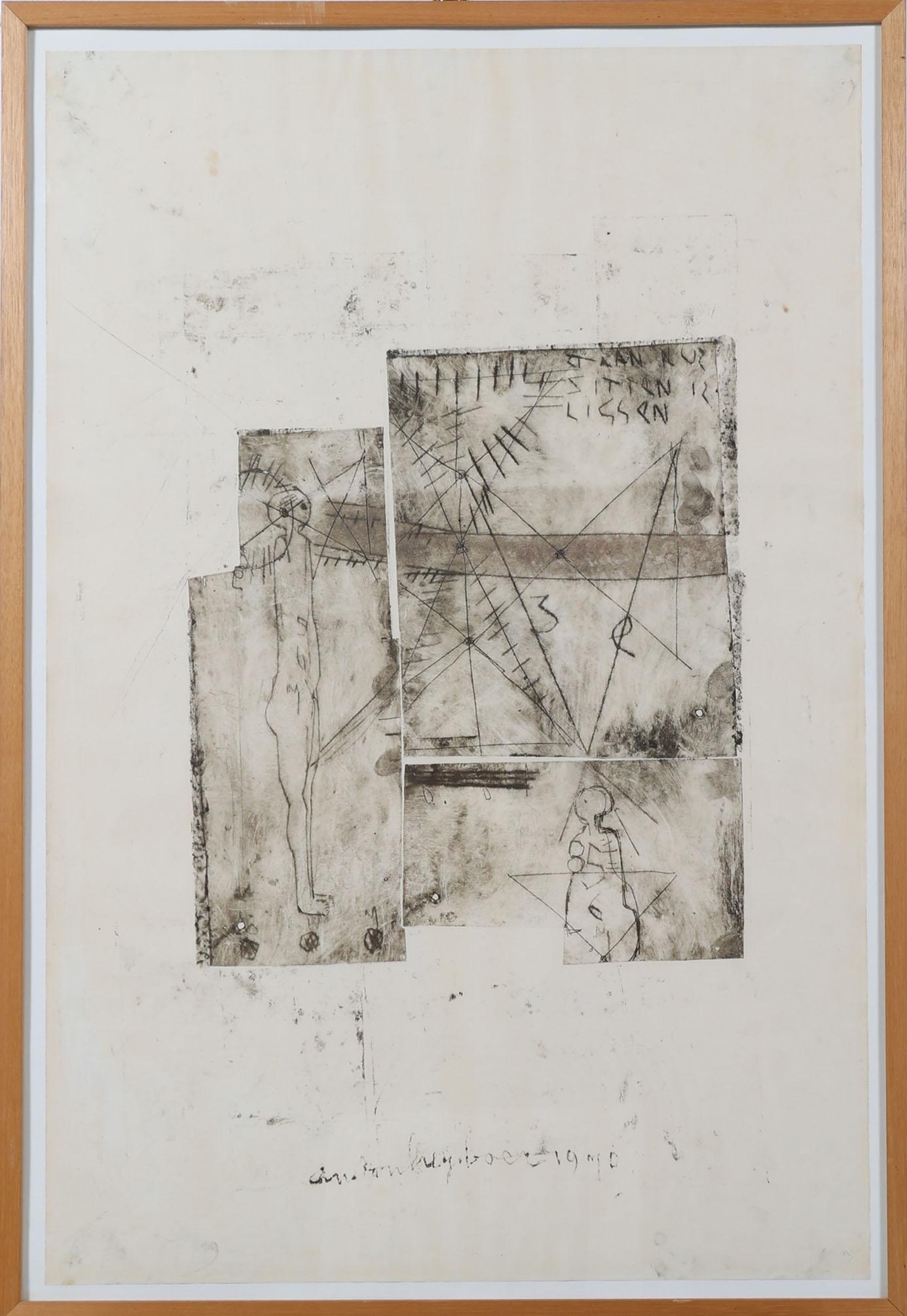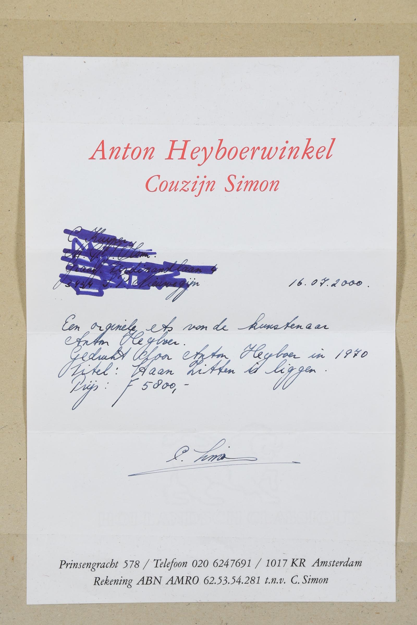 Anton Heijboer (1924-2005), "Staan, zitten is liggen", ets, 100 x 66 cm., gedrukt door Anton Heijboer in 1970, provenance particuliere collectie : aangeschaft in 2000 voor fl 5800, Anton Heijboer winkel op de Prinsengracht 578 te Amsterdam