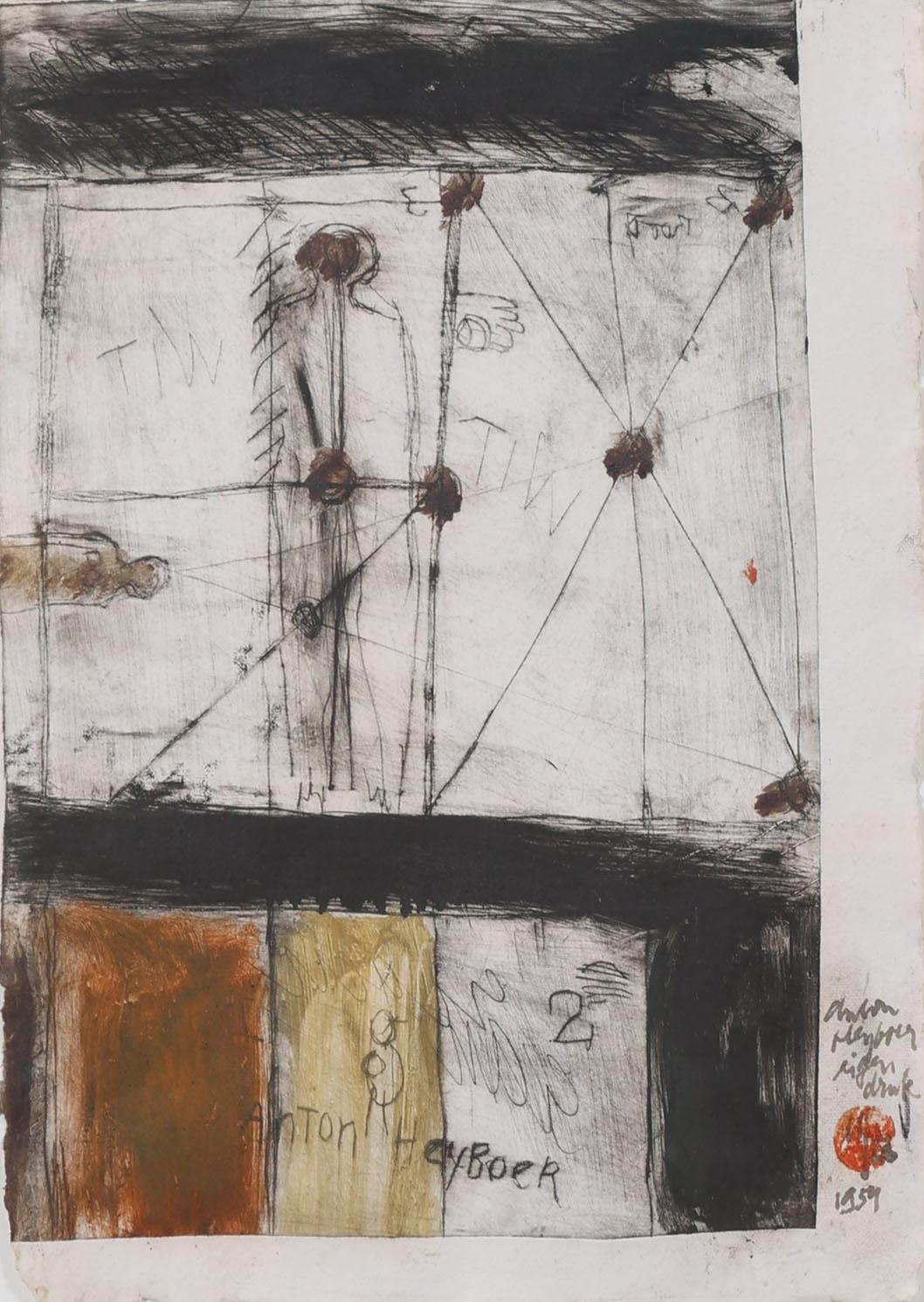 Anton Heijboer (1924-2005), Zonder titel, kleurenets, geëtst en gedrukt 1957, nr.11/12, 43 x 30 cm., provenance particuliere collectie : aangeschaft in 2005 voor € 6000/erven van Joost Lonten, Anton Heijboer winkel op de Prinsengracht 578 te Amsterdam