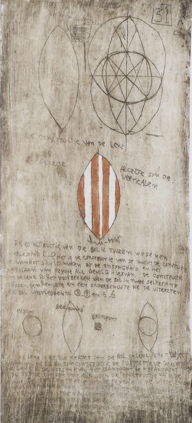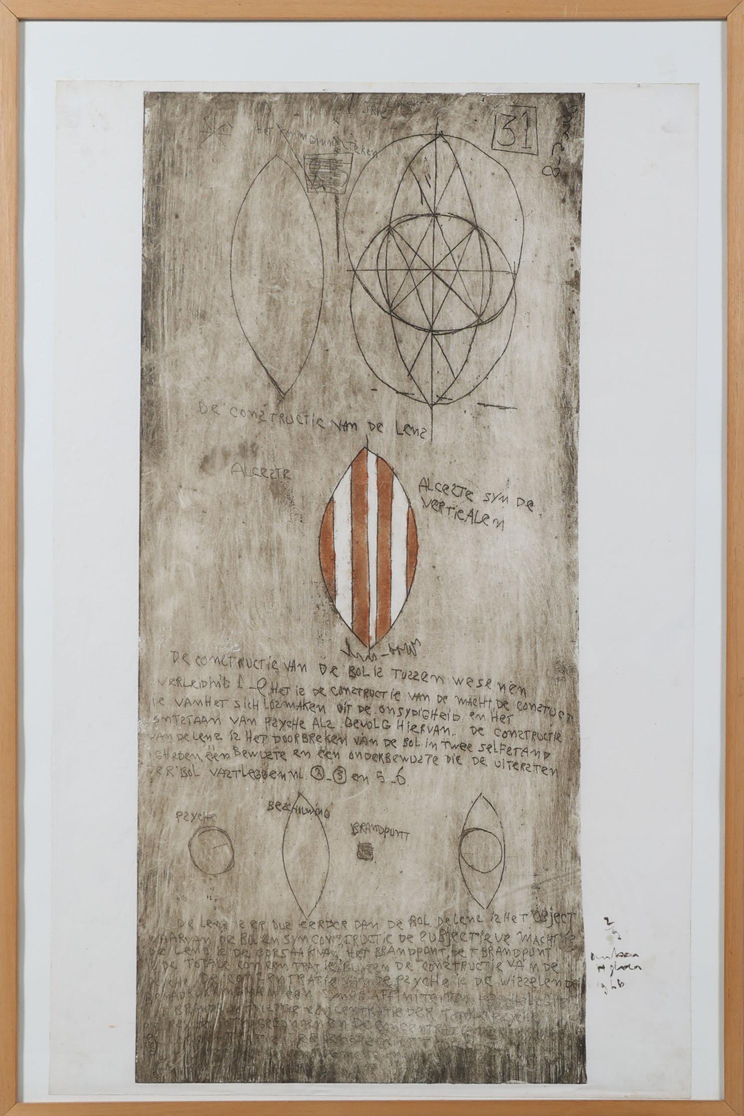 Anton Heijboer (1924-2005), "De constructie van de lens", handgesigneerde ets, 101 x 65 cm., nr.2/9, gedateerd 1966, provenance particuliere collectie : Anton Heijboer winkel op de Prinsengracht 578 te Amsterdam