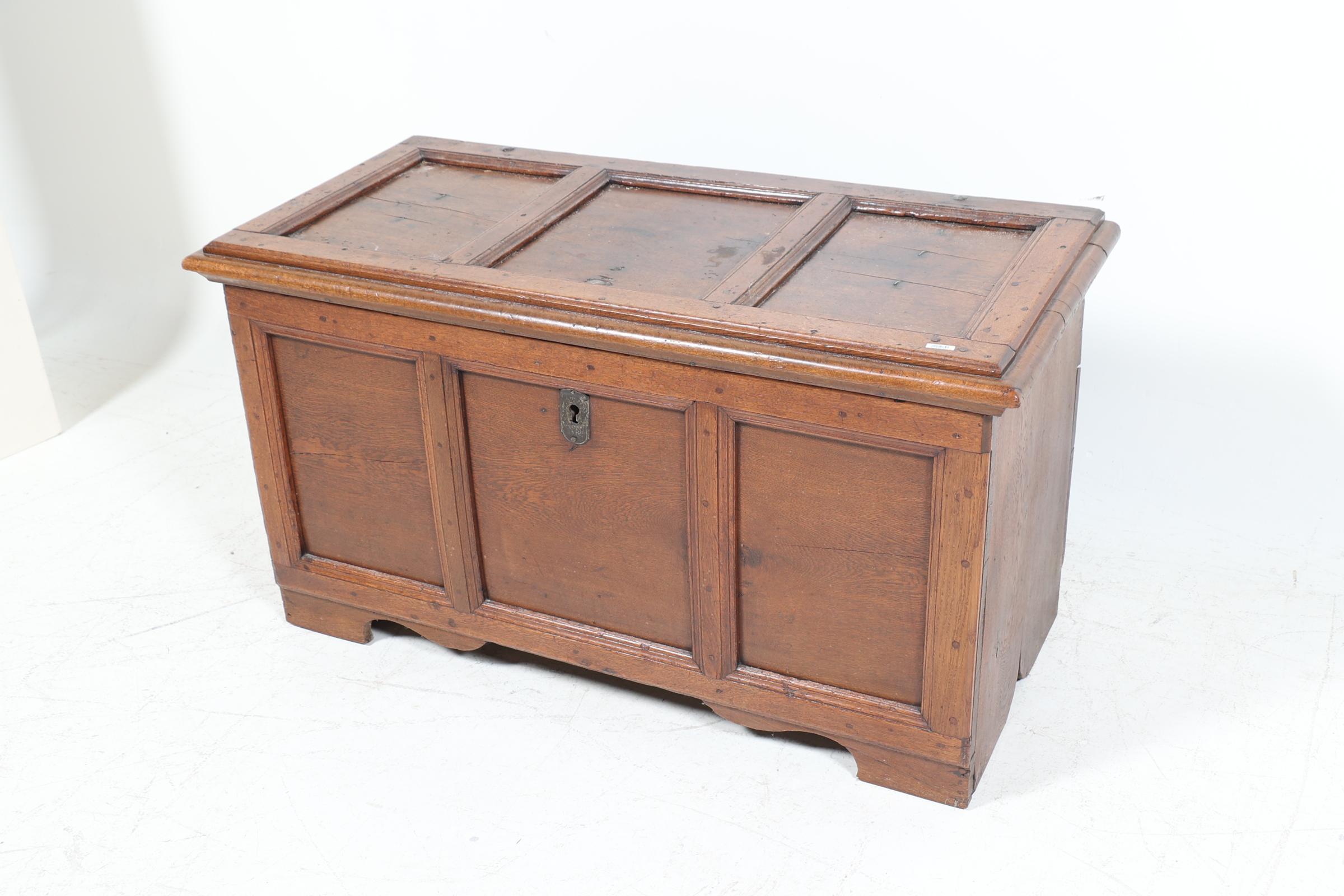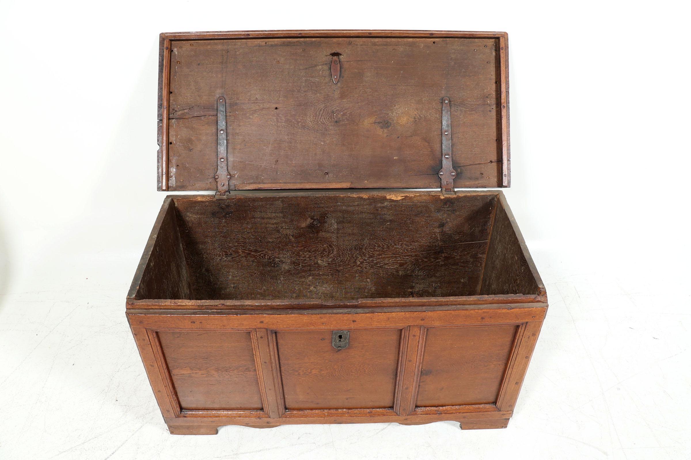 Antieke eikenhouten panelen/dekenkist, h.65 x 119 x 54 cm.