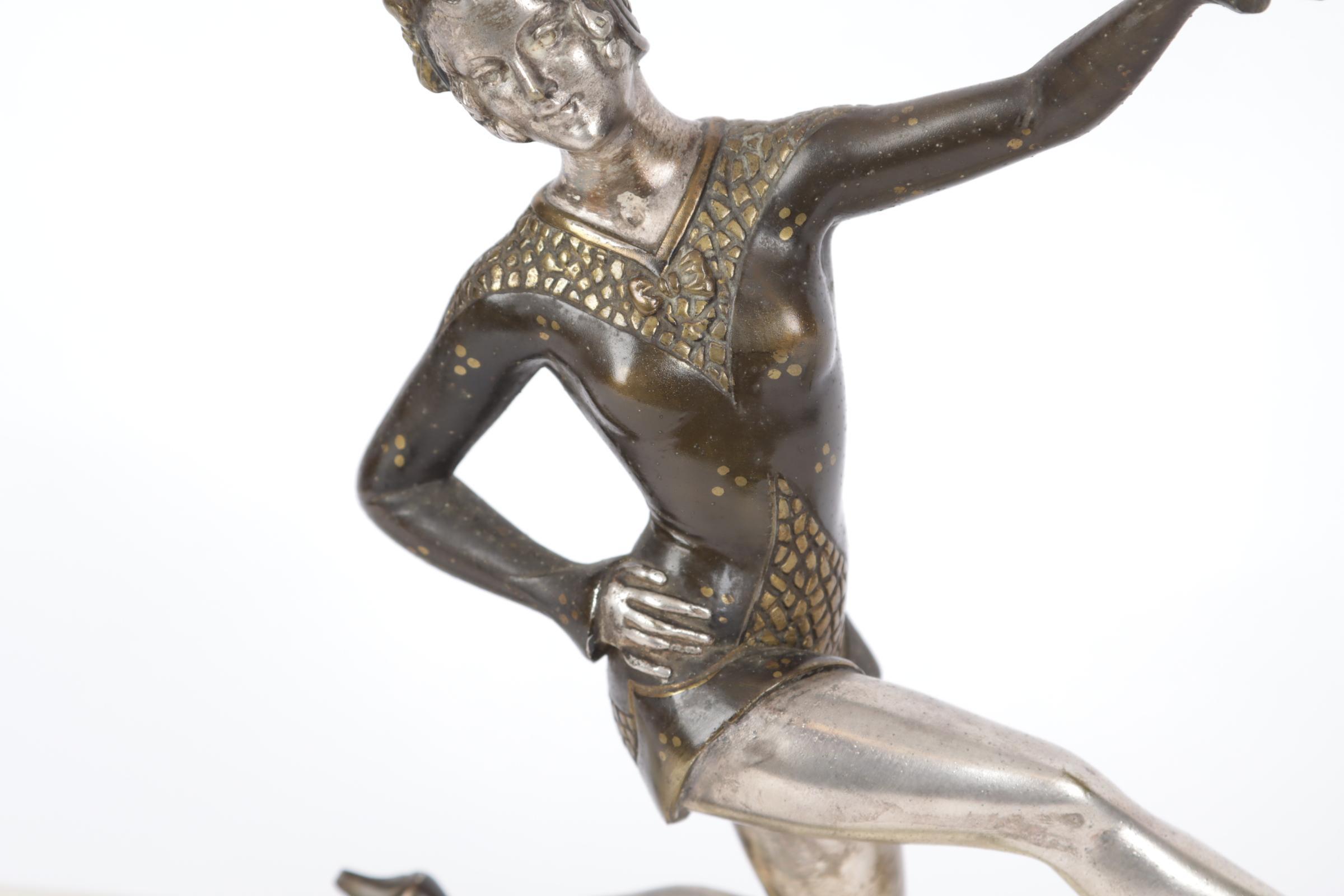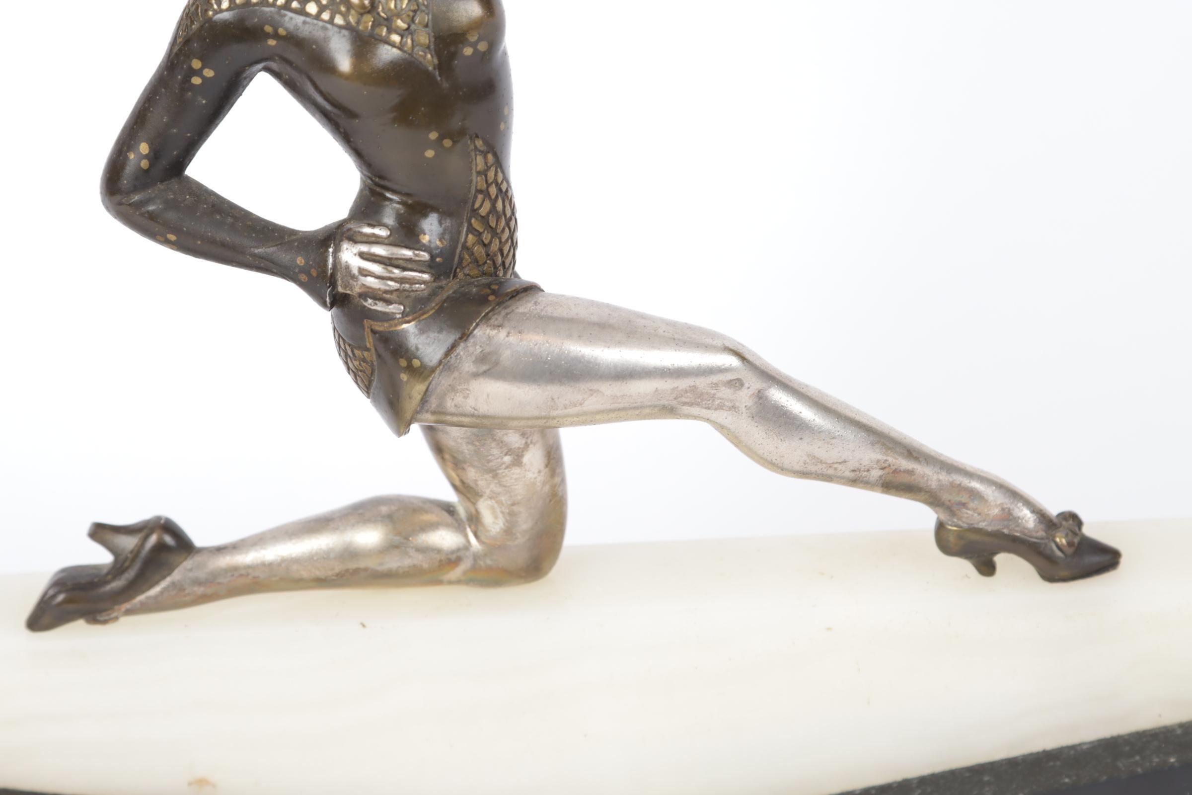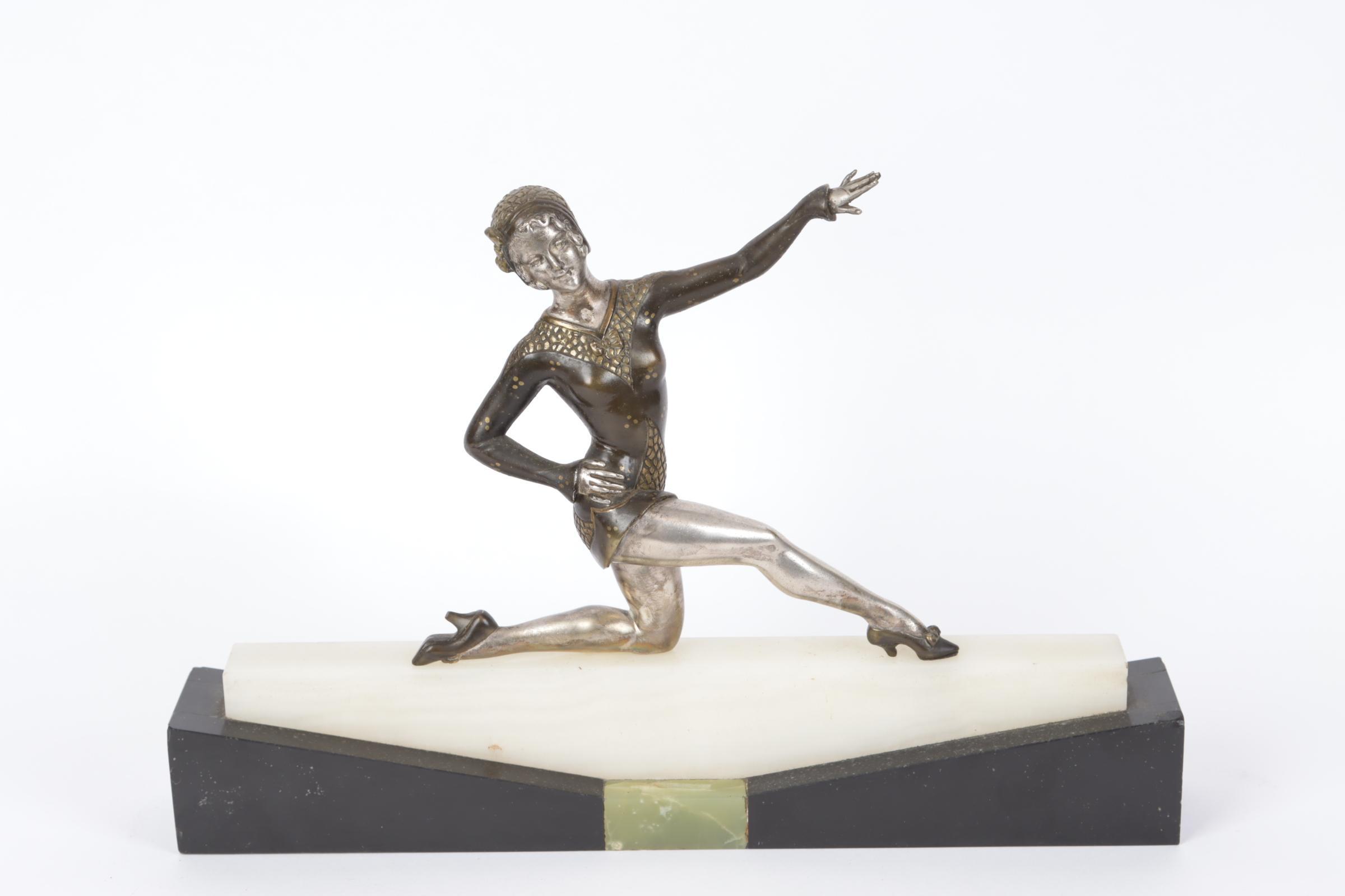 Art deco sculptuur met bronzen voorstelling van een danseres op marmer met onyx basement