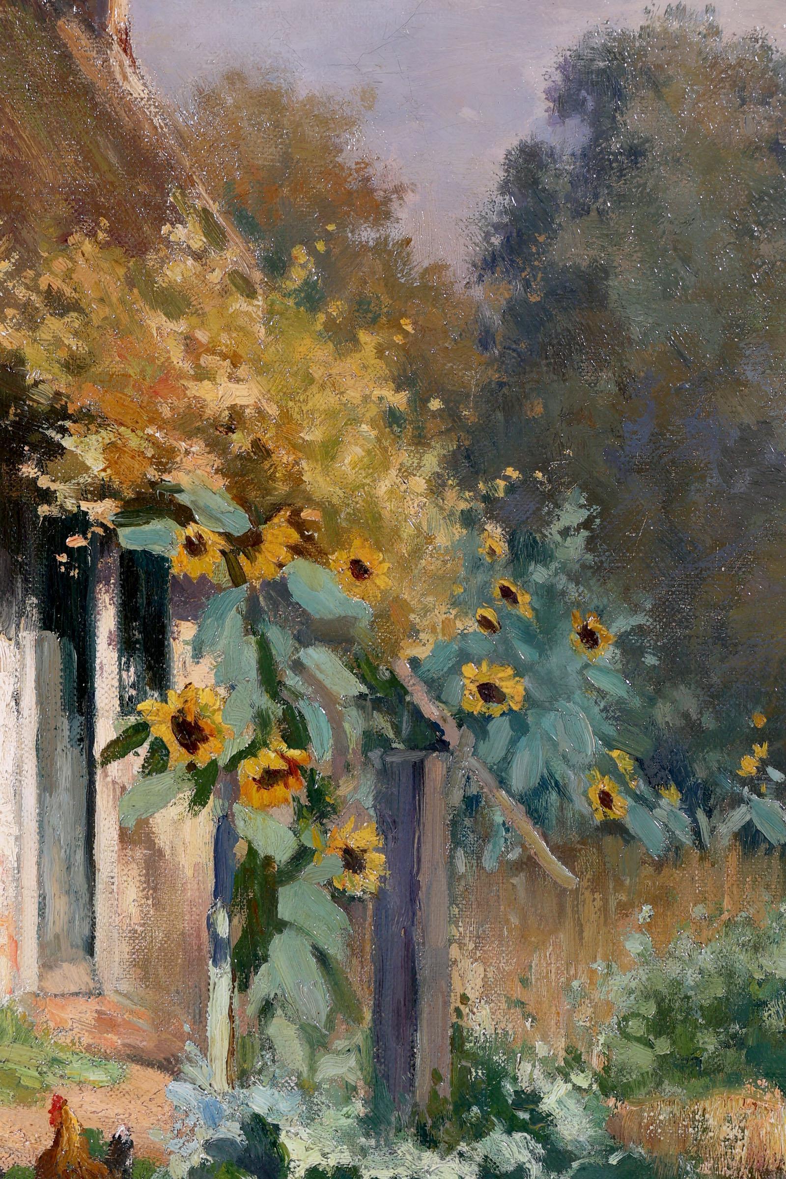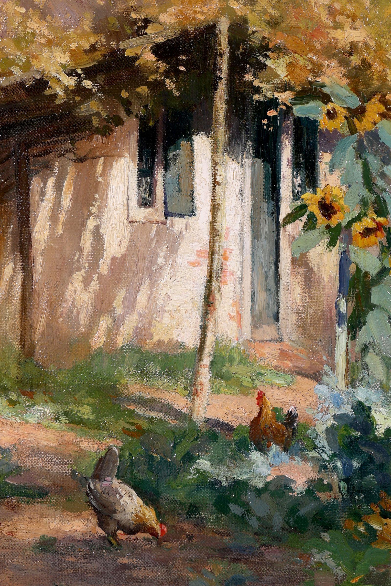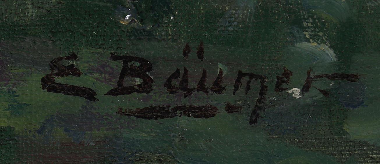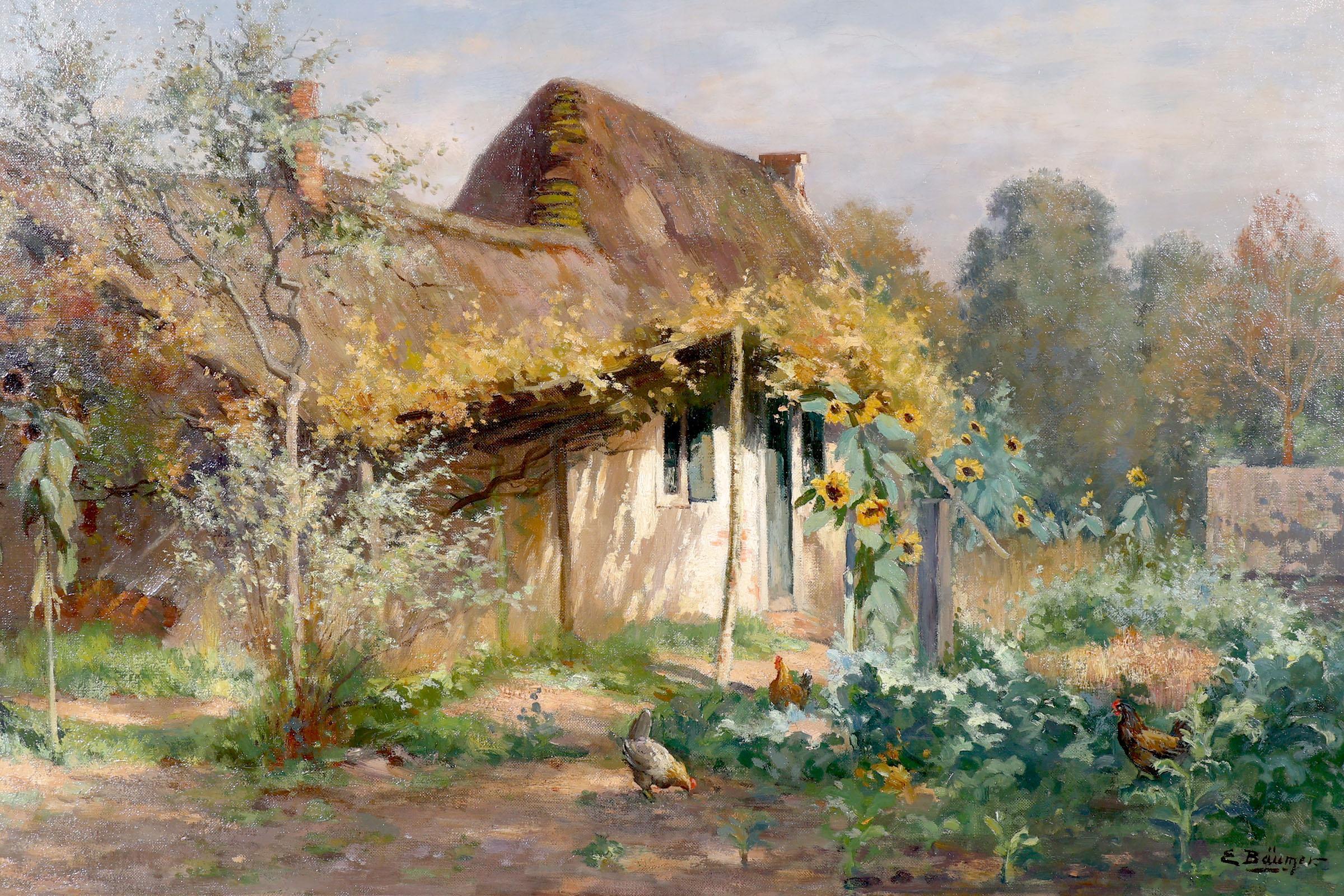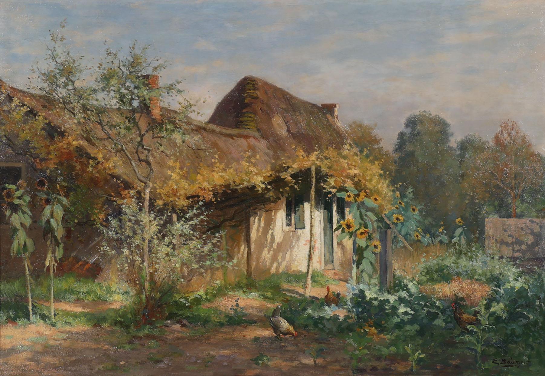 E. Bäulmer, Kippetjes op boerenerf, olieverf op doek, 100 x 70 cm.