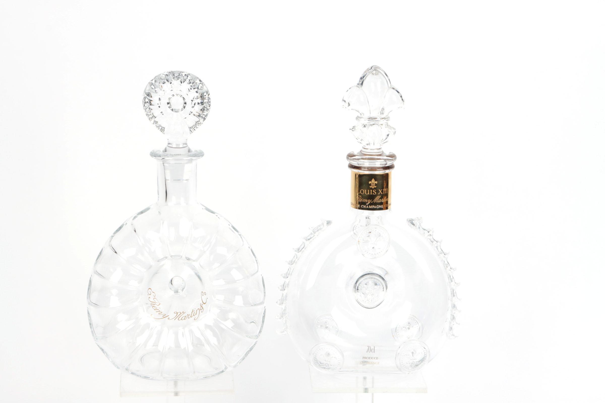 2 diverse limited edition Remy Martin flessen gemaakt door Baccarat, genummerd op onderzijde HG312 en AF5350, h.27 cm.