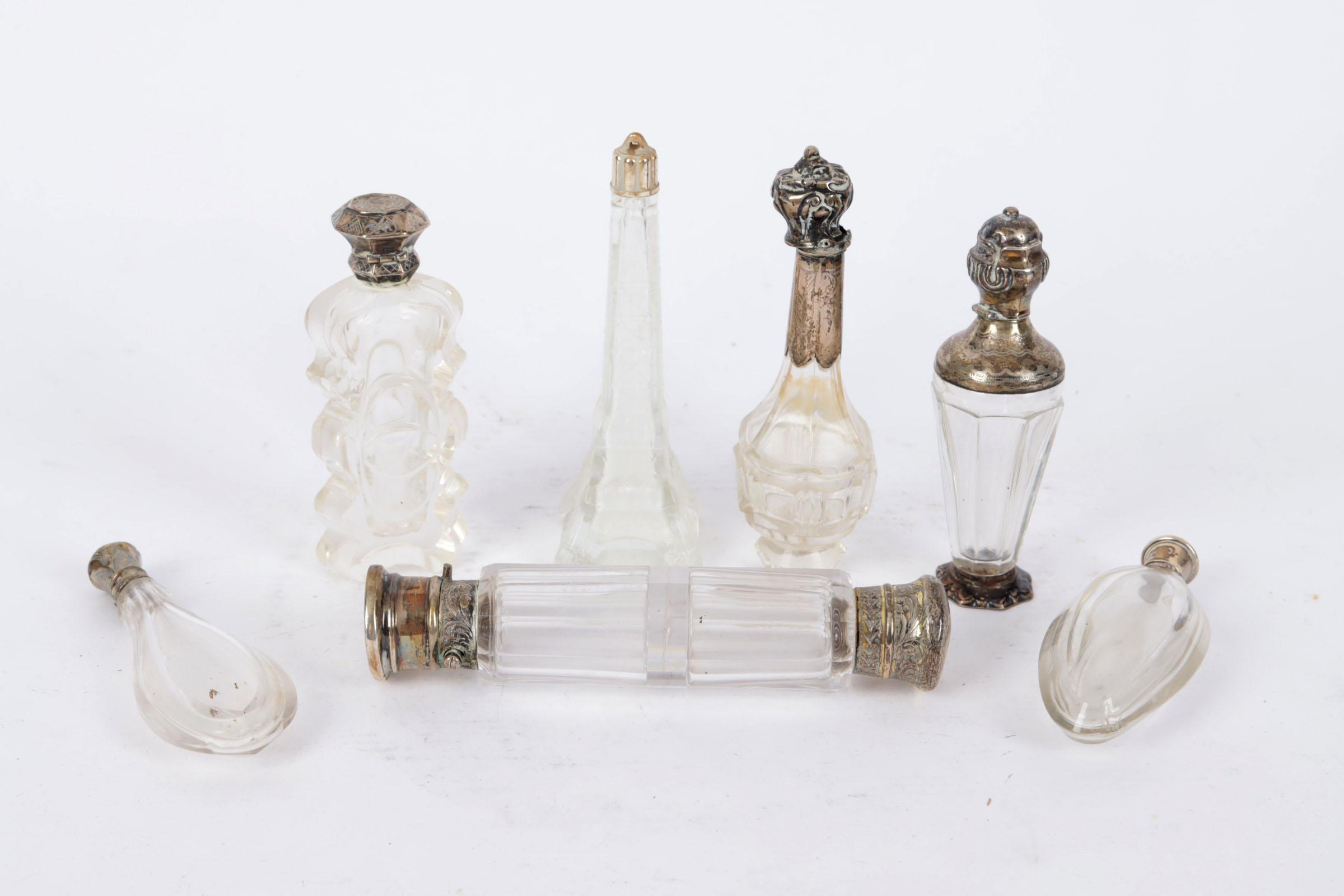 Koop van 7 antieke parfumflacons w.o. met zilveren dop
