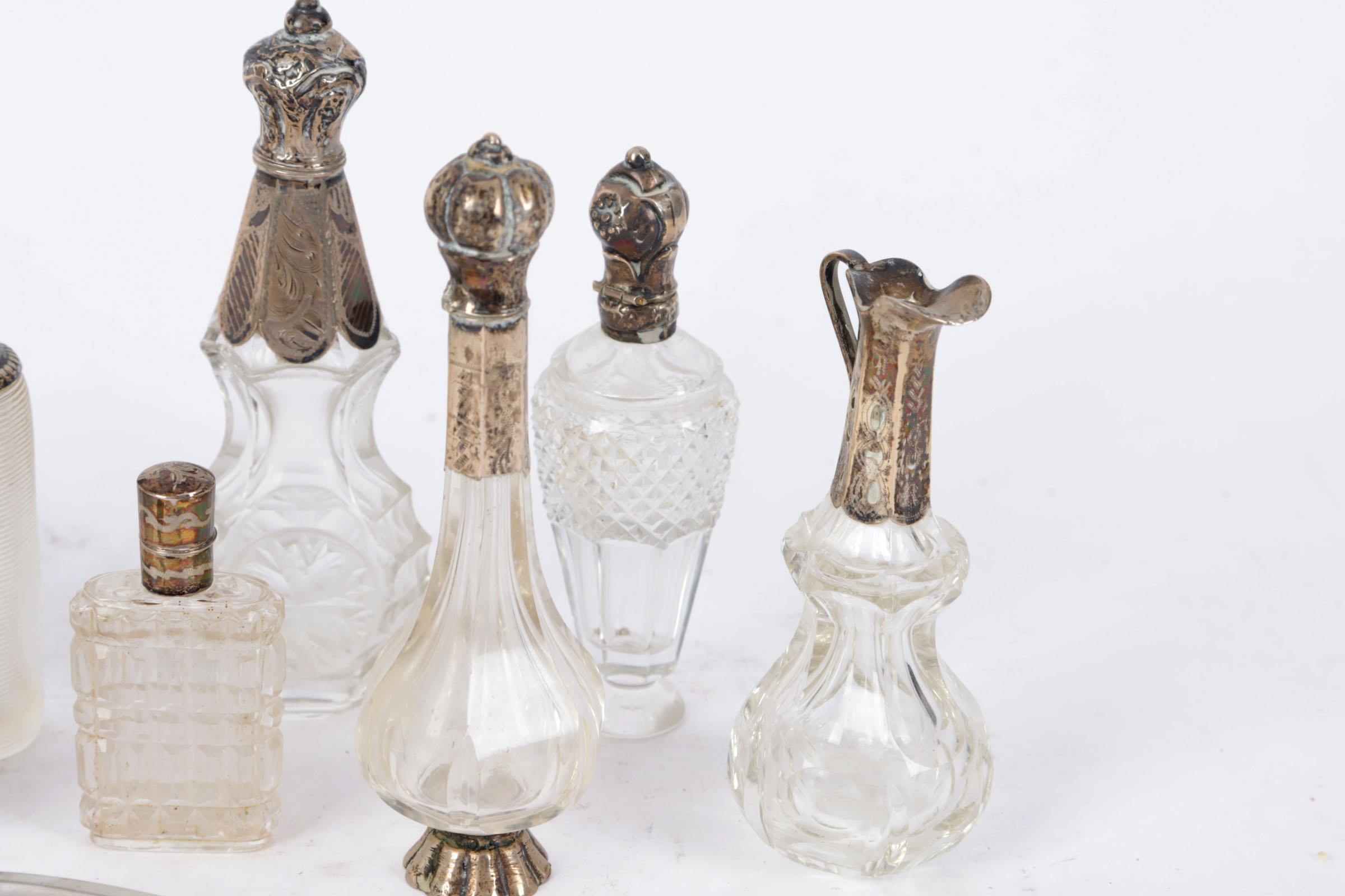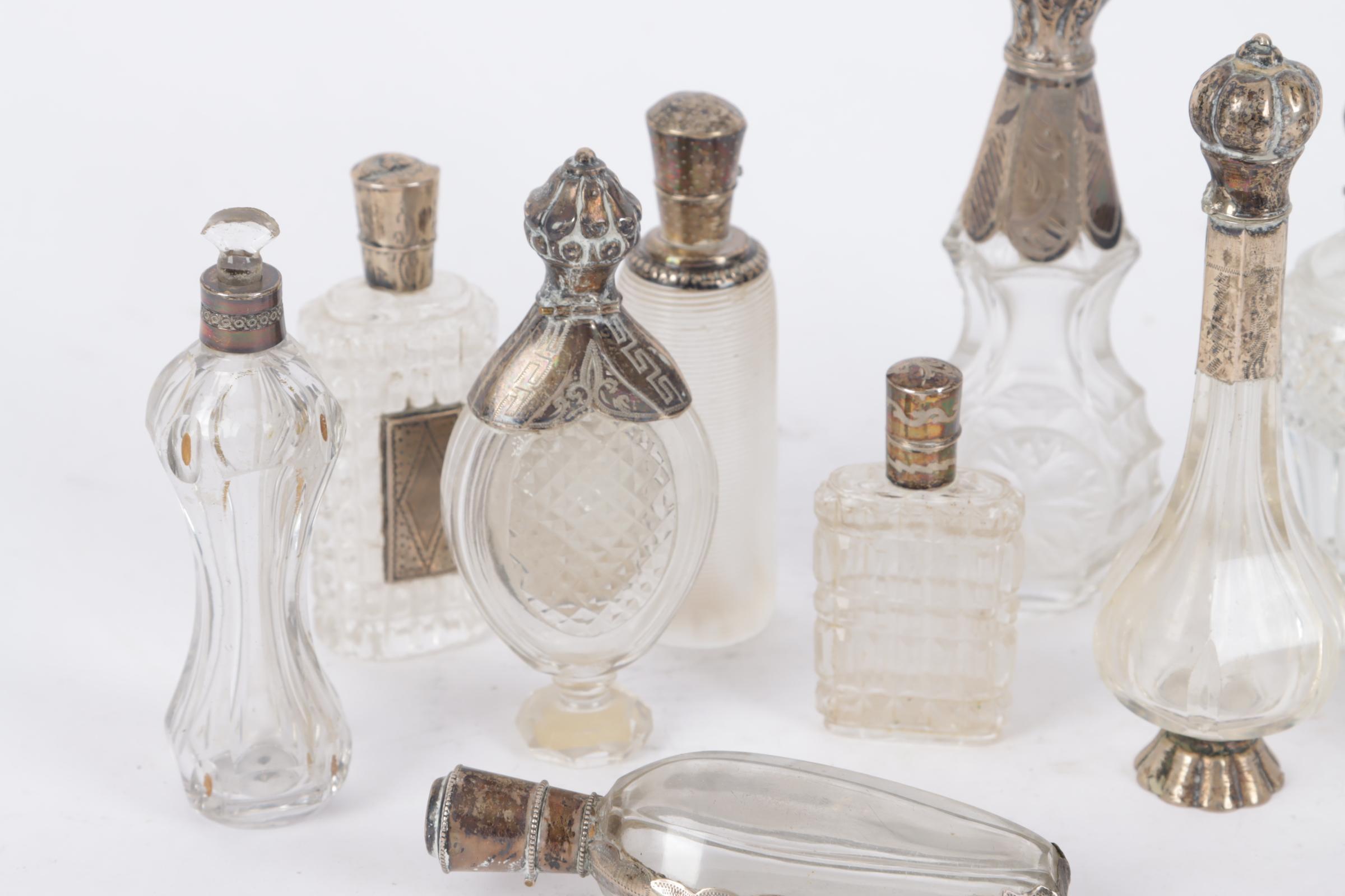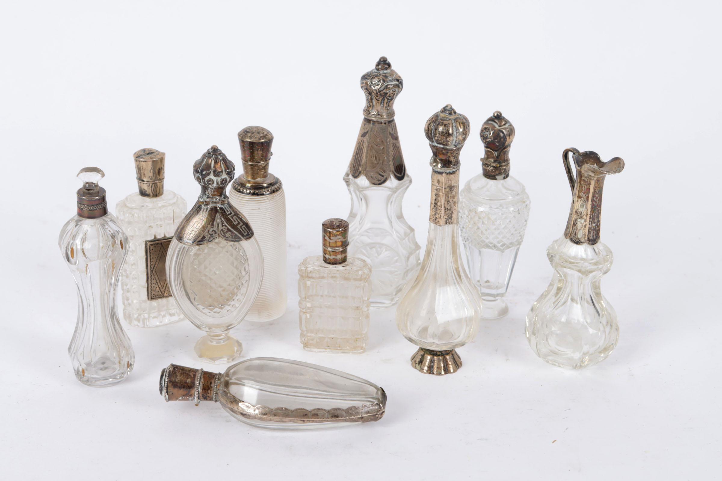 Koop van 10 antieke parfumflacons w.o. met zilveren dop