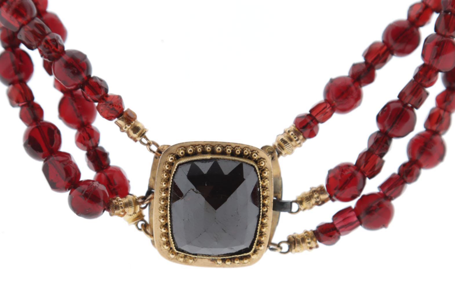 Granaten 3-strengs collier met gouden slot