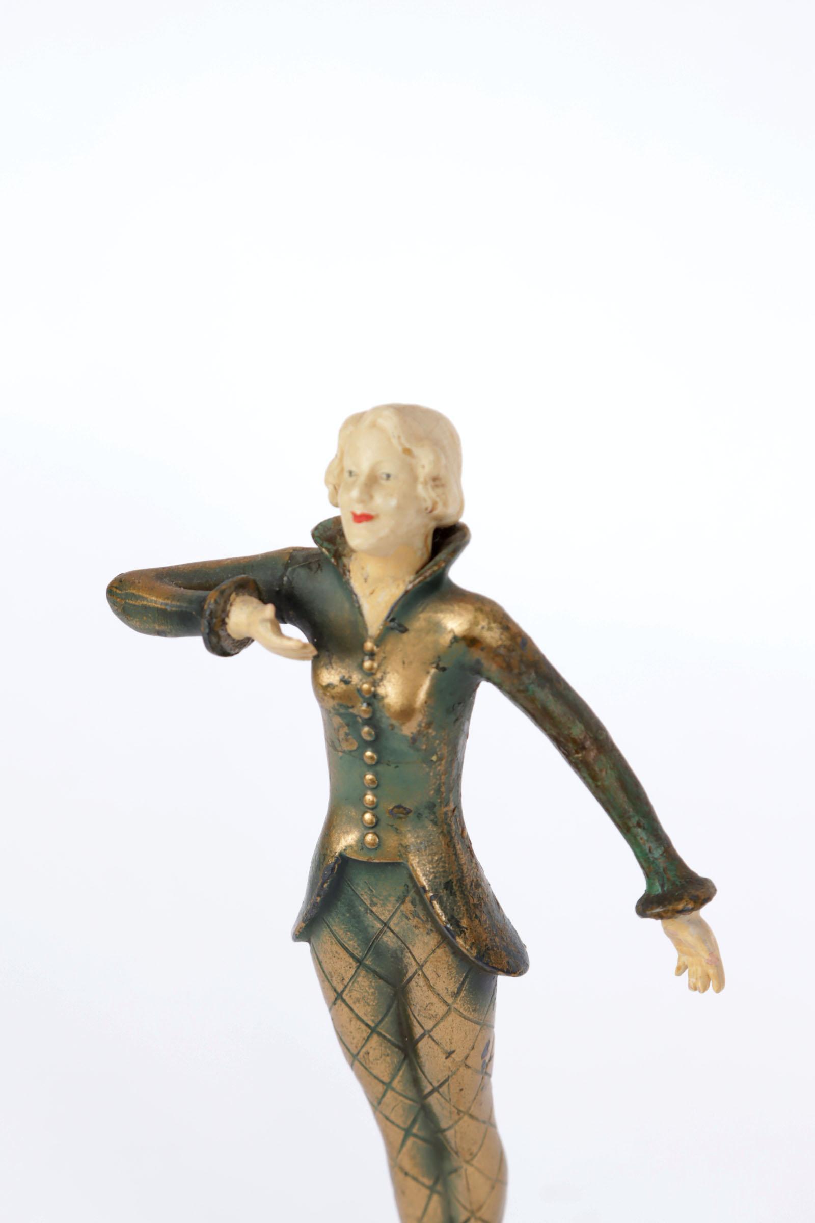 Art Deco beeldje van dame op albast voetje
