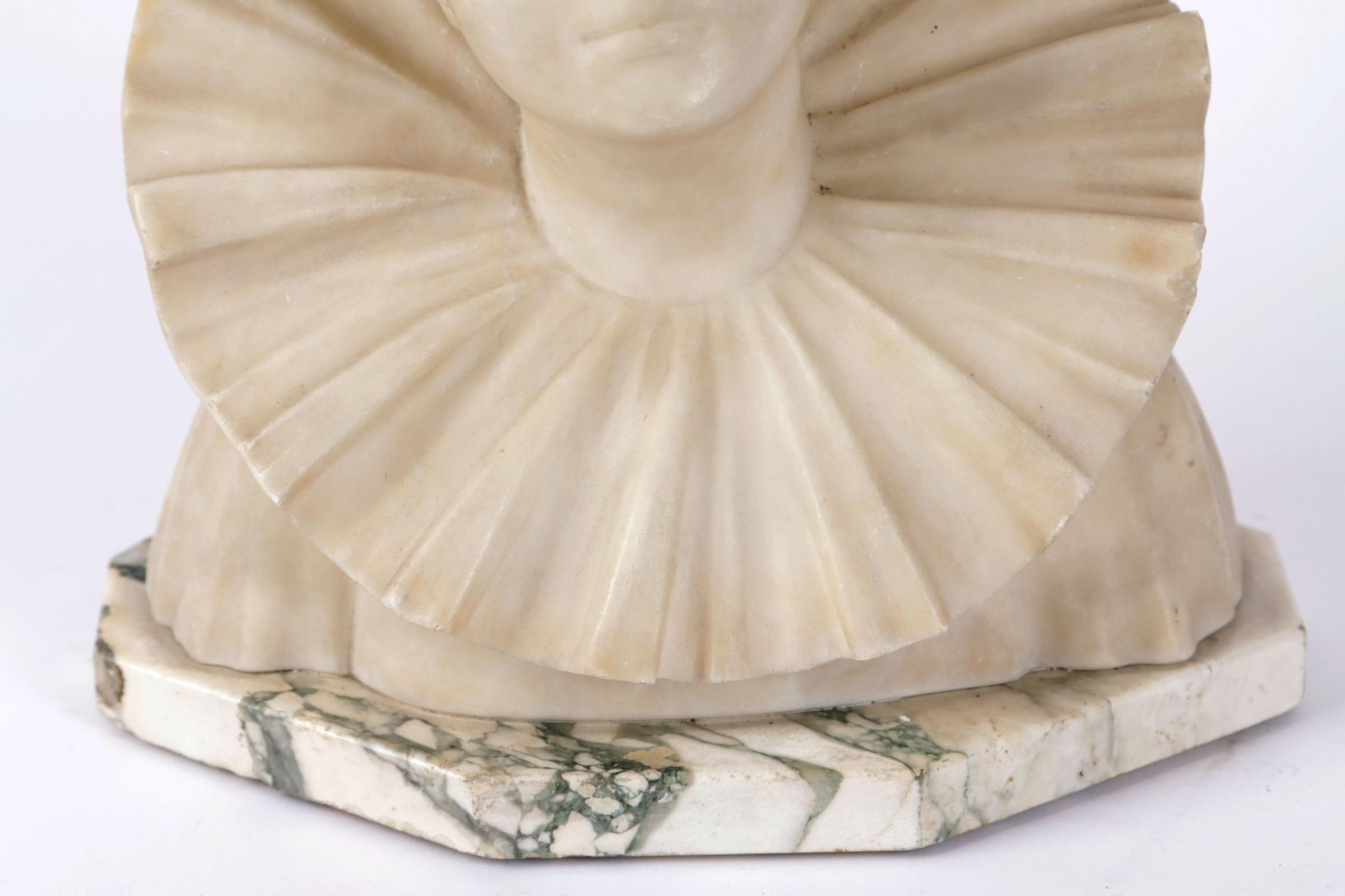 Gesigneerd A. Gentili albast Art Deco buste van een pierrot op marmer basement