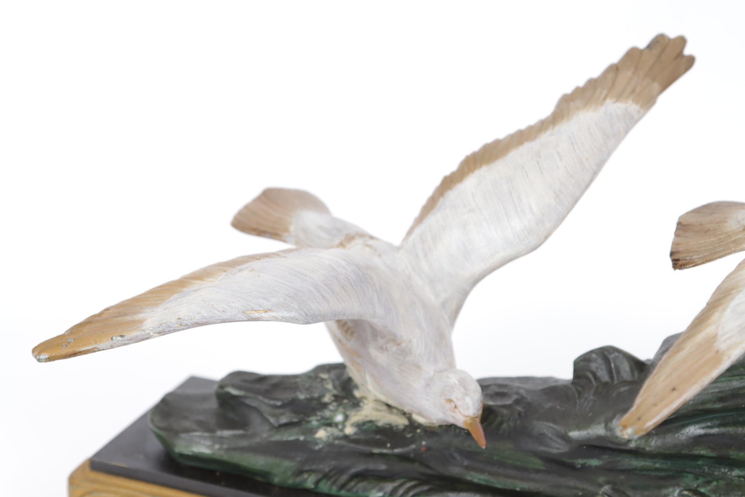 Art Deco sculptuur met voorstelling van twee meeuwen op marmer voetstuk, h.
