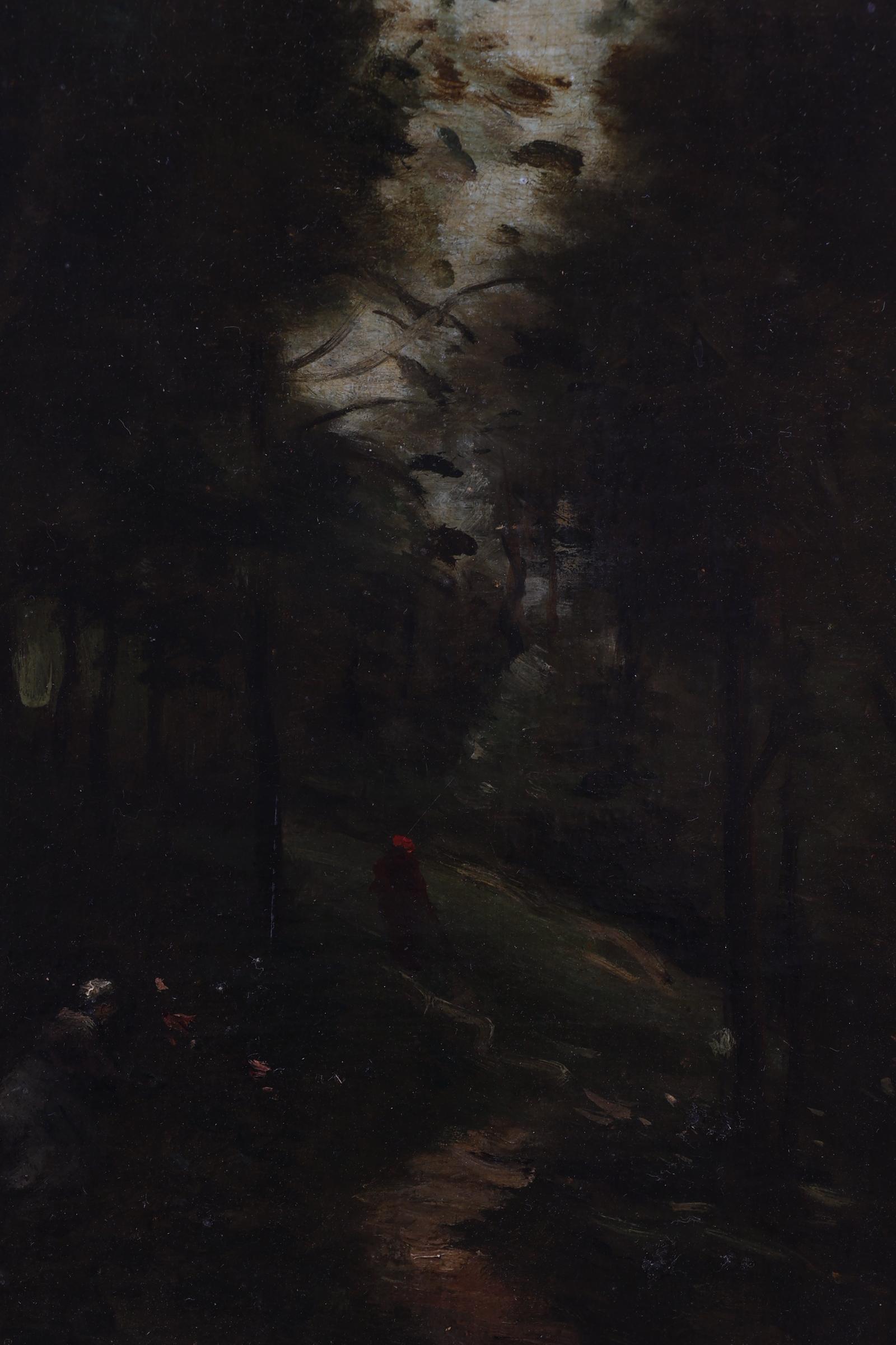 Omgeving Corot, Personen in boslandschap, olieverf op doek, 33,5 x 25 cm.