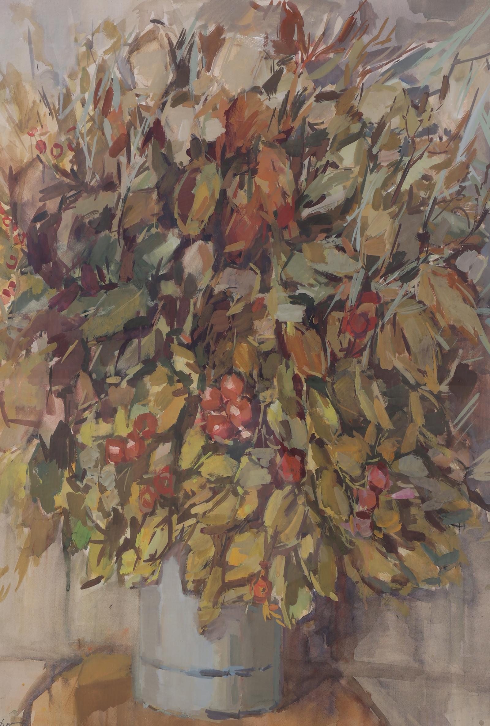 Wil van Dinther (1917-1997), bloemstilleven, aquarel en gouache op papier, 72 x 93 cm