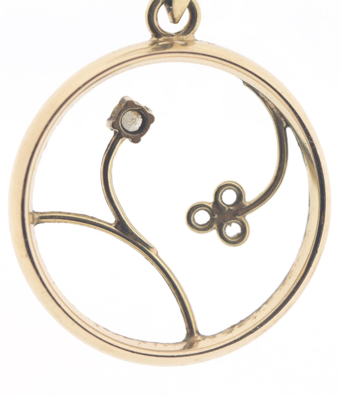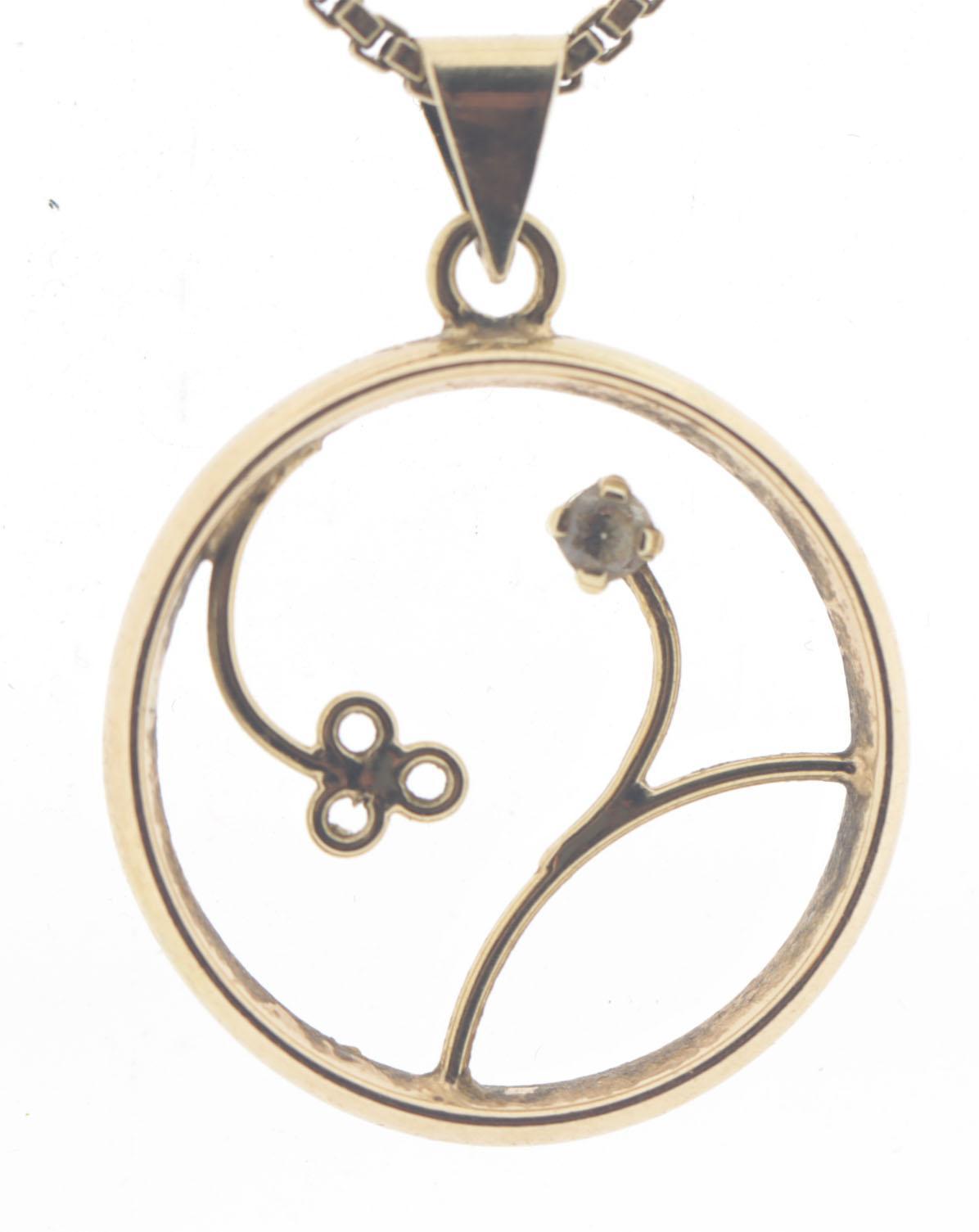 14 Kt. gouden collier met hanger vervaardigd uit oude trouwring, 14,7 gram